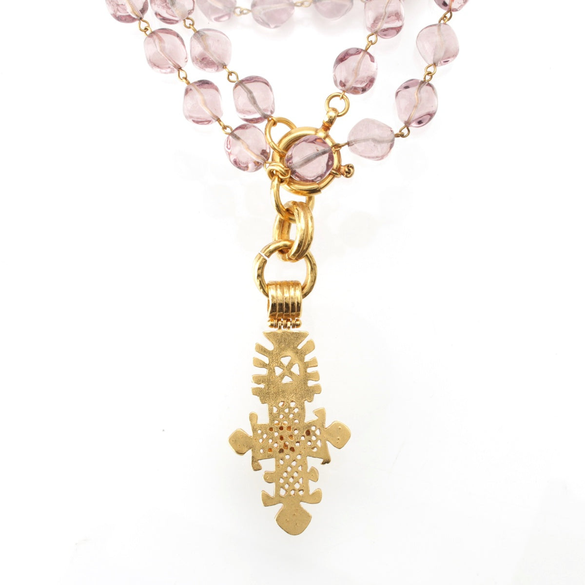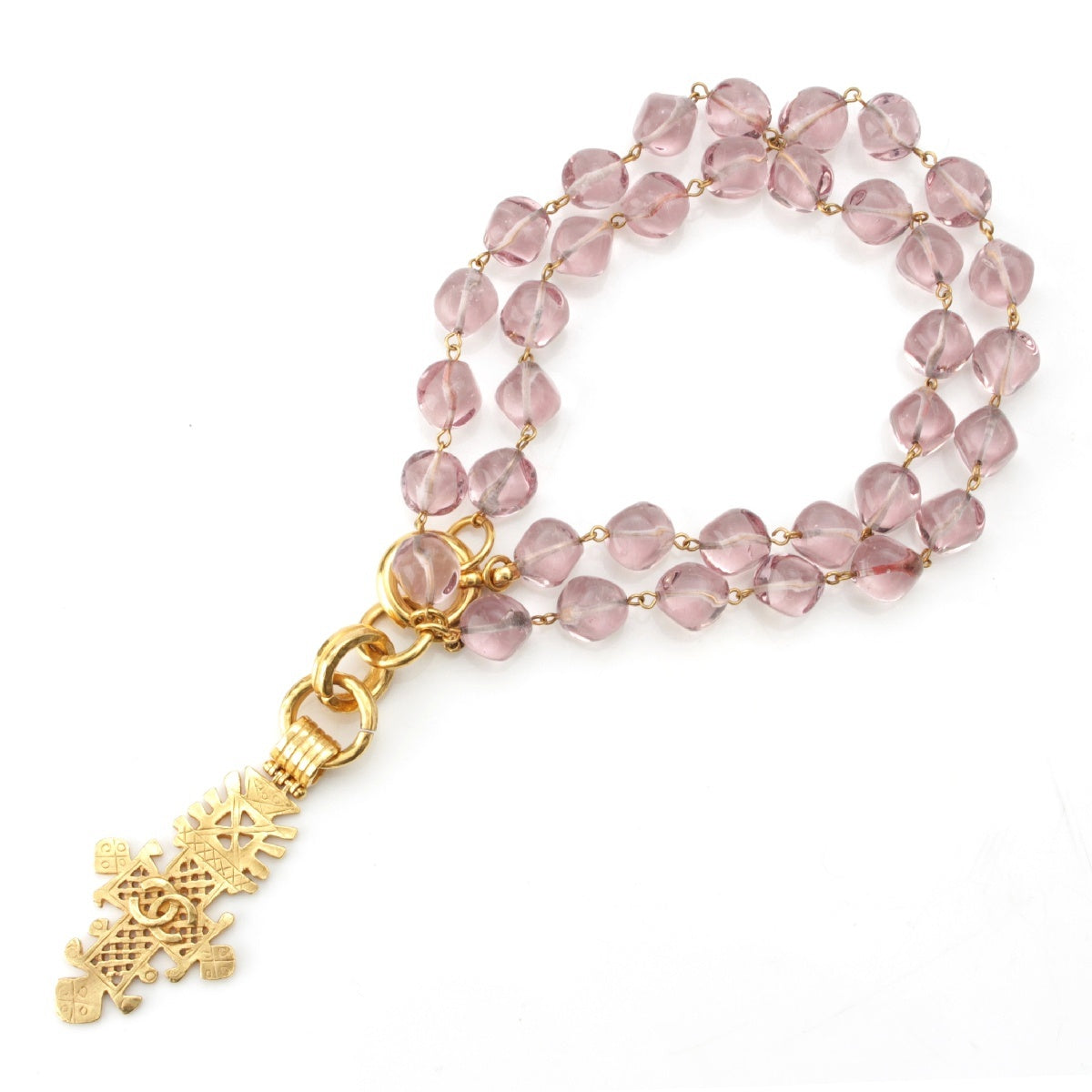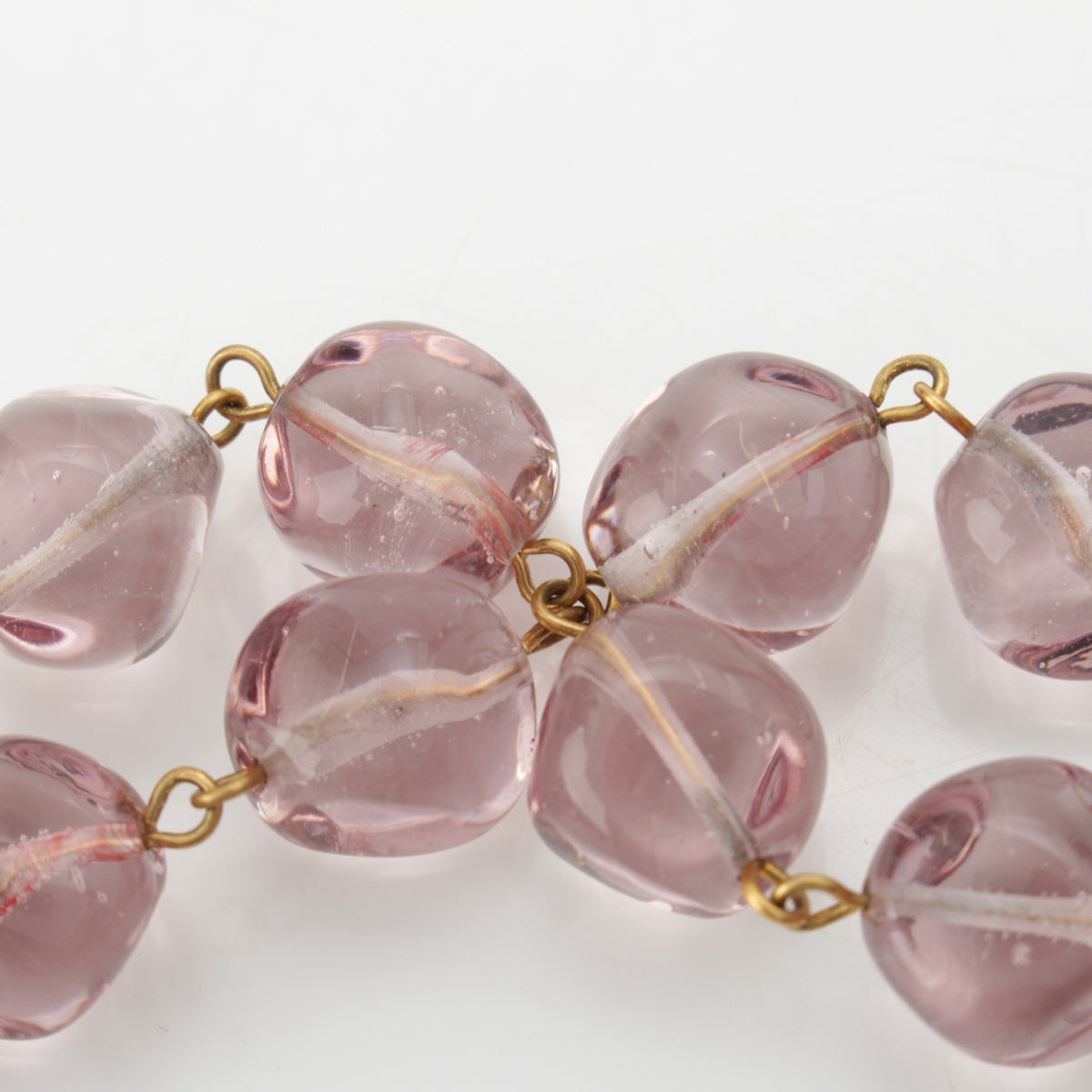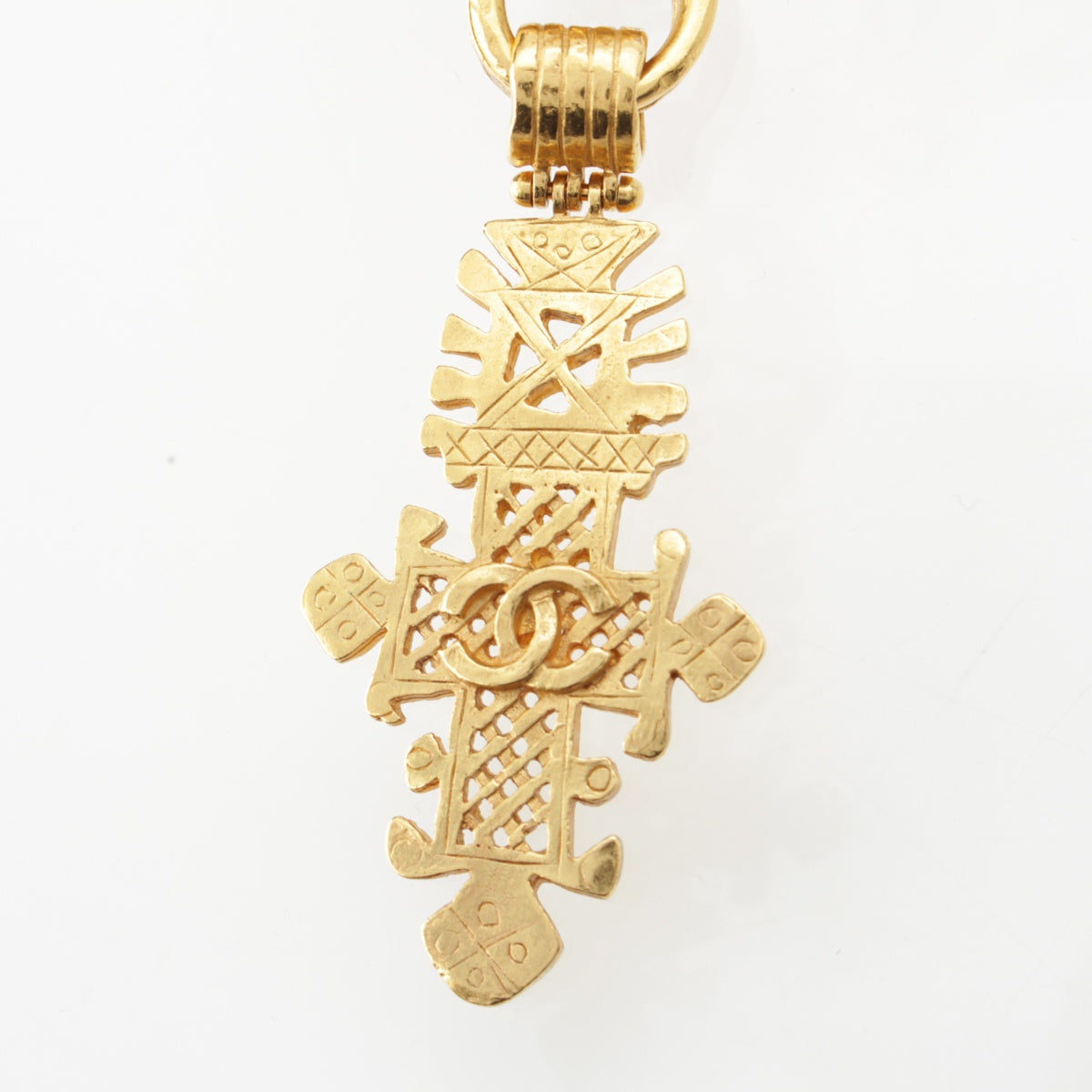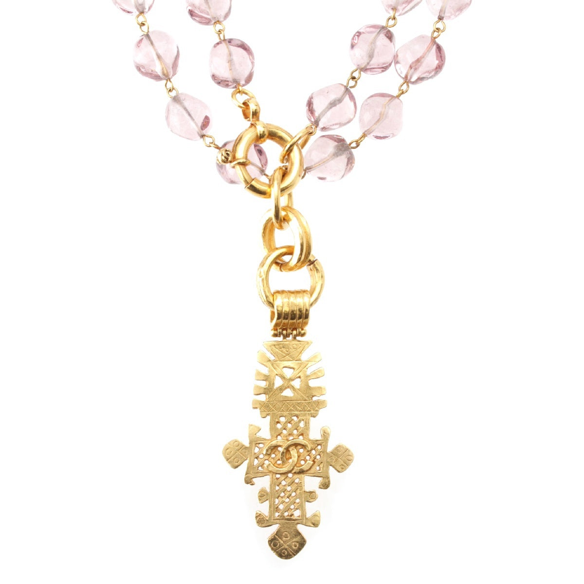 CHANEL 94P COCO Mark Cross Top Color Stone Color Ball Necklace Accessory Jewelry Gold purple