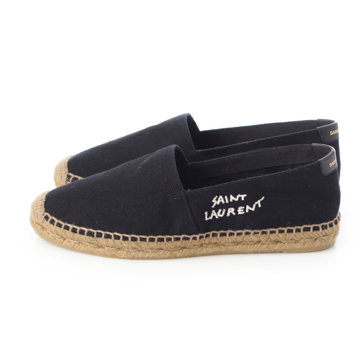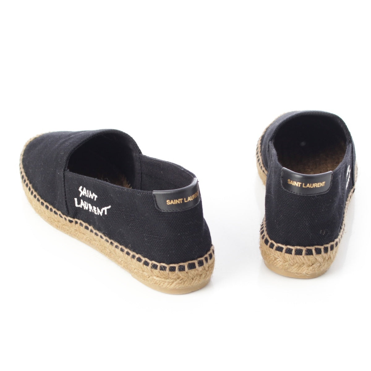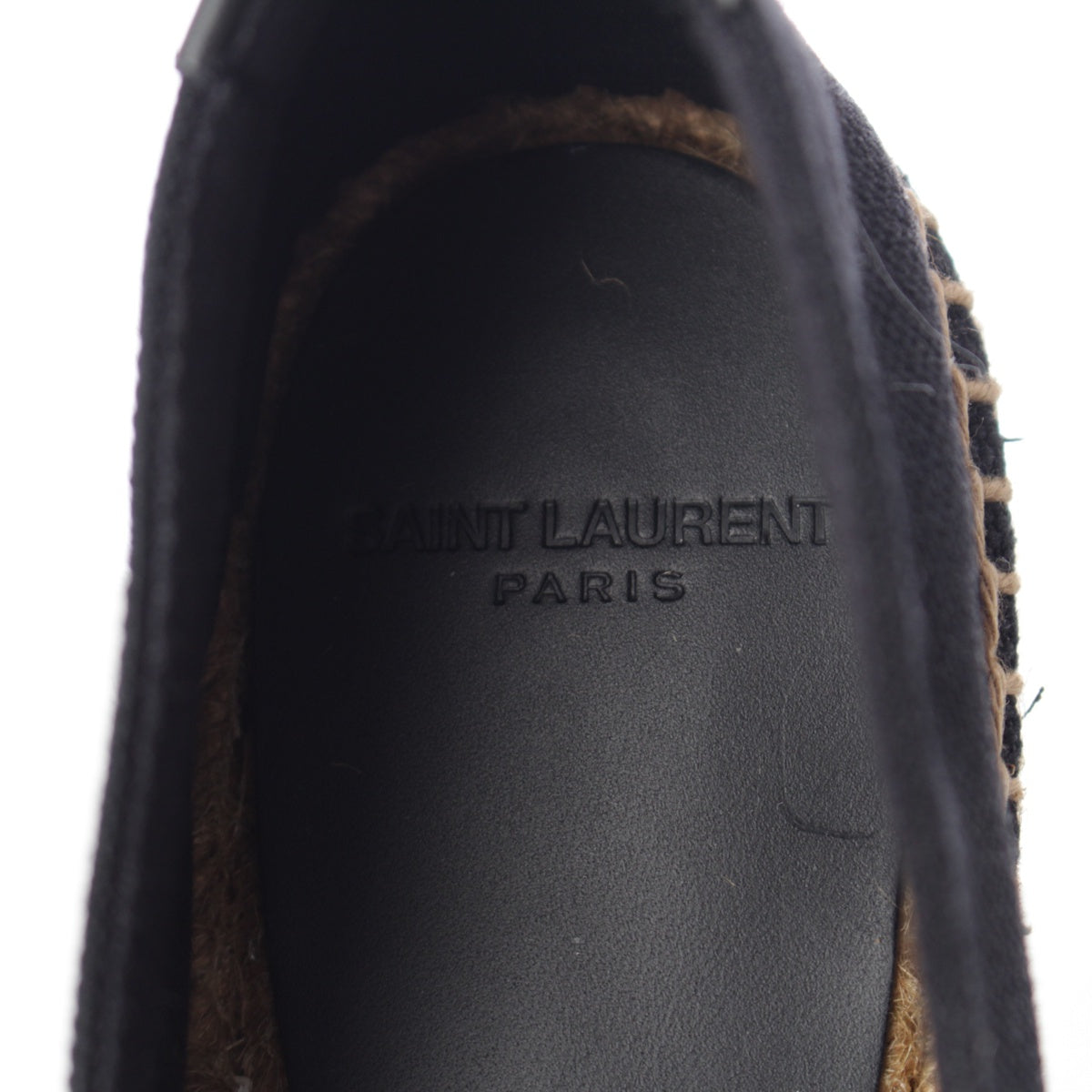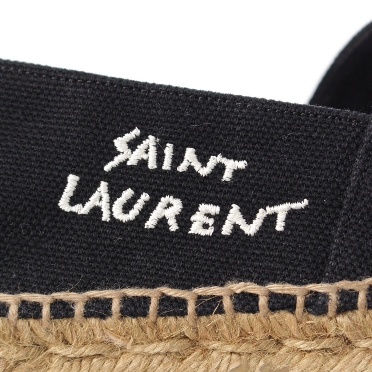 SAINT LAURENT Cotton linen Embroidered logo espadrilles Slip-on shoes black 37 1/2