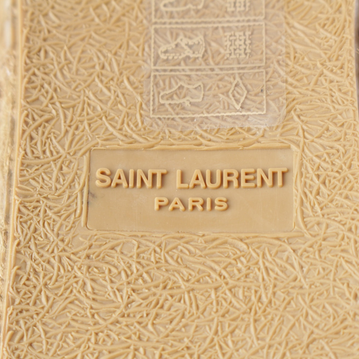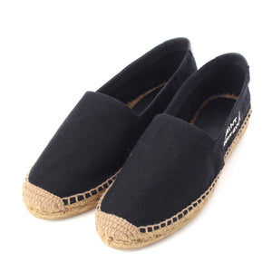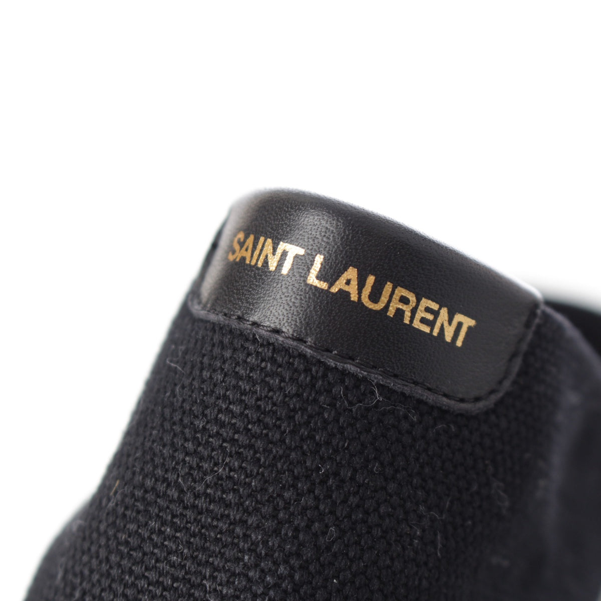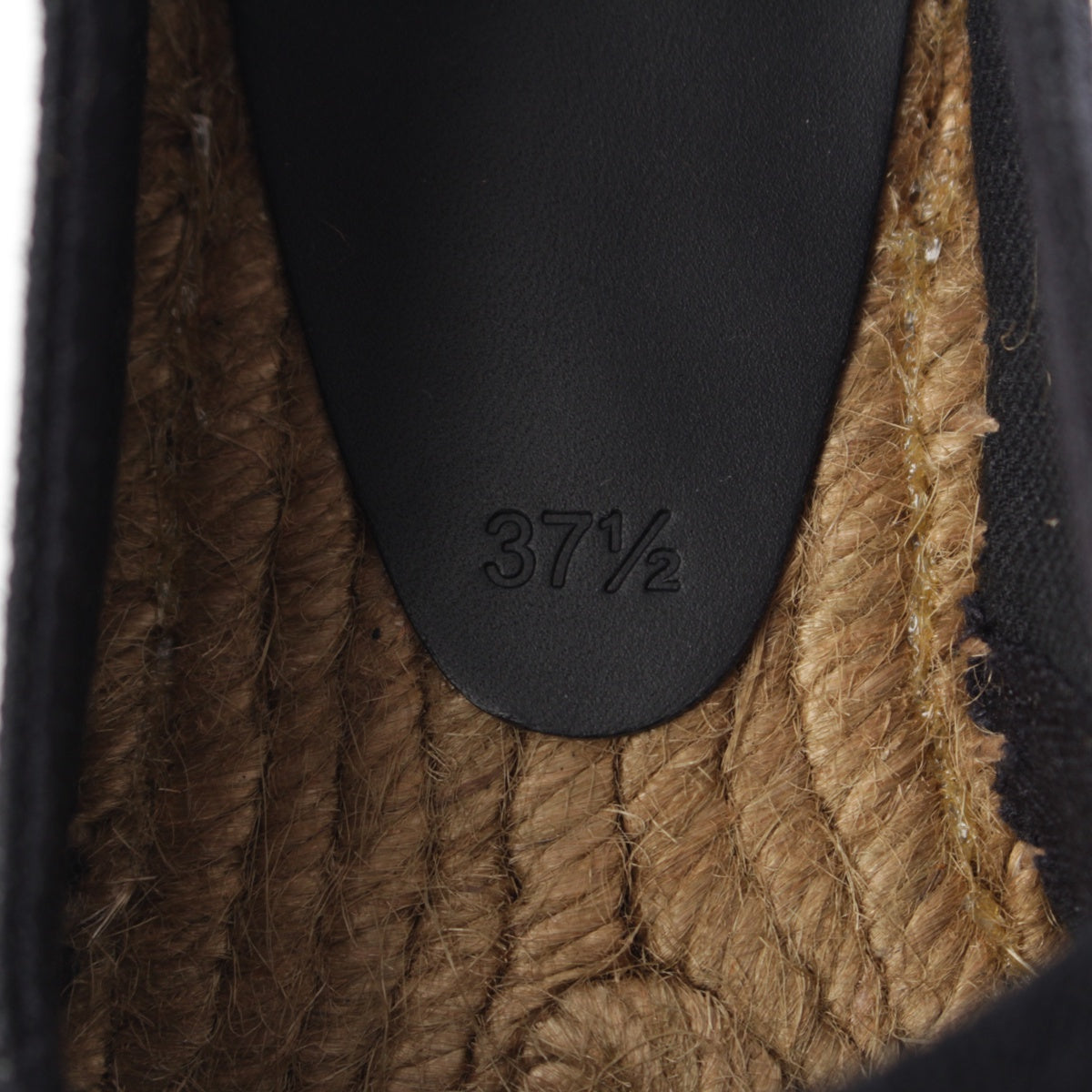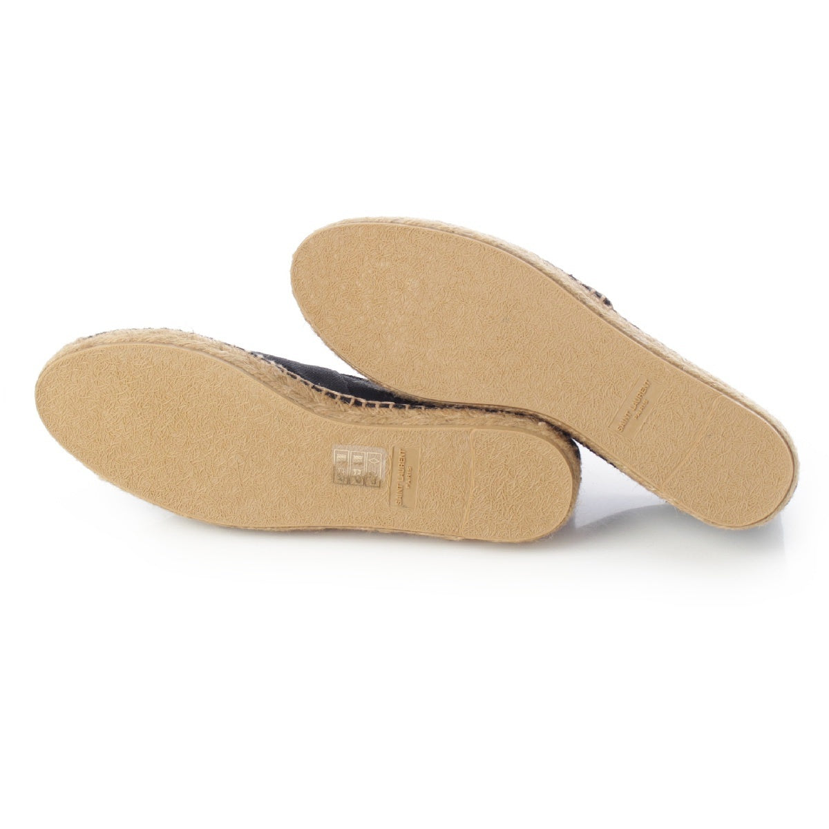SAINT LAURENT Cotton linen Embroidered logo espadrilles Slip-on shoes black 37 1/2