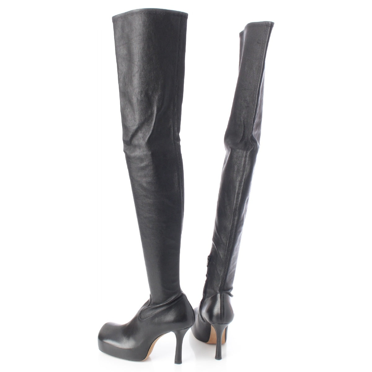 BOTTEGAVENETA leather Square toe knee-high long heels boots black 38