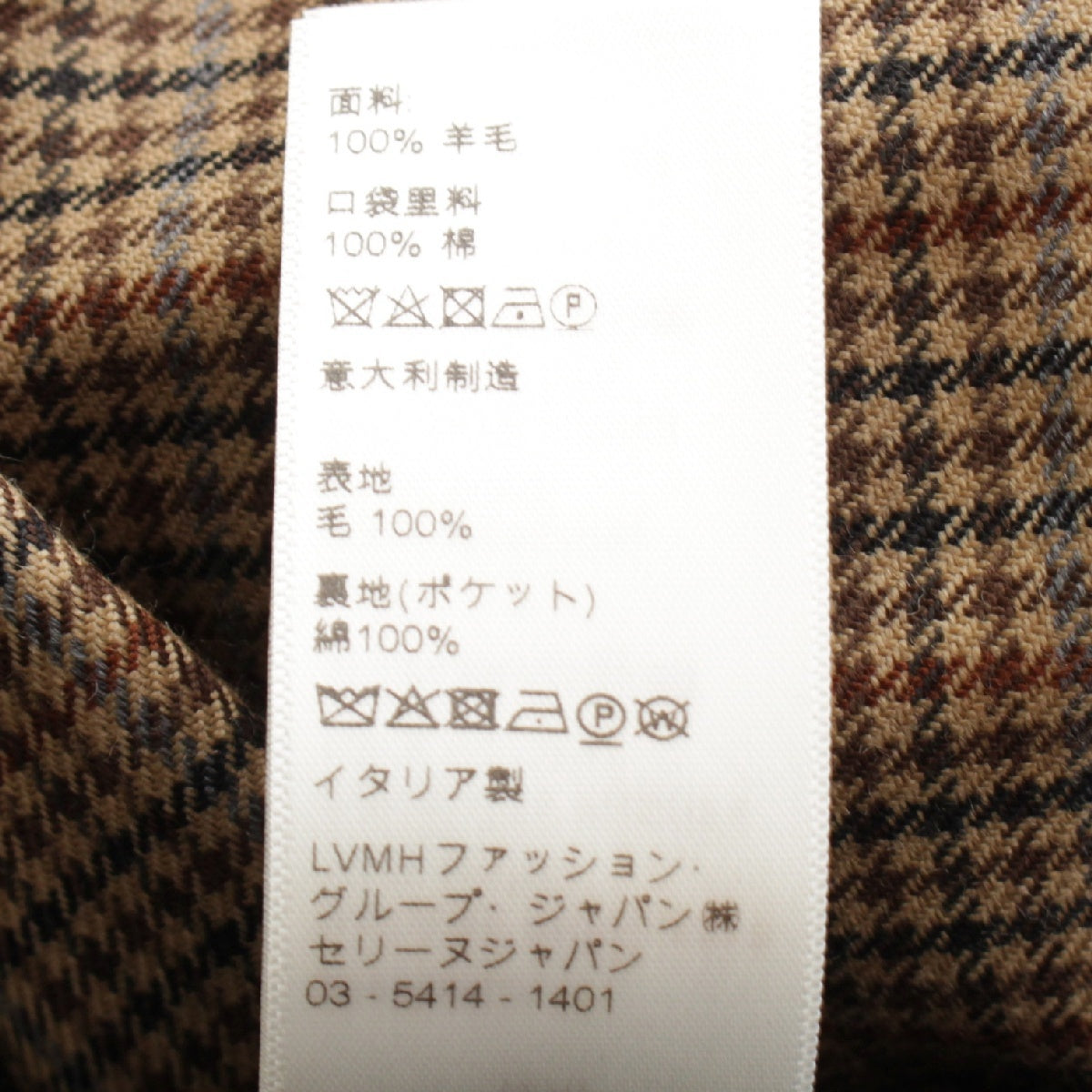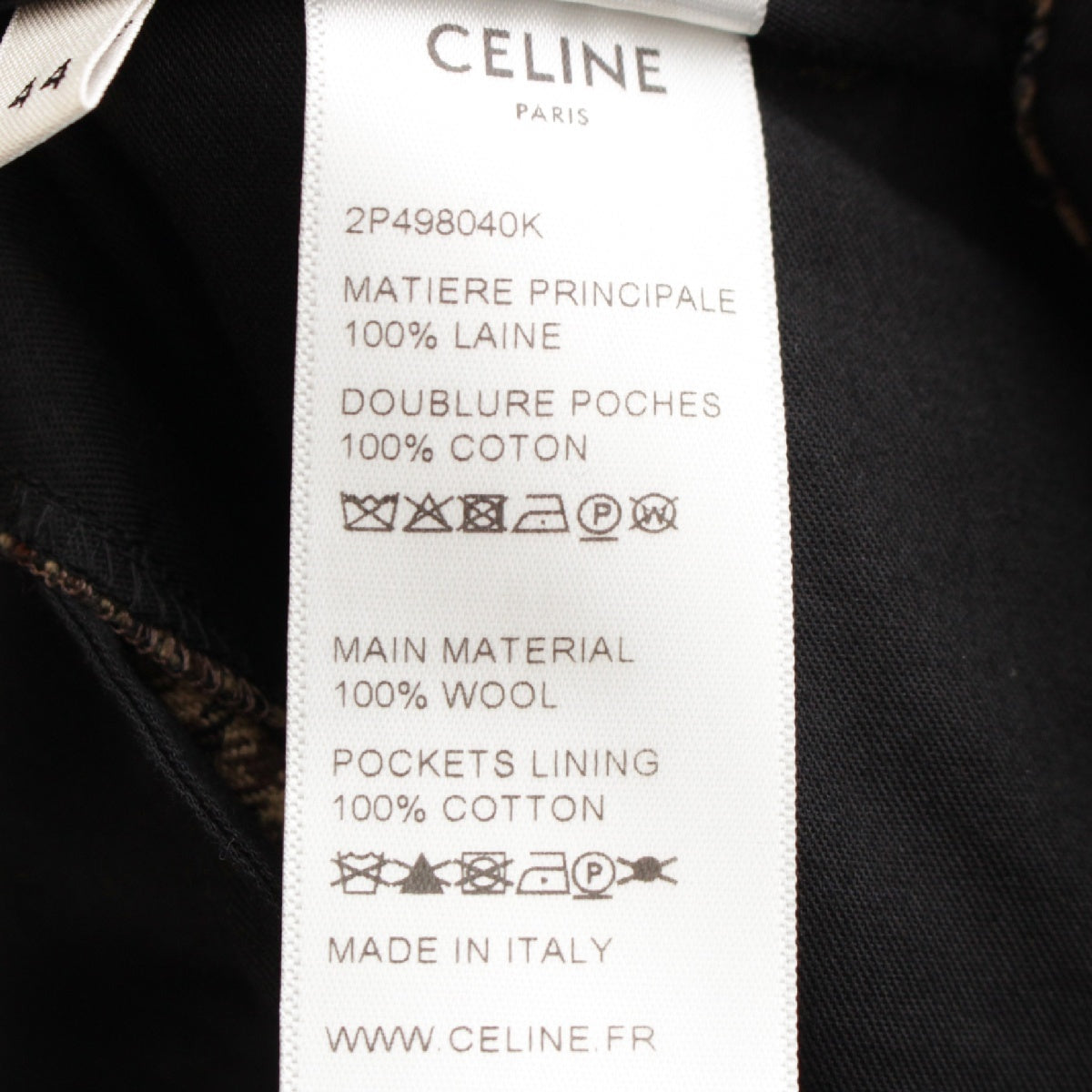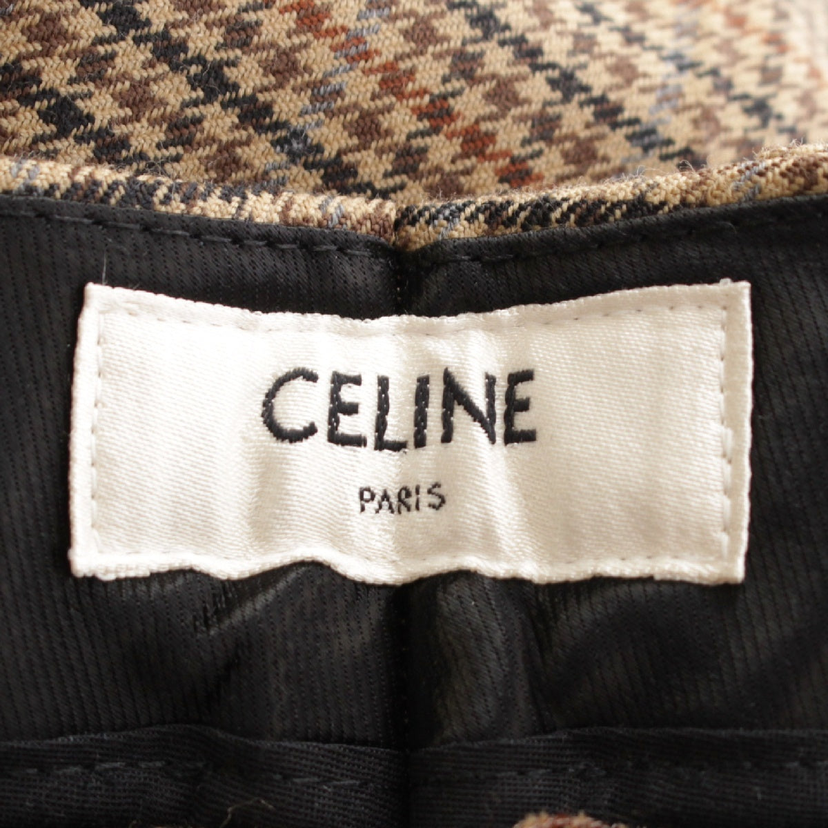 CELINE wool Skater Bandeau Houndstooth Pants Bottoms Slacks 2P498040K Brown 44