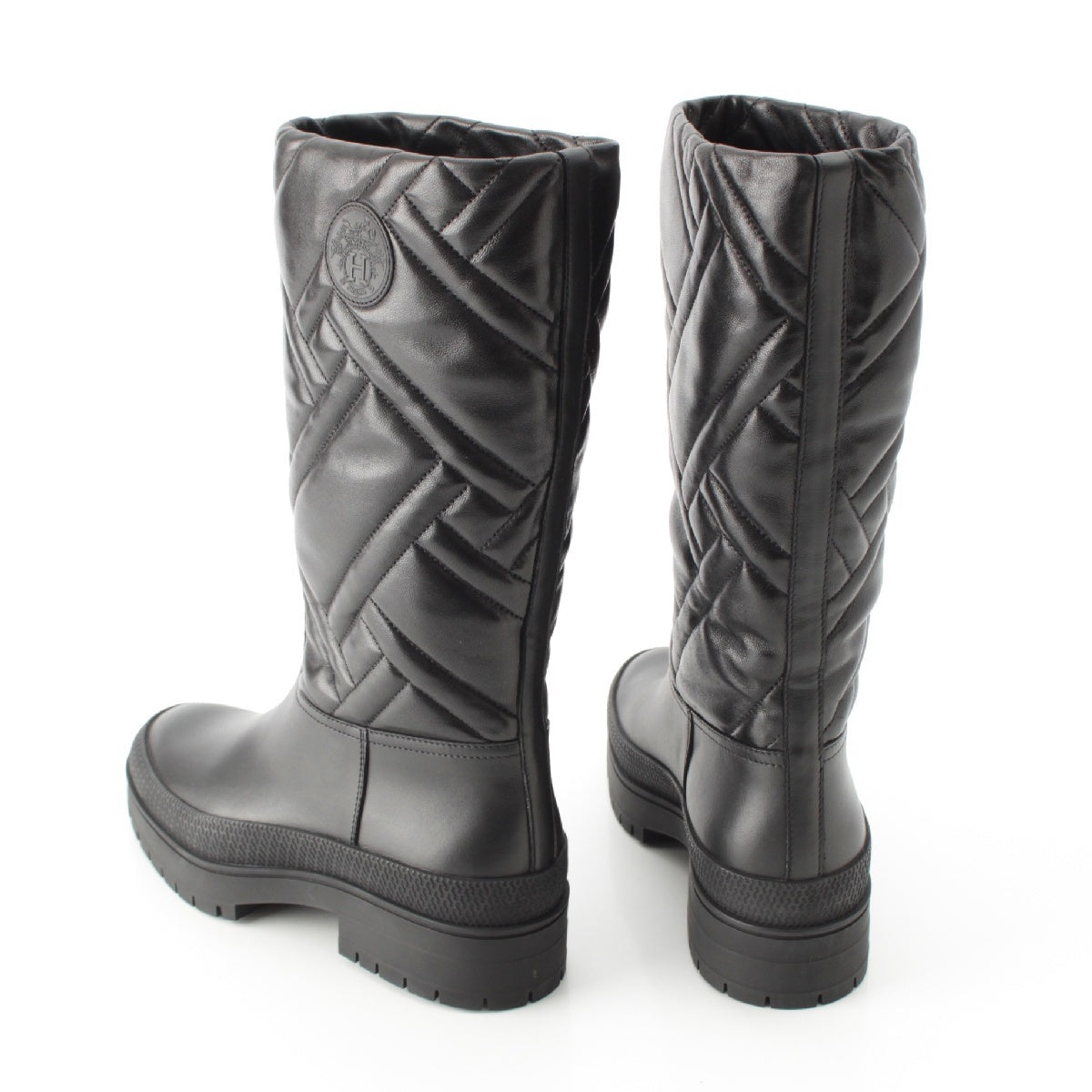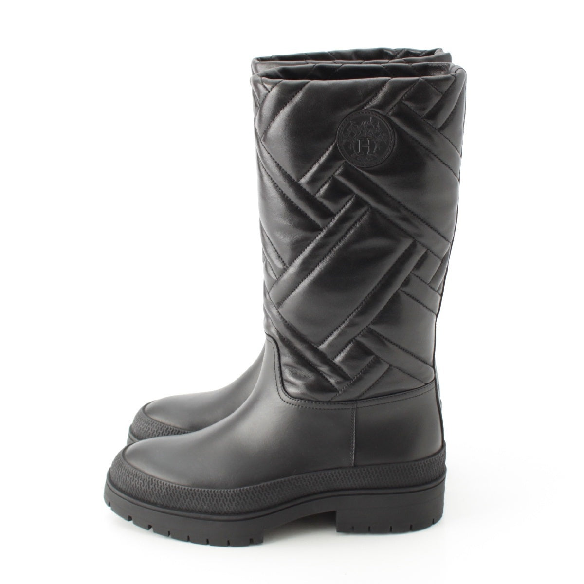 HERMES leather Fuji Exlibris Long boots shoes black 35