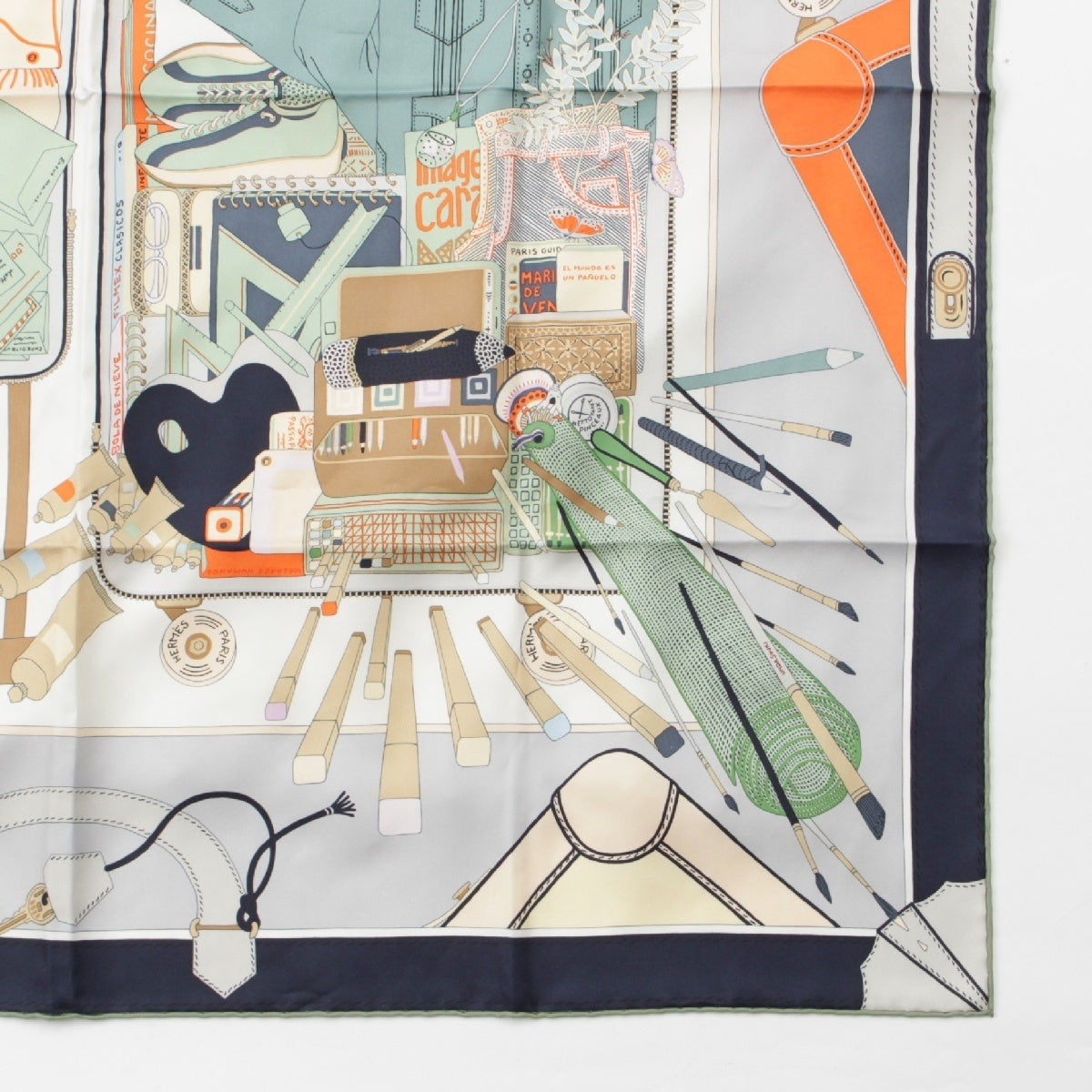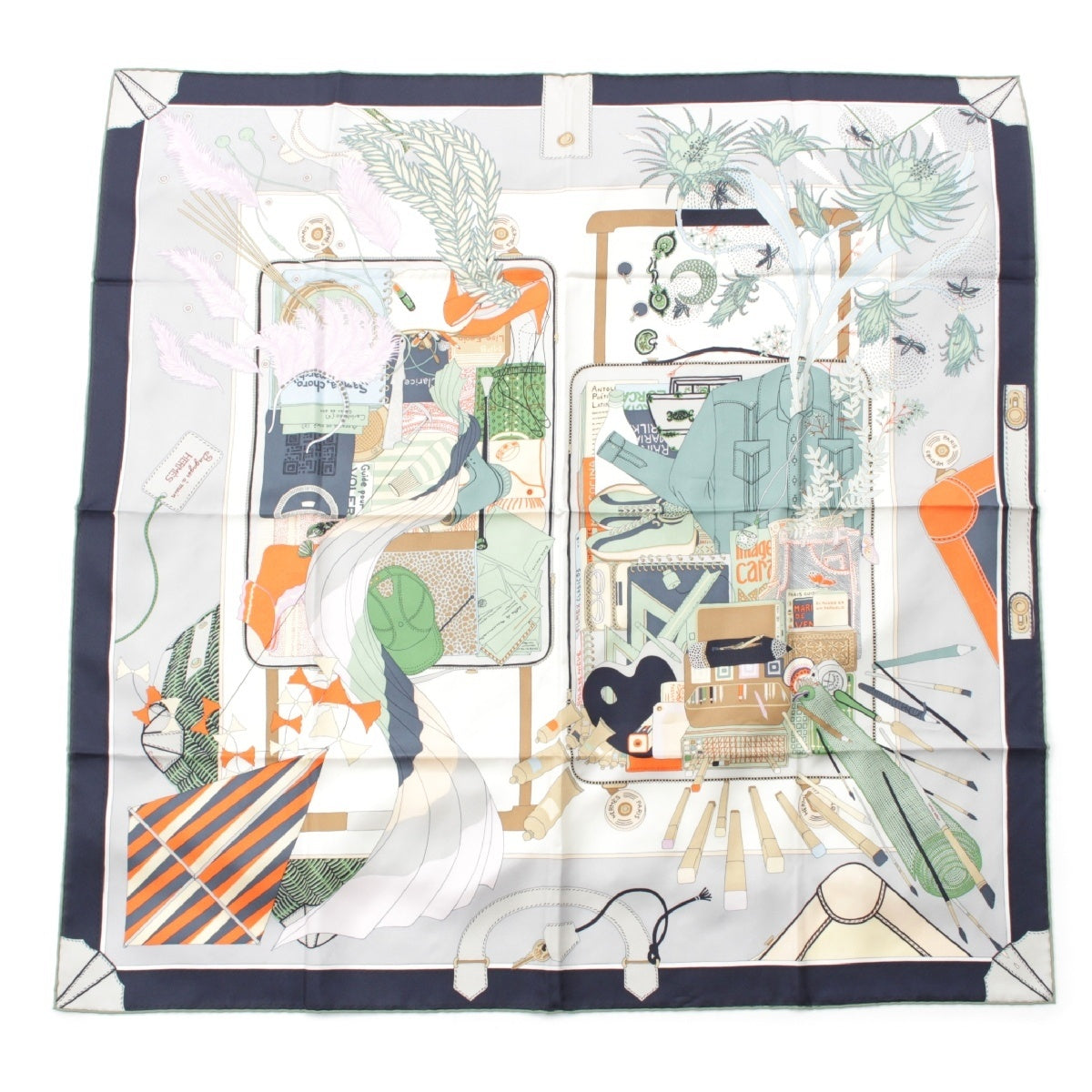 HERMES silk Carré 90 BAGADE A MAIN scarf multicolor