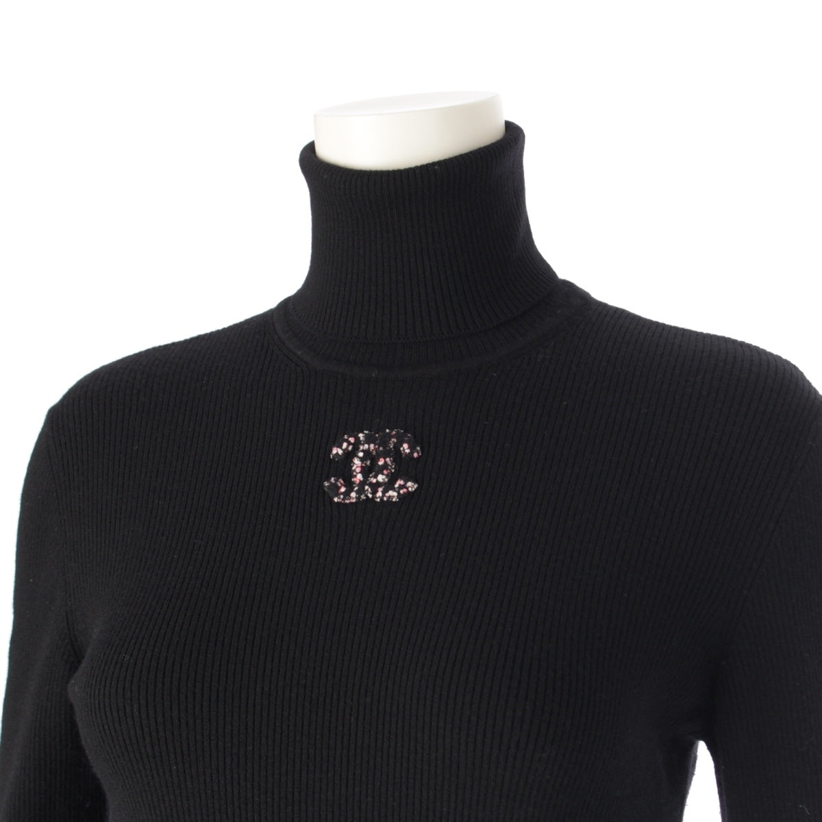 CHANEL wool COCO Mark Turtleneck sweater Knit Top P73855 black 36