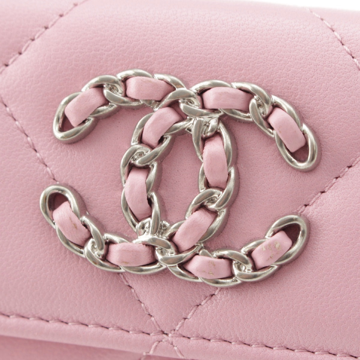 CHANEL 32 series 19 Dysneuf Lambskin leather COCO Mark Matrasse Tri-fold wallet Compact wallet Pink SilverMetal