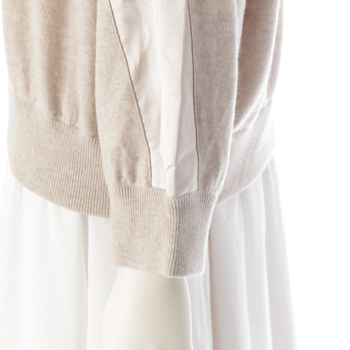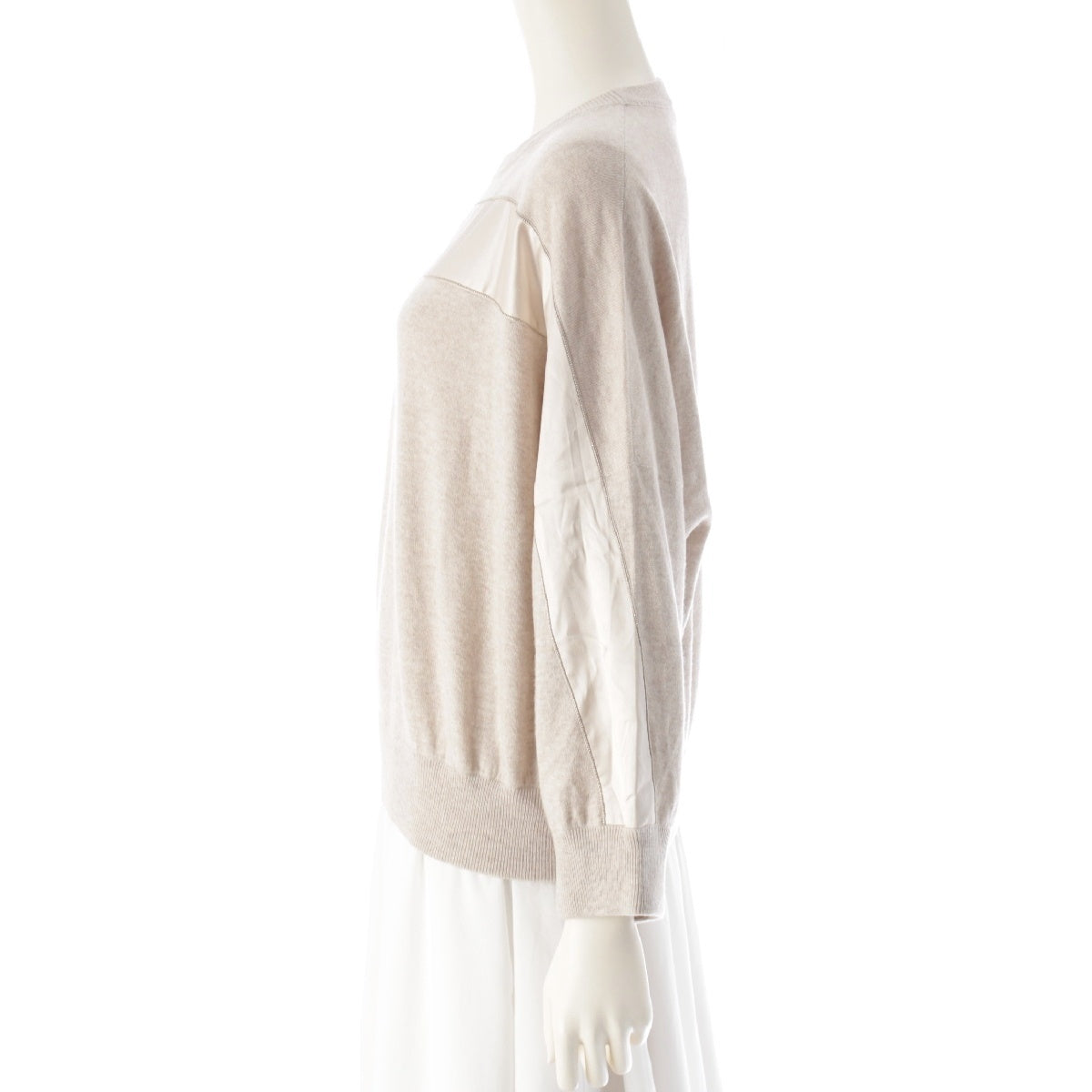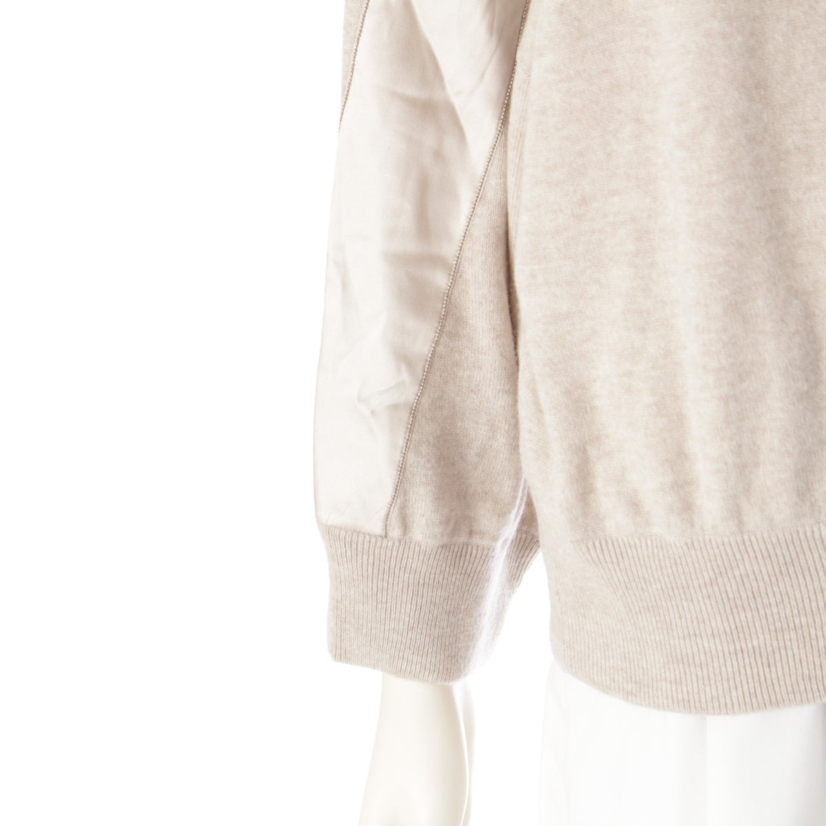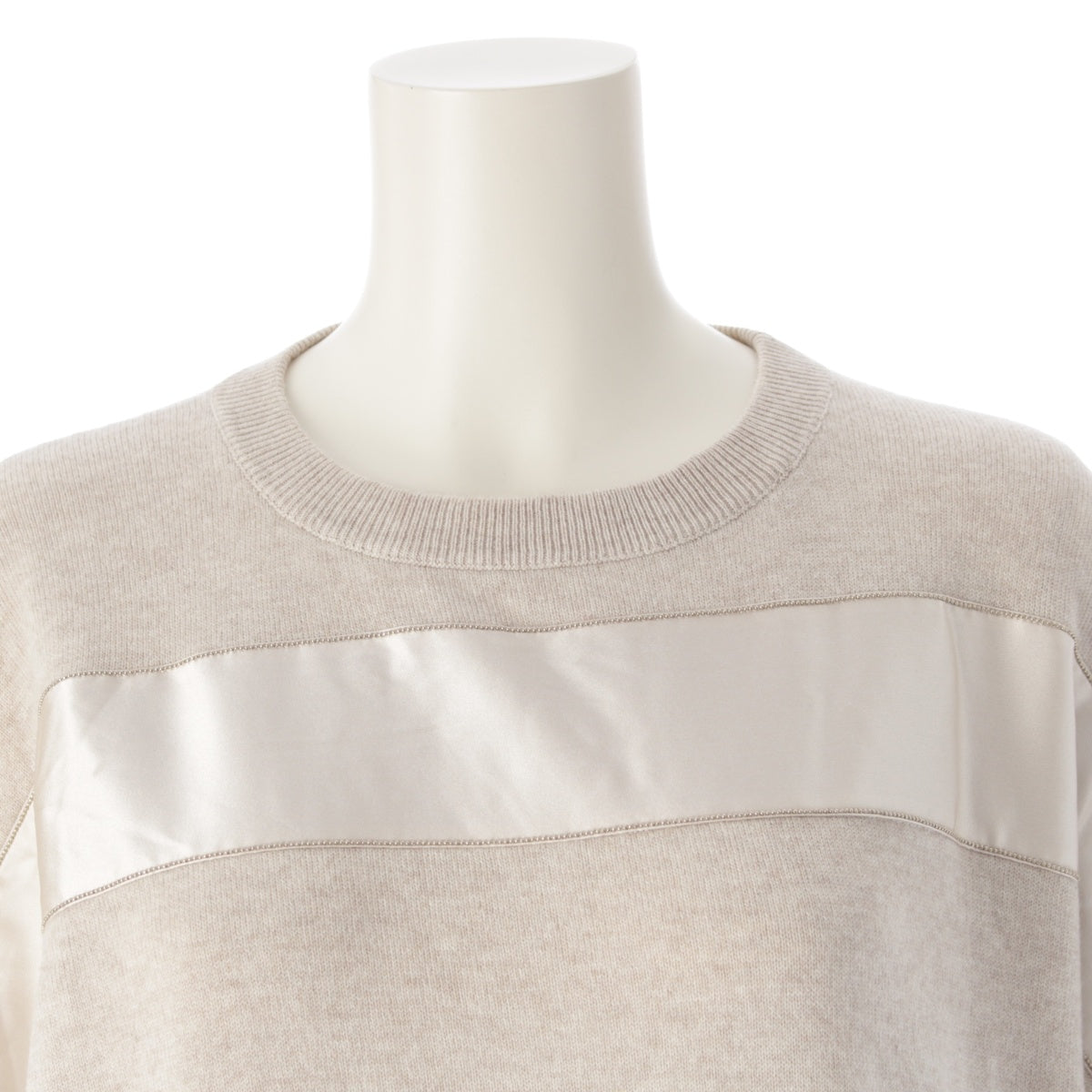 Brunello Cucinelli cashmere silk Monile decoration silk line sweater Knit Top beige XL