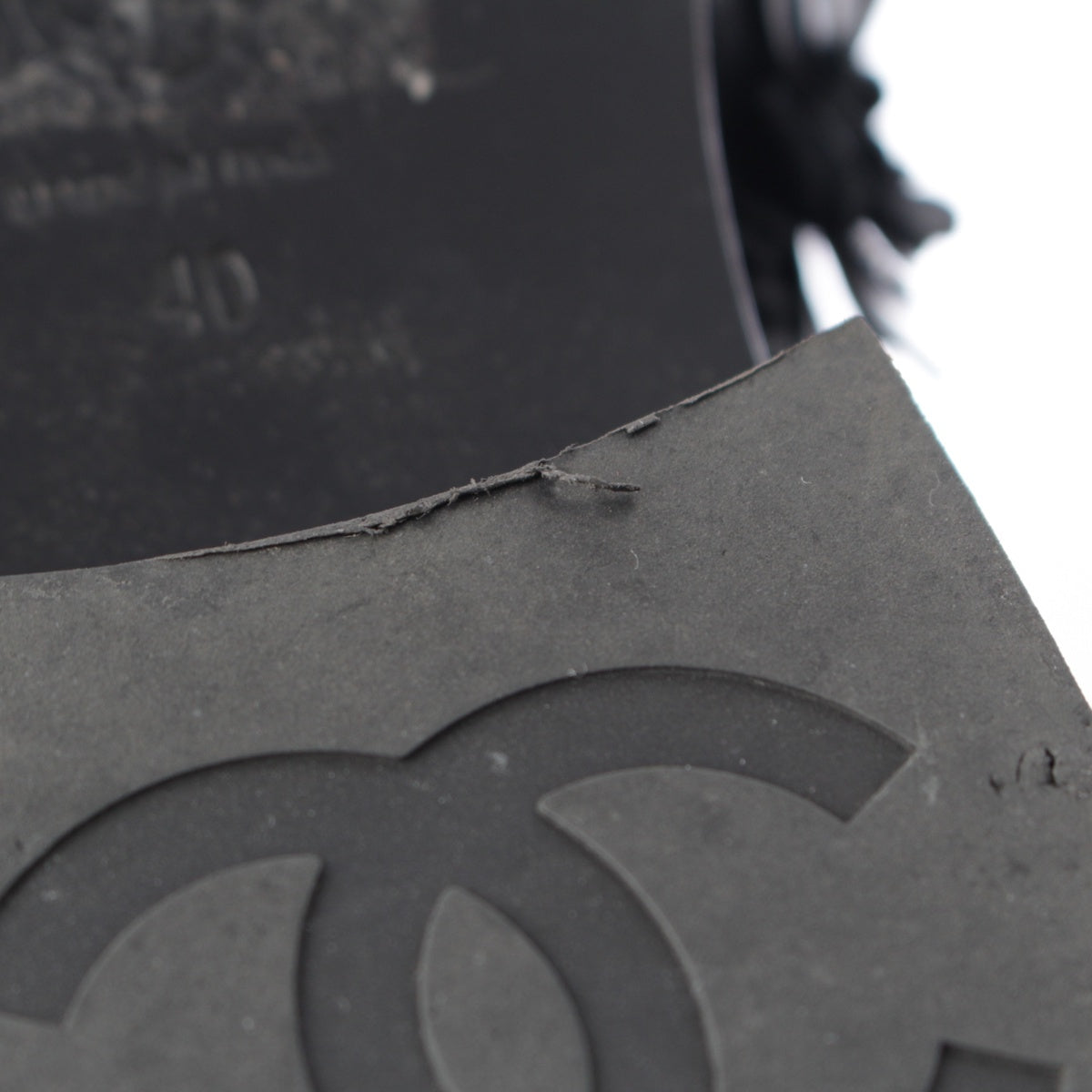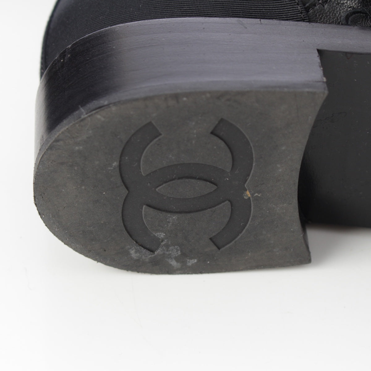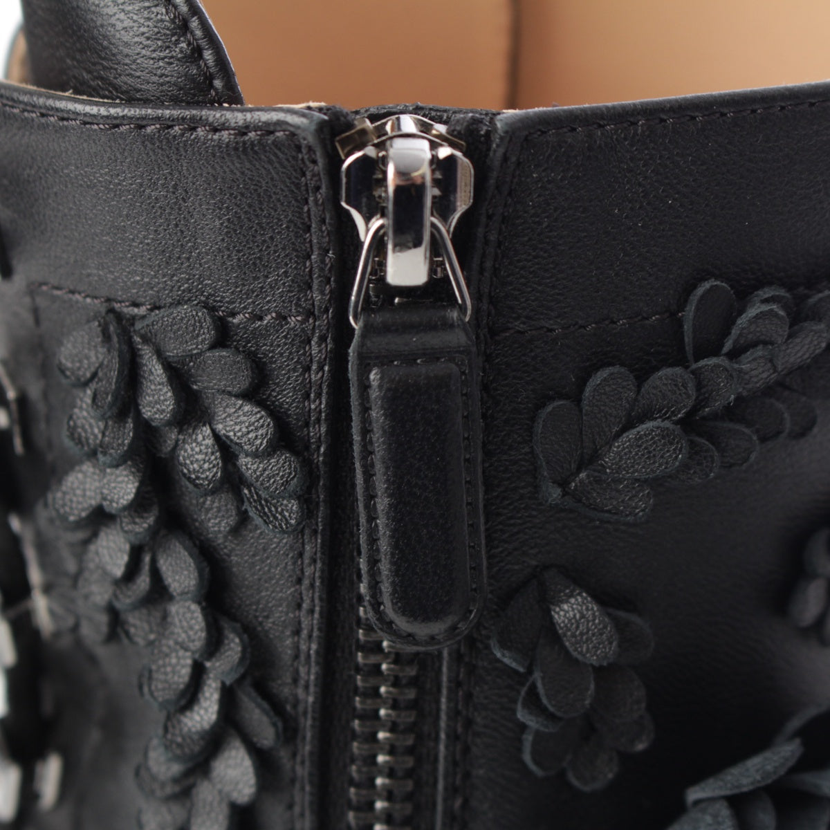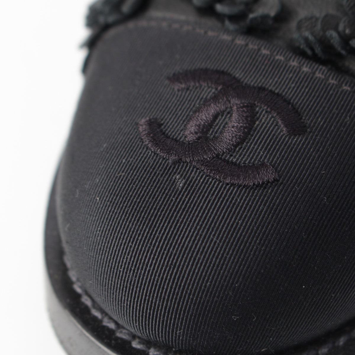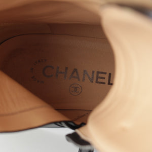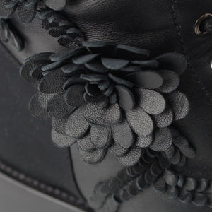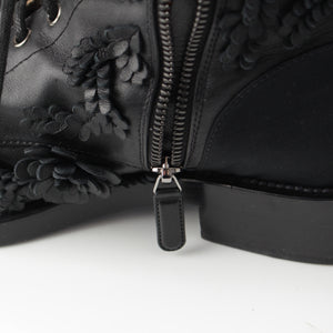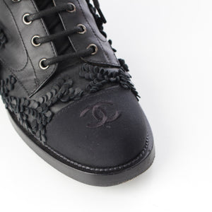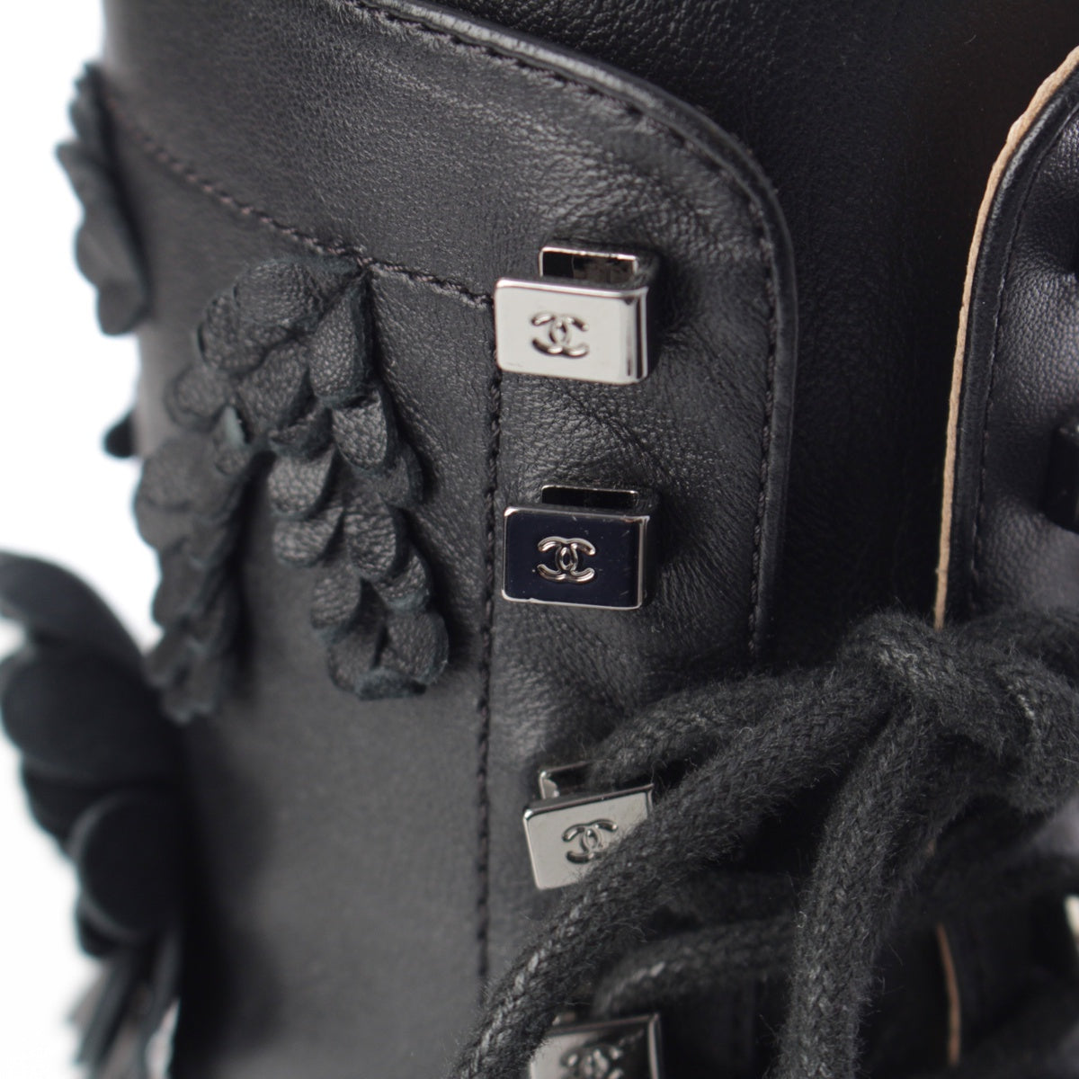 CHANEL leather Camellia lace-up ankle boots COCO Mark embroidery G36066 black 40