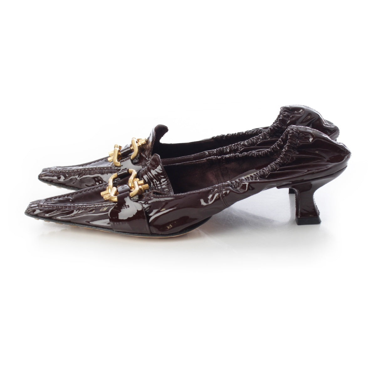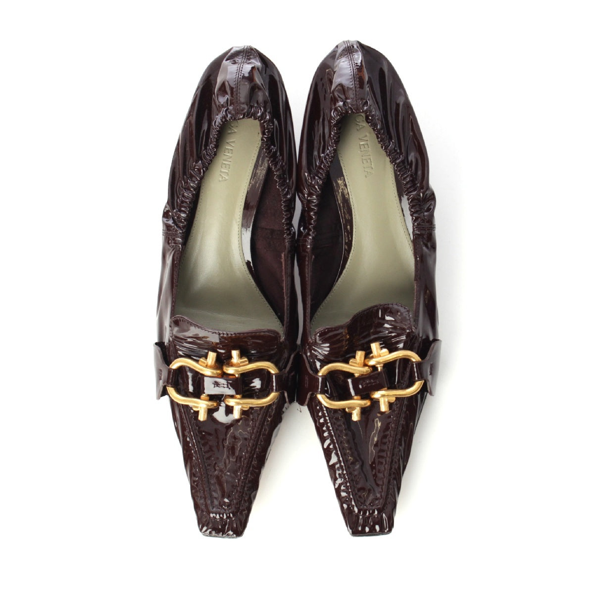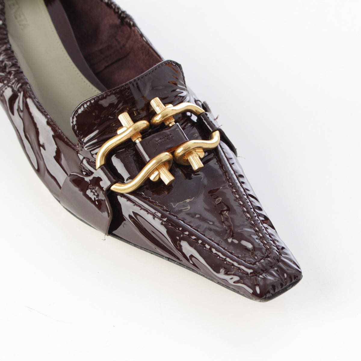 BOTTEGAVENETA Madam Patent leather pumps Mules Stiletto Heels Burgundy Gold 39