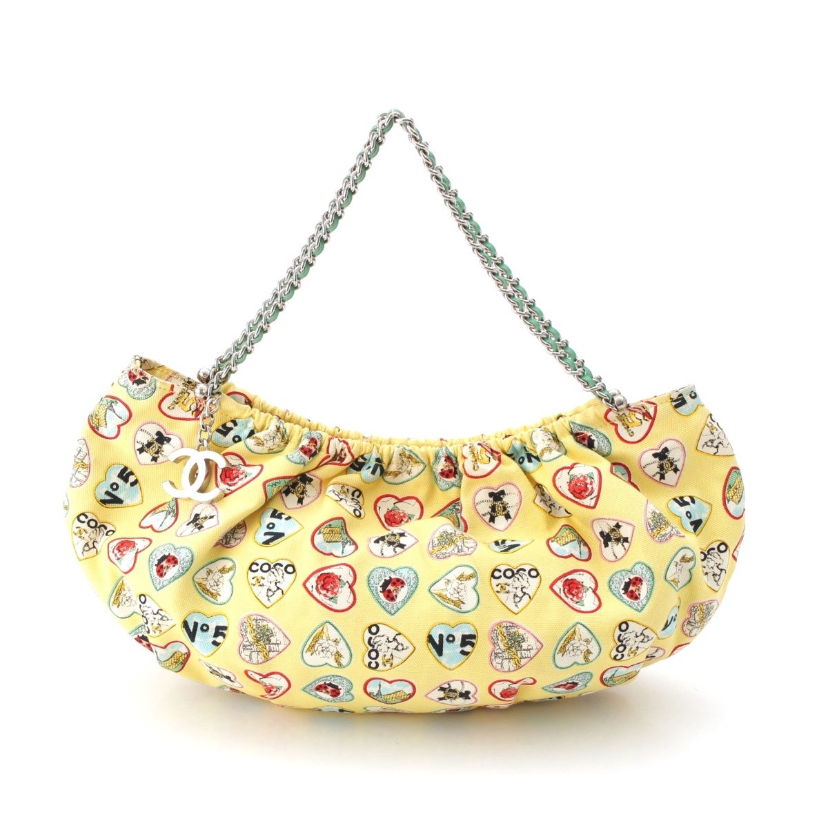 CHANEL Valentine Heart Icon COCO Mark ChainShoulder Handbag yellow