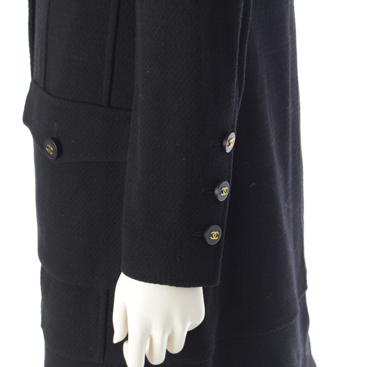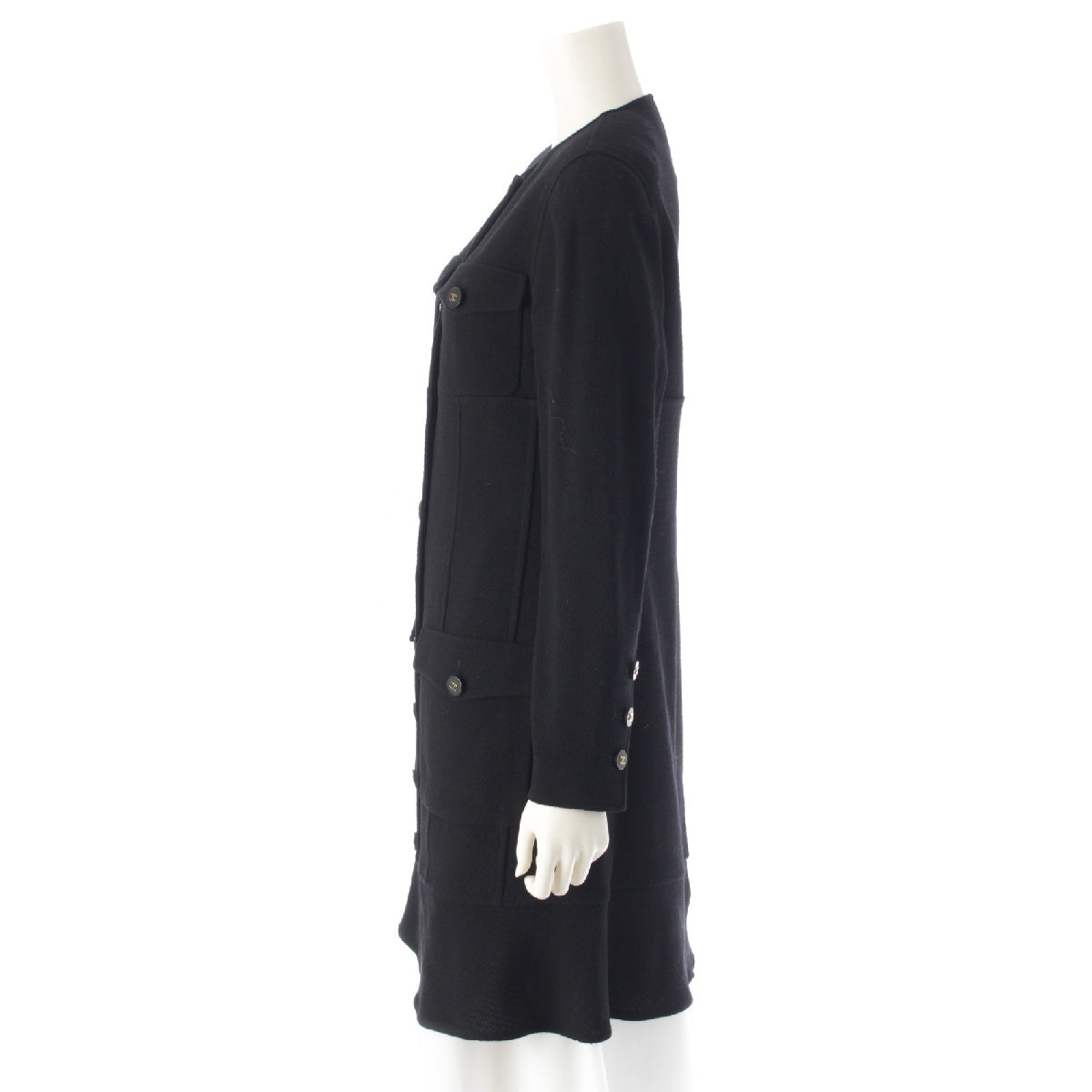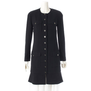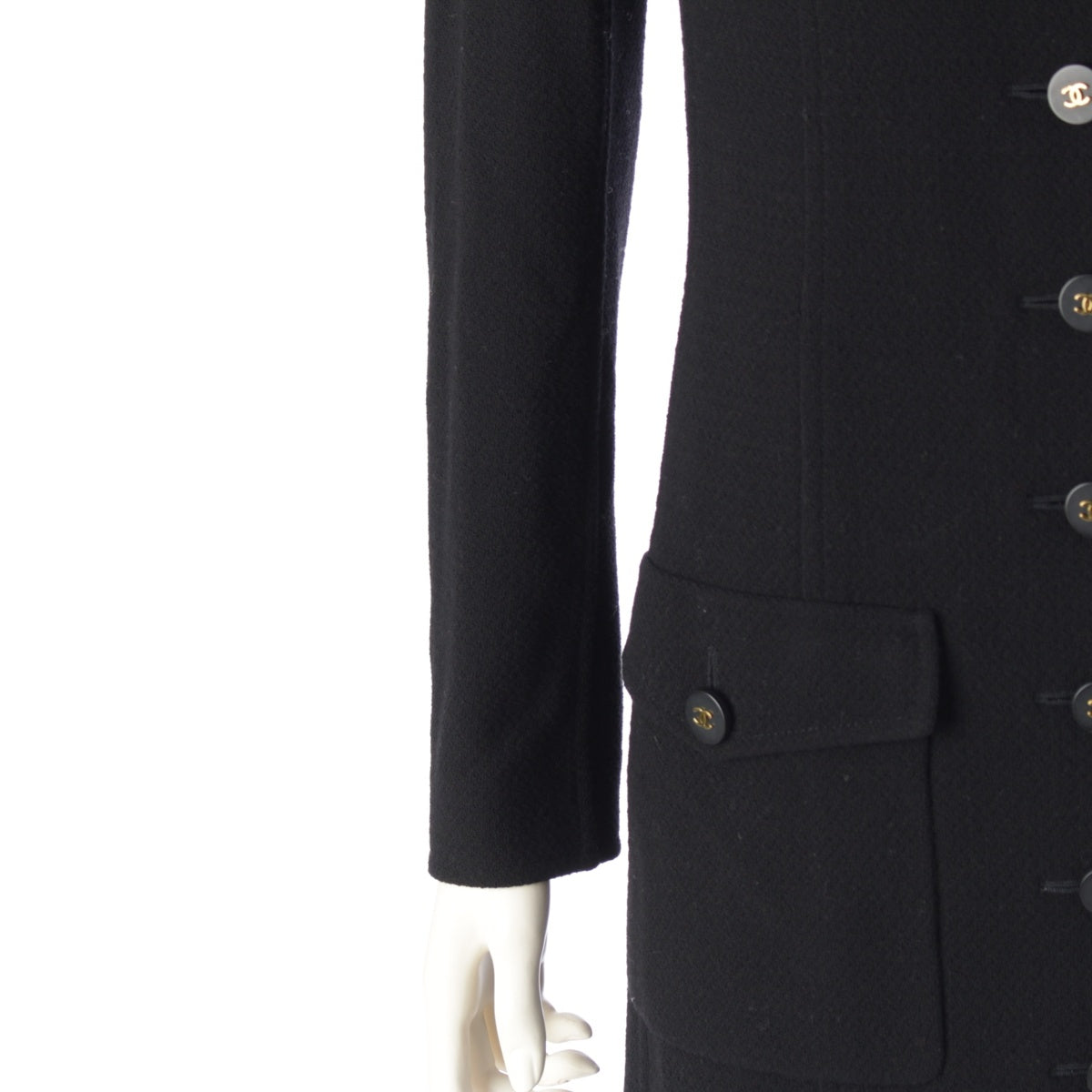 CHANEL 94A wool tweed Vintage COCO Button No Collar Long coat 4 Pocket One Piece Dress P03699 black 38