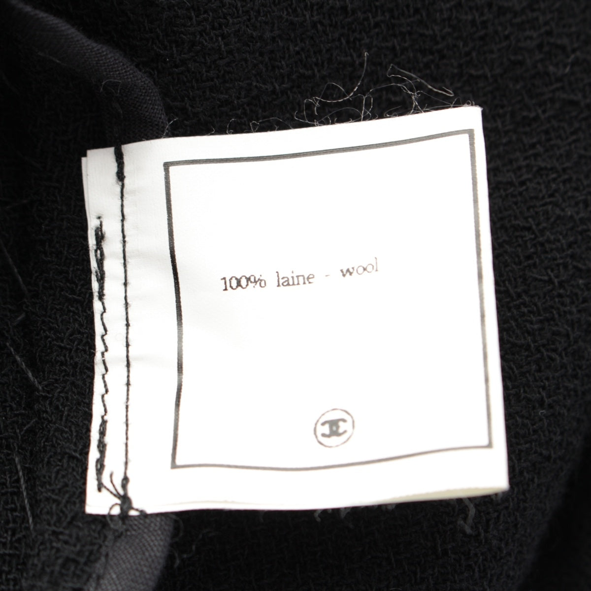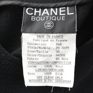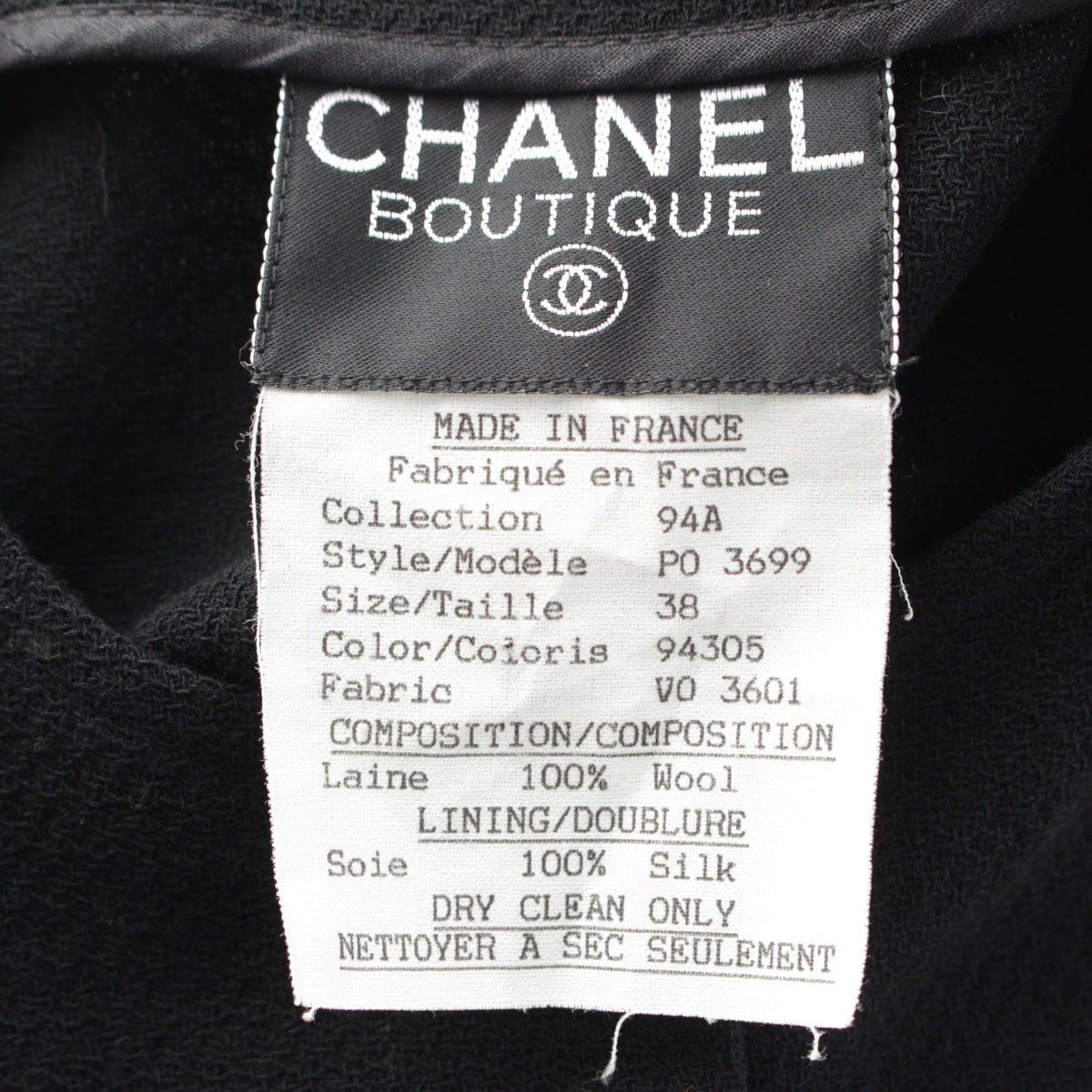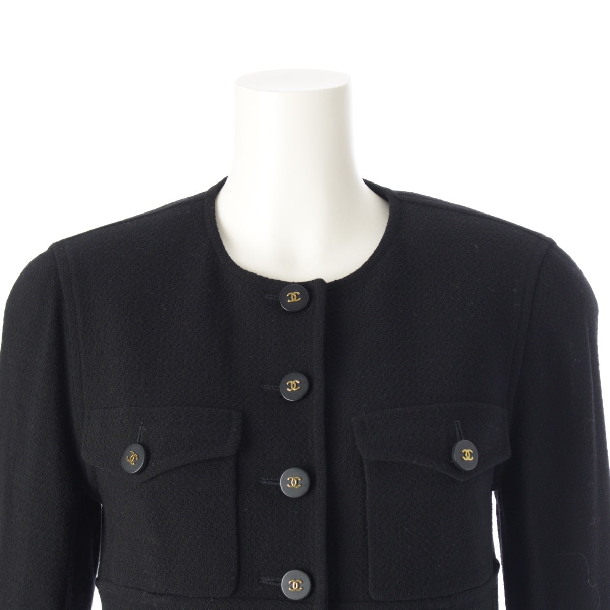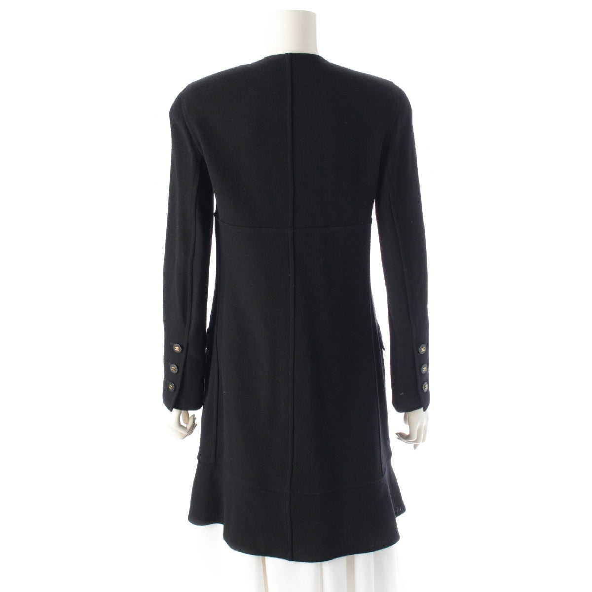 CHANEL 94A wool tweed Vintage COCO Button No Collar Long coat 4 Pocket One Piece Dress P03699 black 38