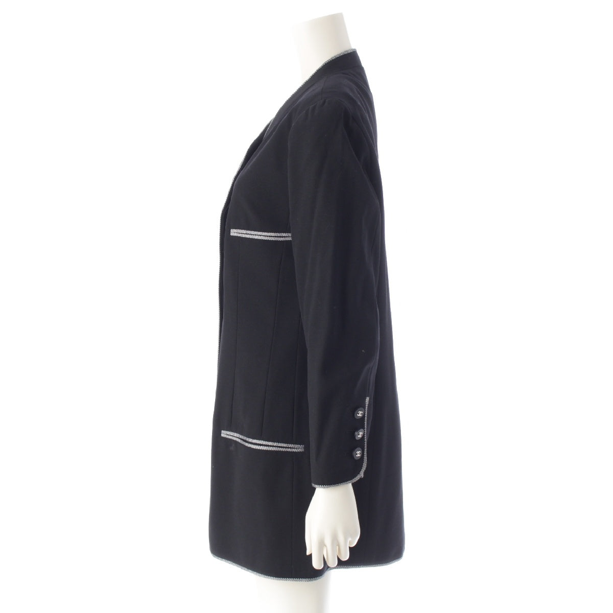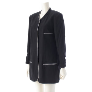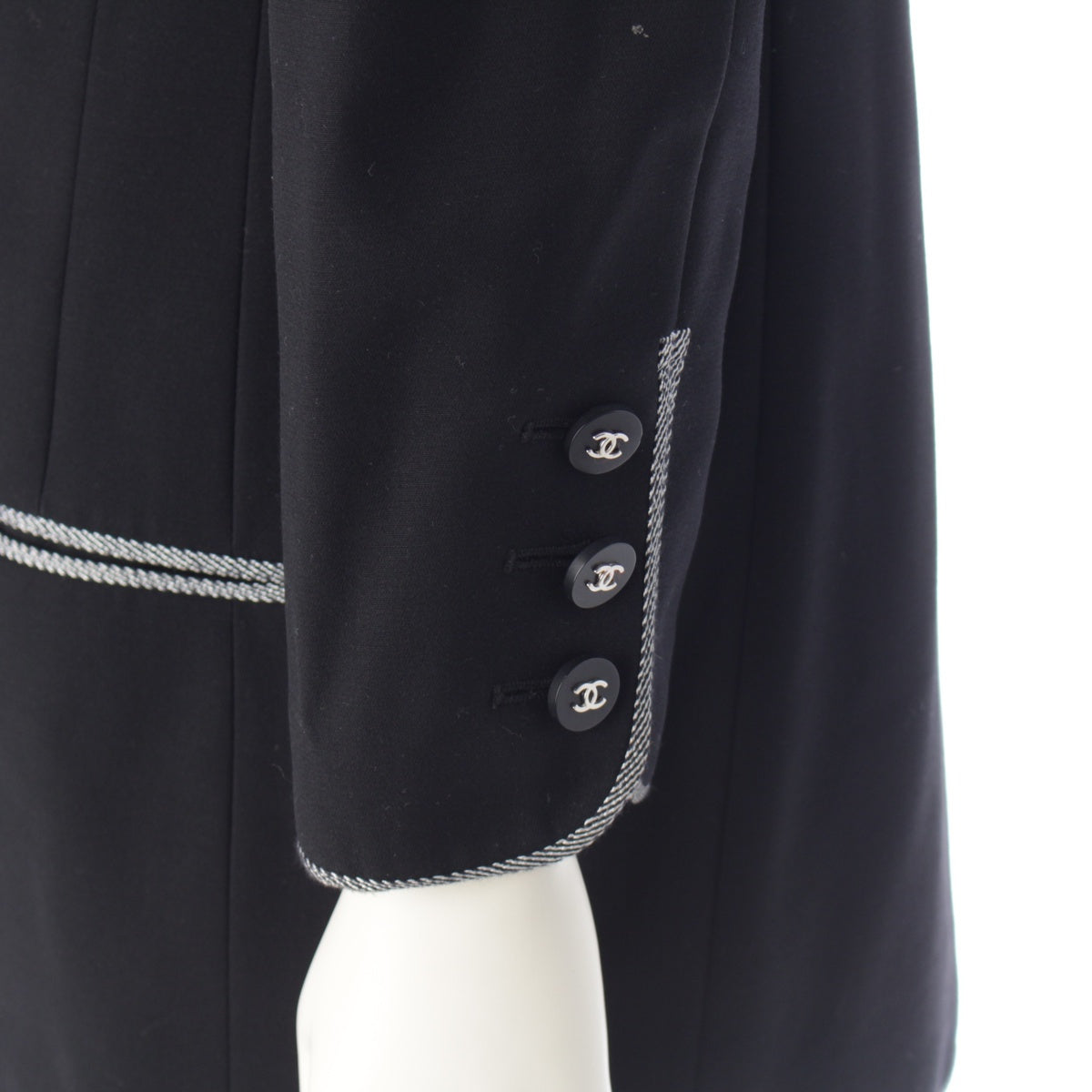 CHANEL 96P wool COCO Button Stripe Pattern Piping Jacket outer P06569 black 42