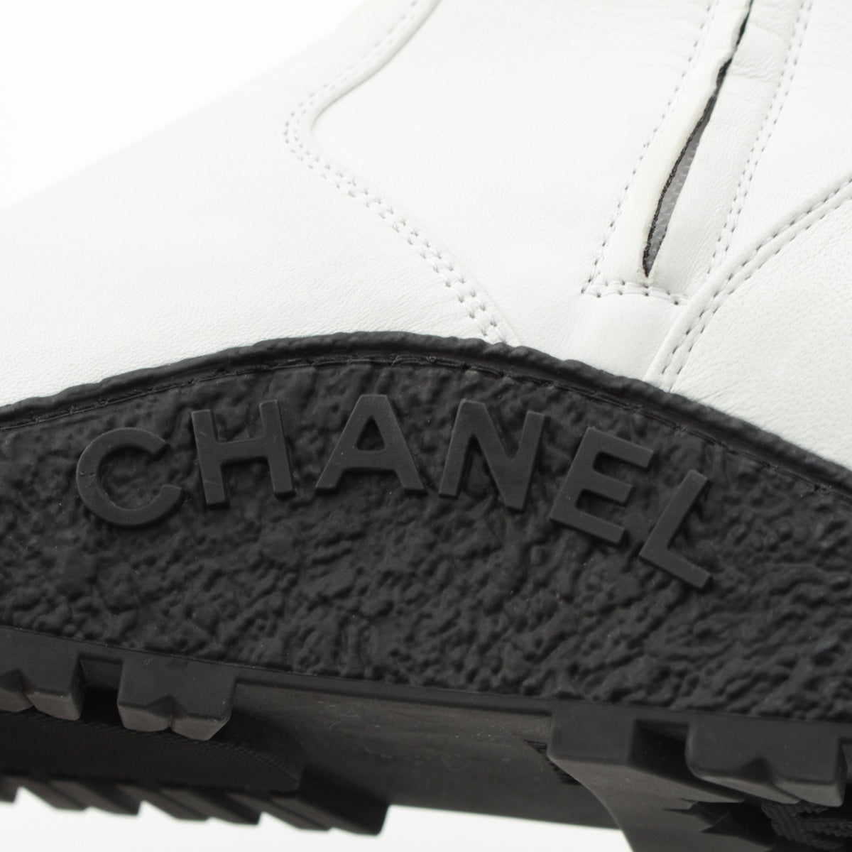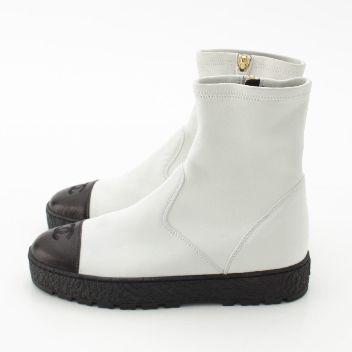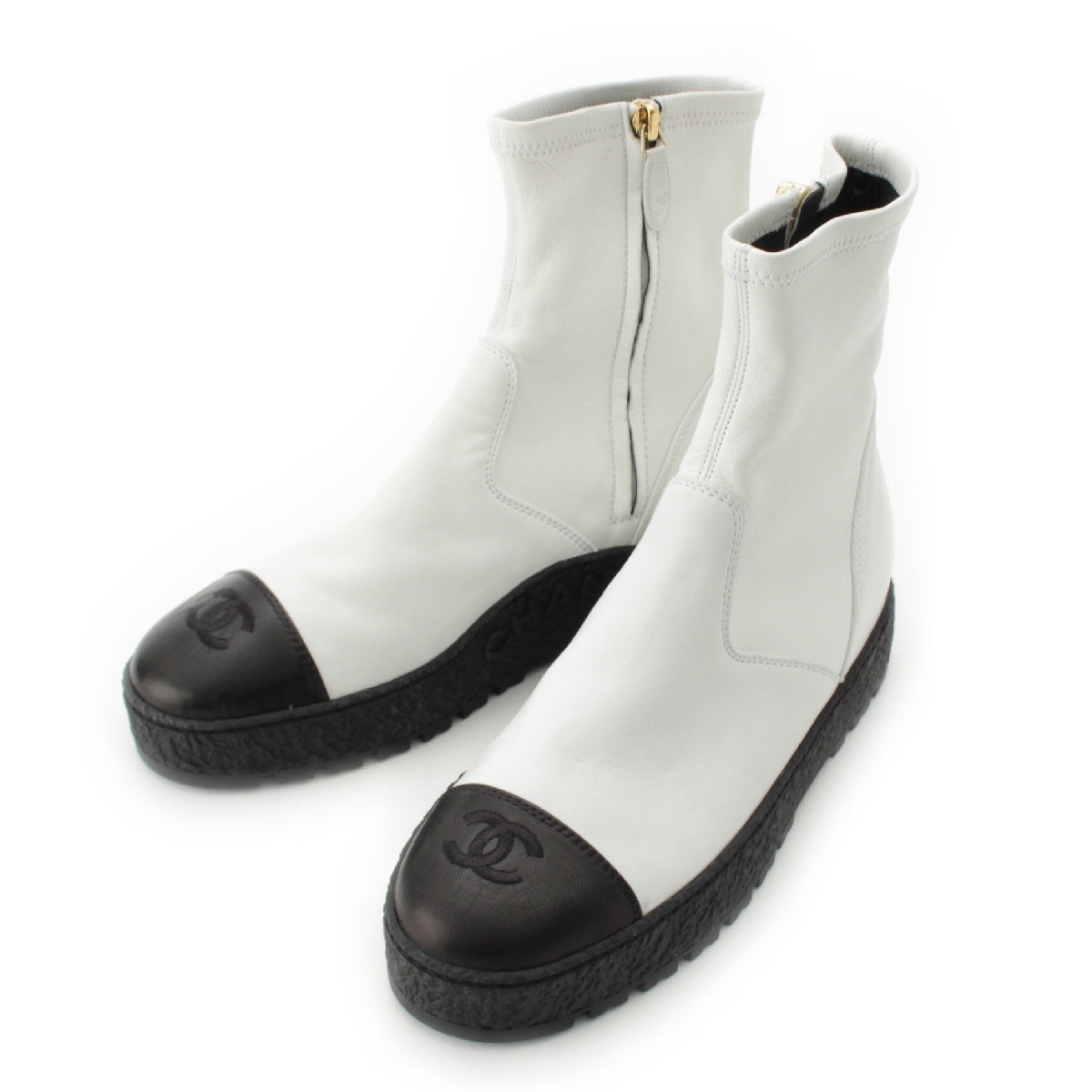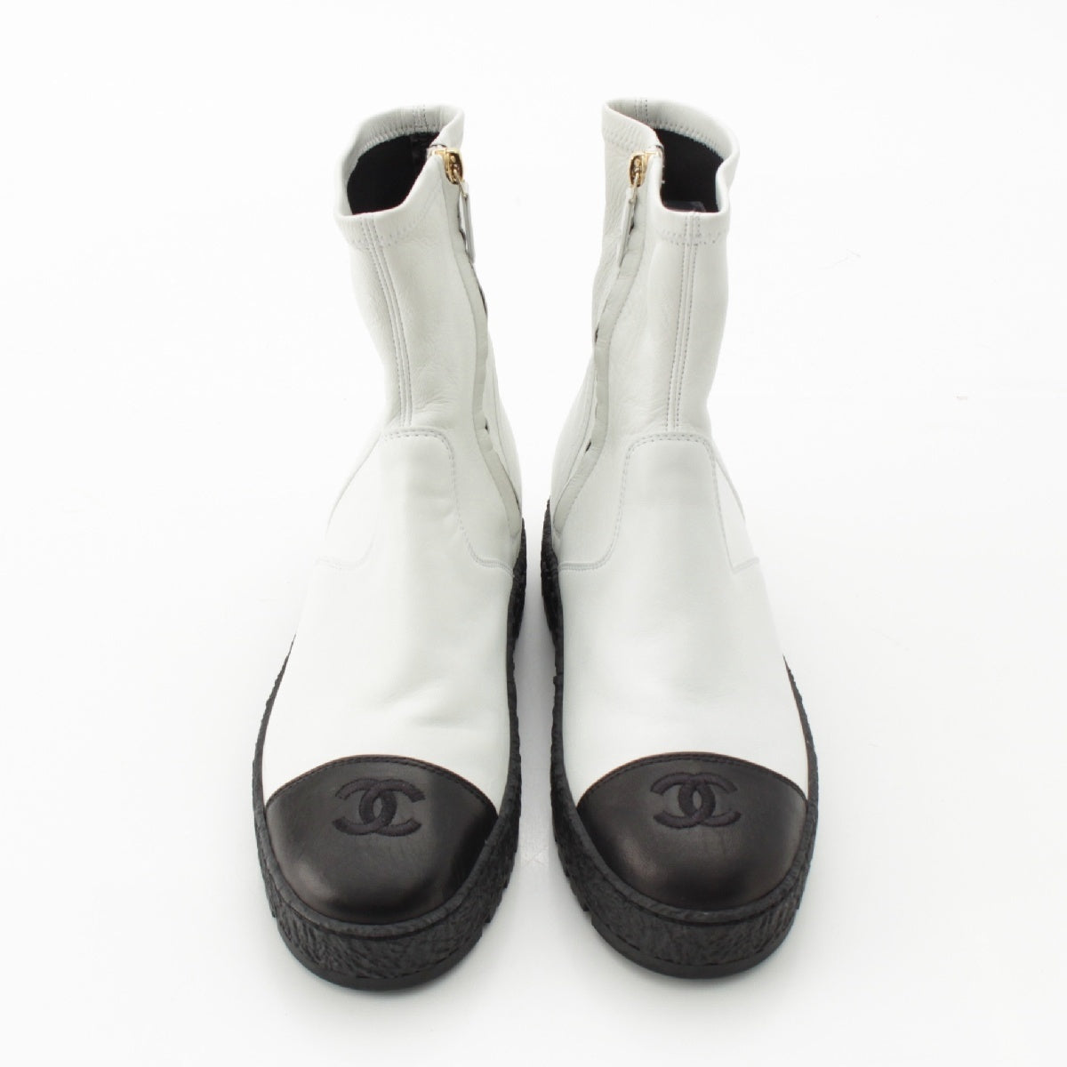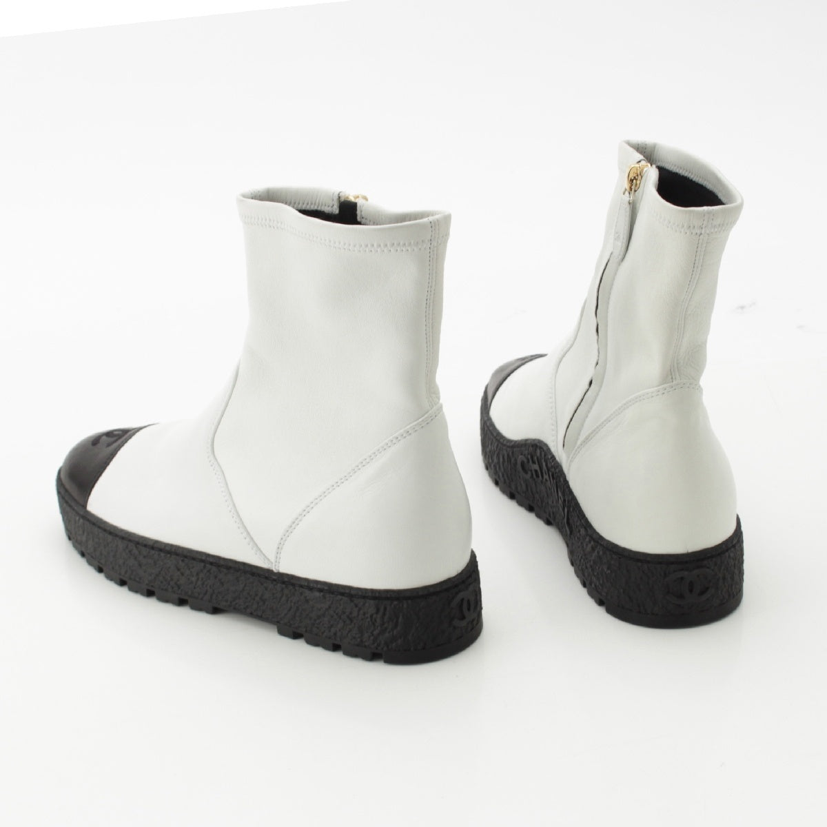 CHANEL leather COCO Mark logo side zip ankle shorts boots shoes White x black 38