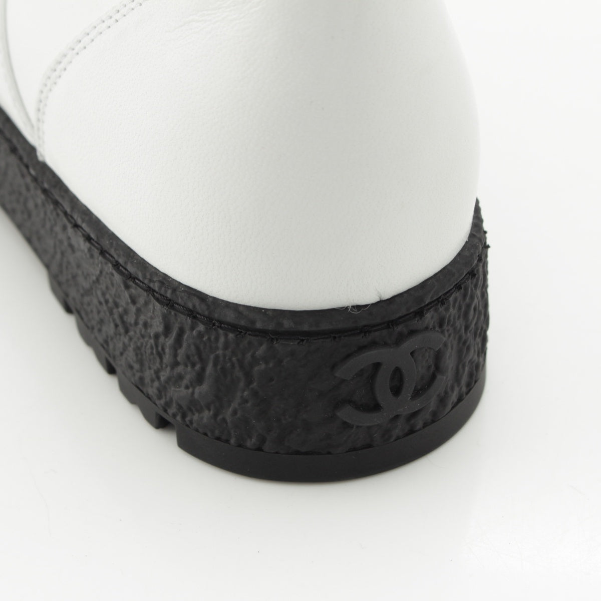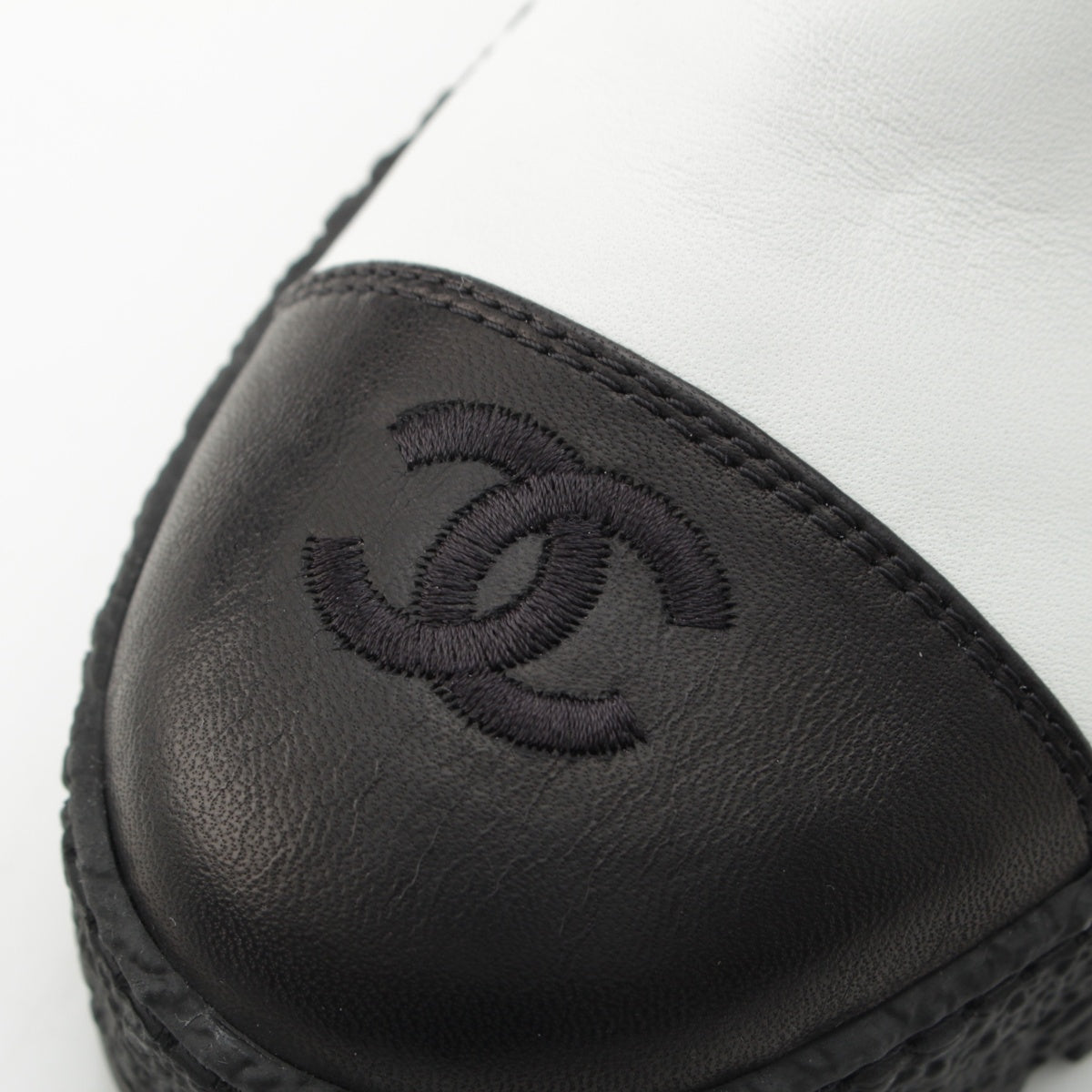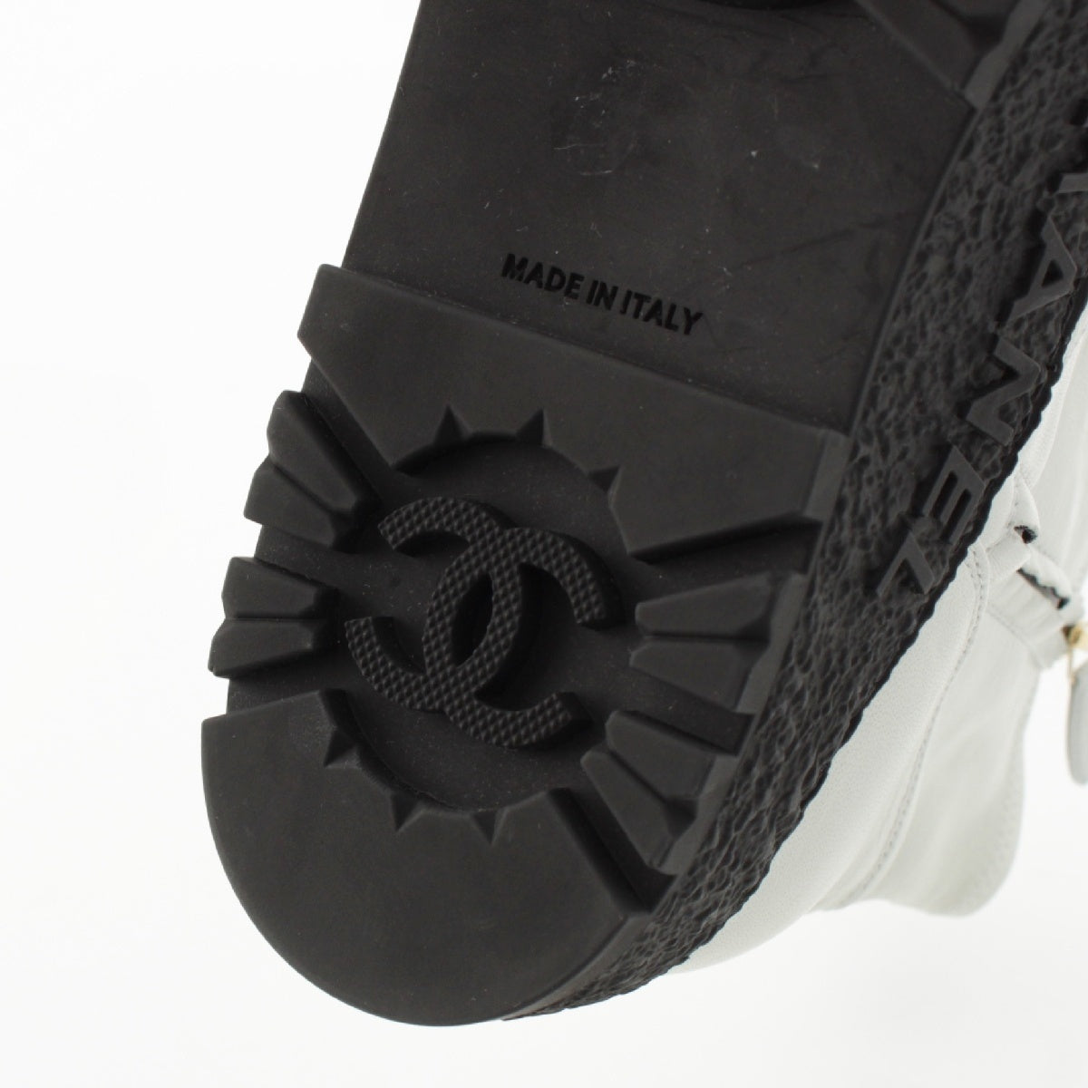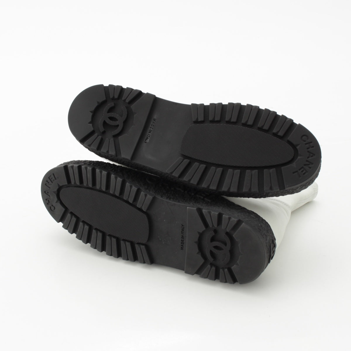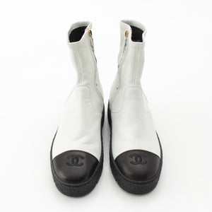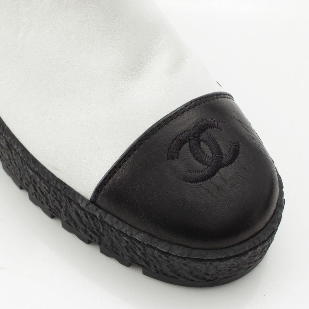 CHANEL leather COCO Mark logo side zip ankle shorts boots shoes White x black 38
