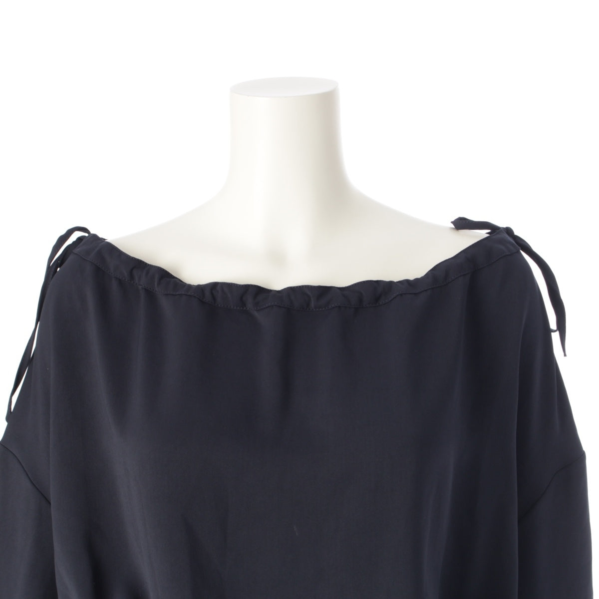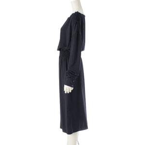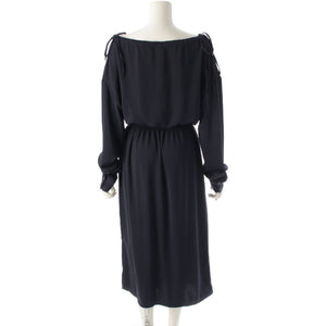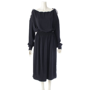 CELINE Phoebe period Ribbon Elastic waist one piece dress 2 6W78/7631 Navy 34