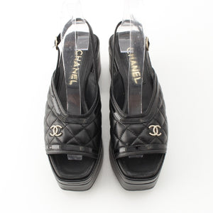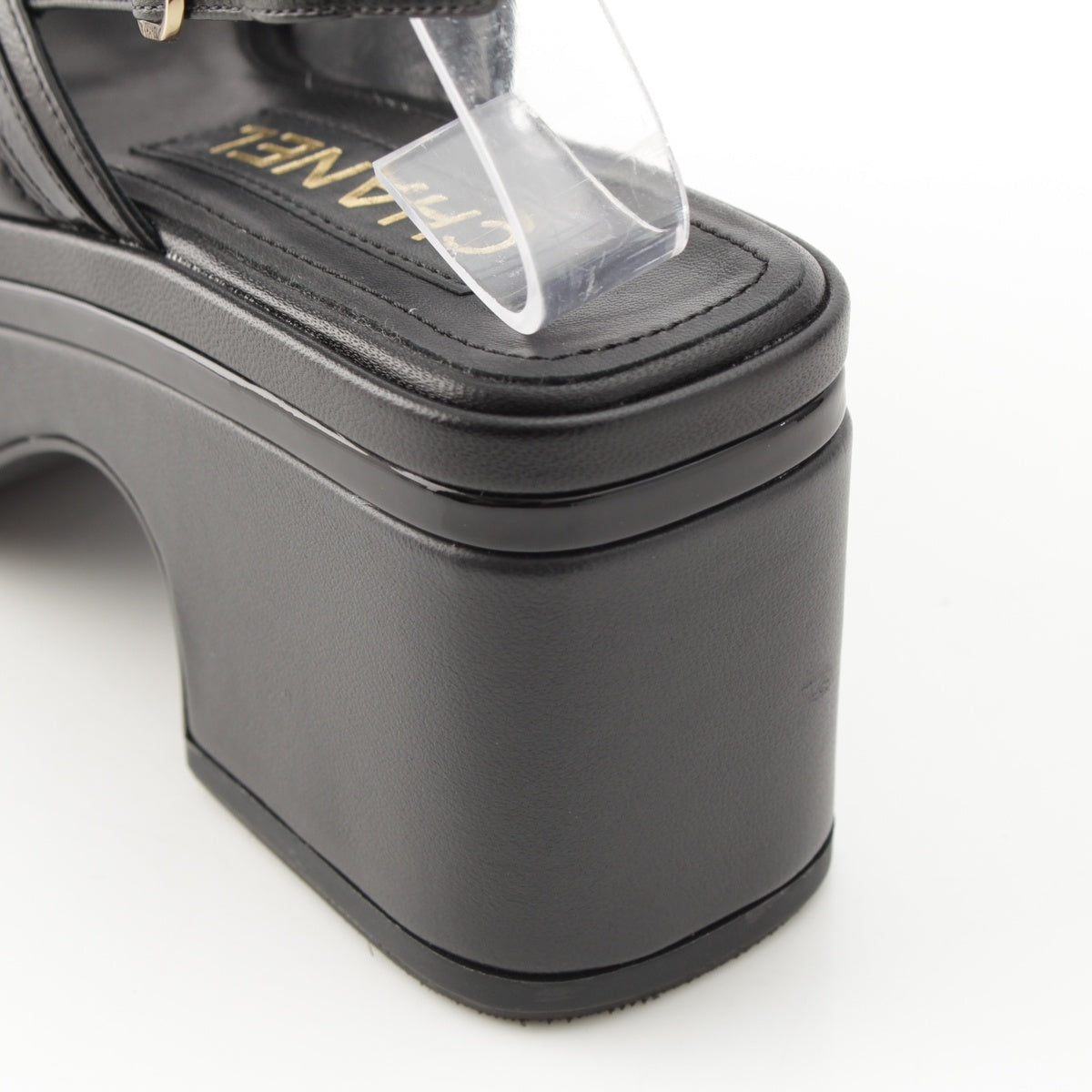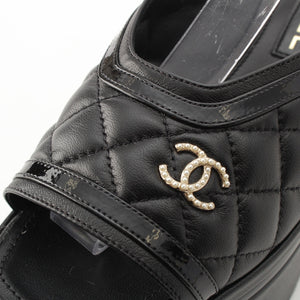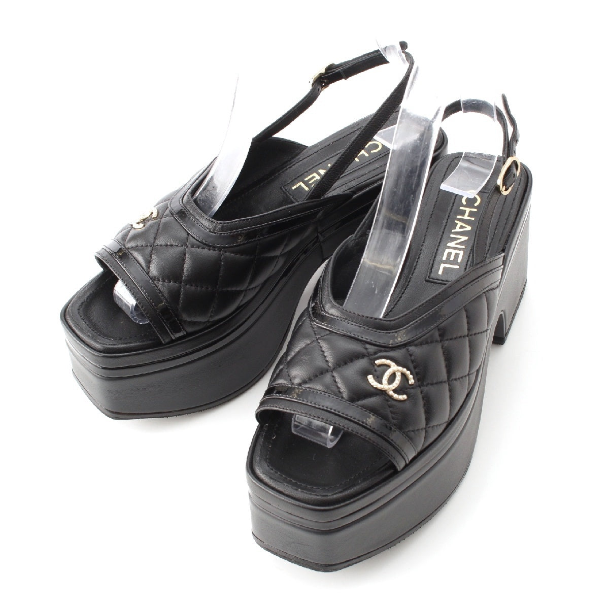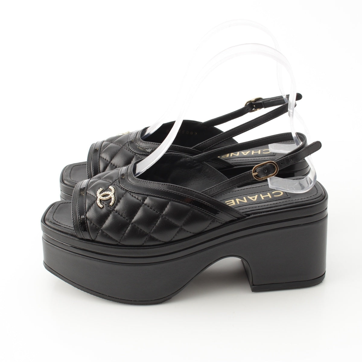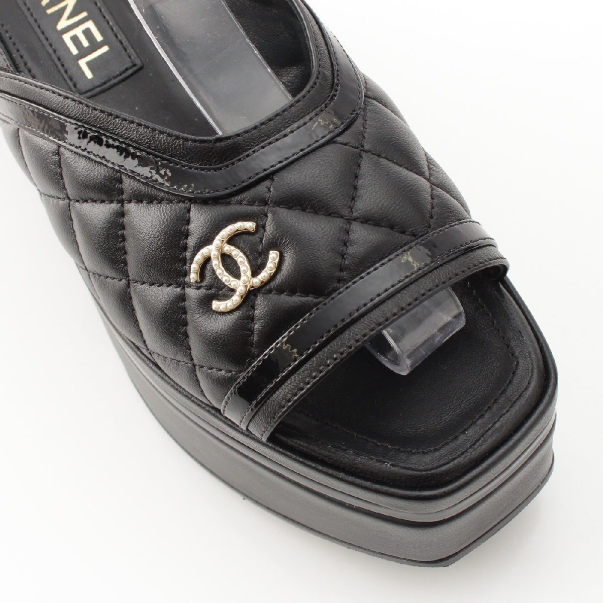 CHANEL 23-24 years Pearl COCO Mark Matelasse Platform Strap Sandals G45009 black 36