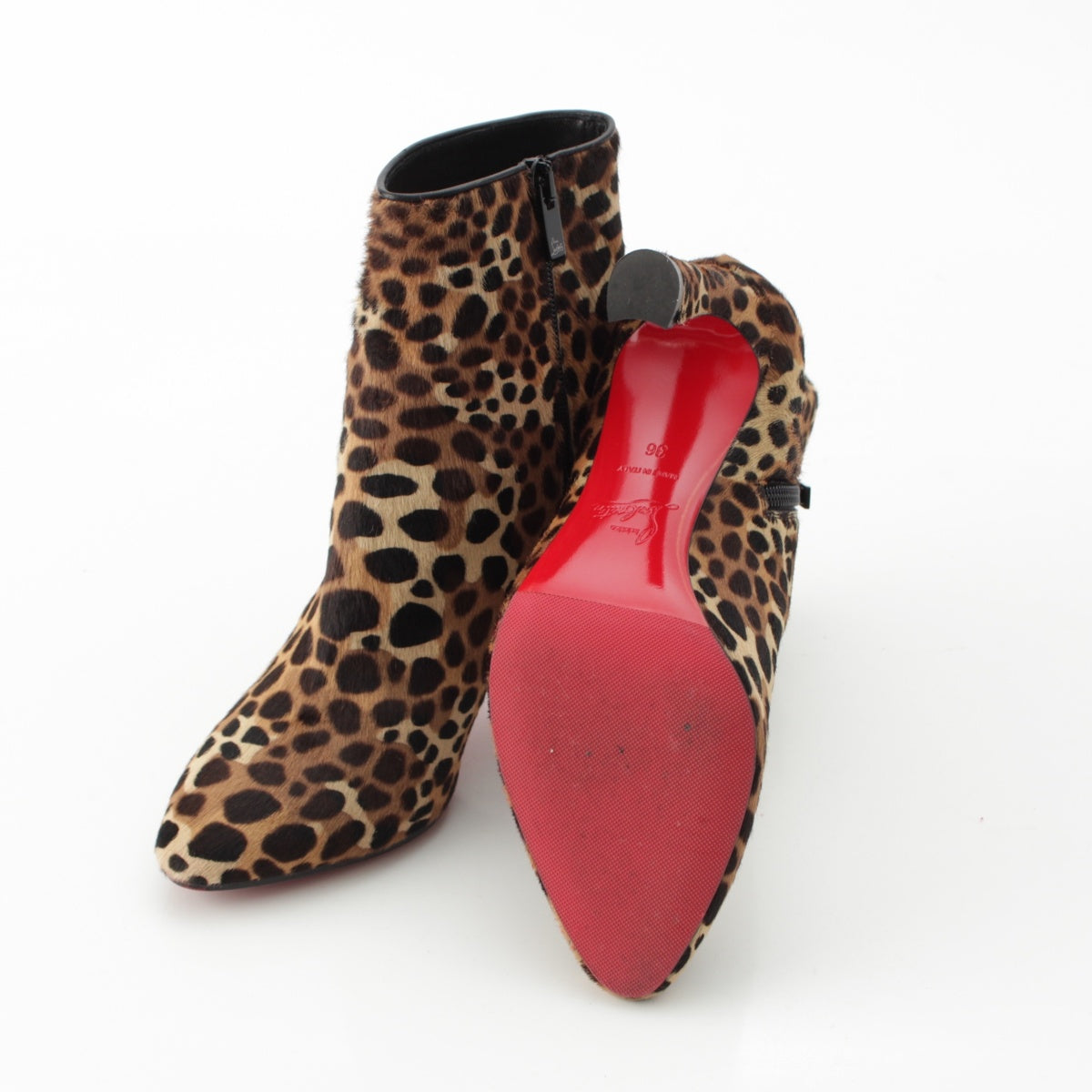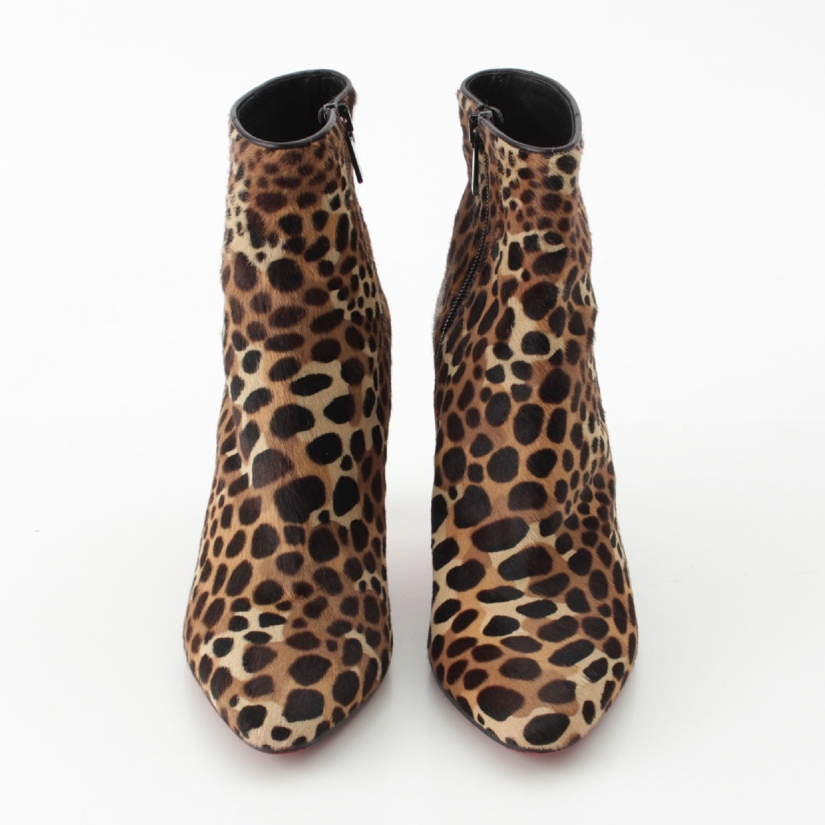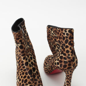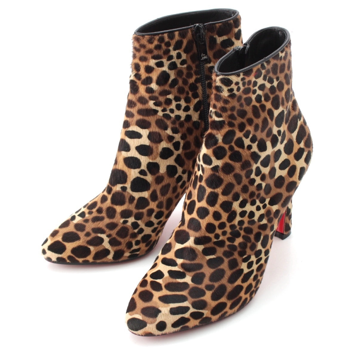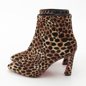 Christian Louboutin Harako Leopard ankle short heels boots Booties Brown beige 36