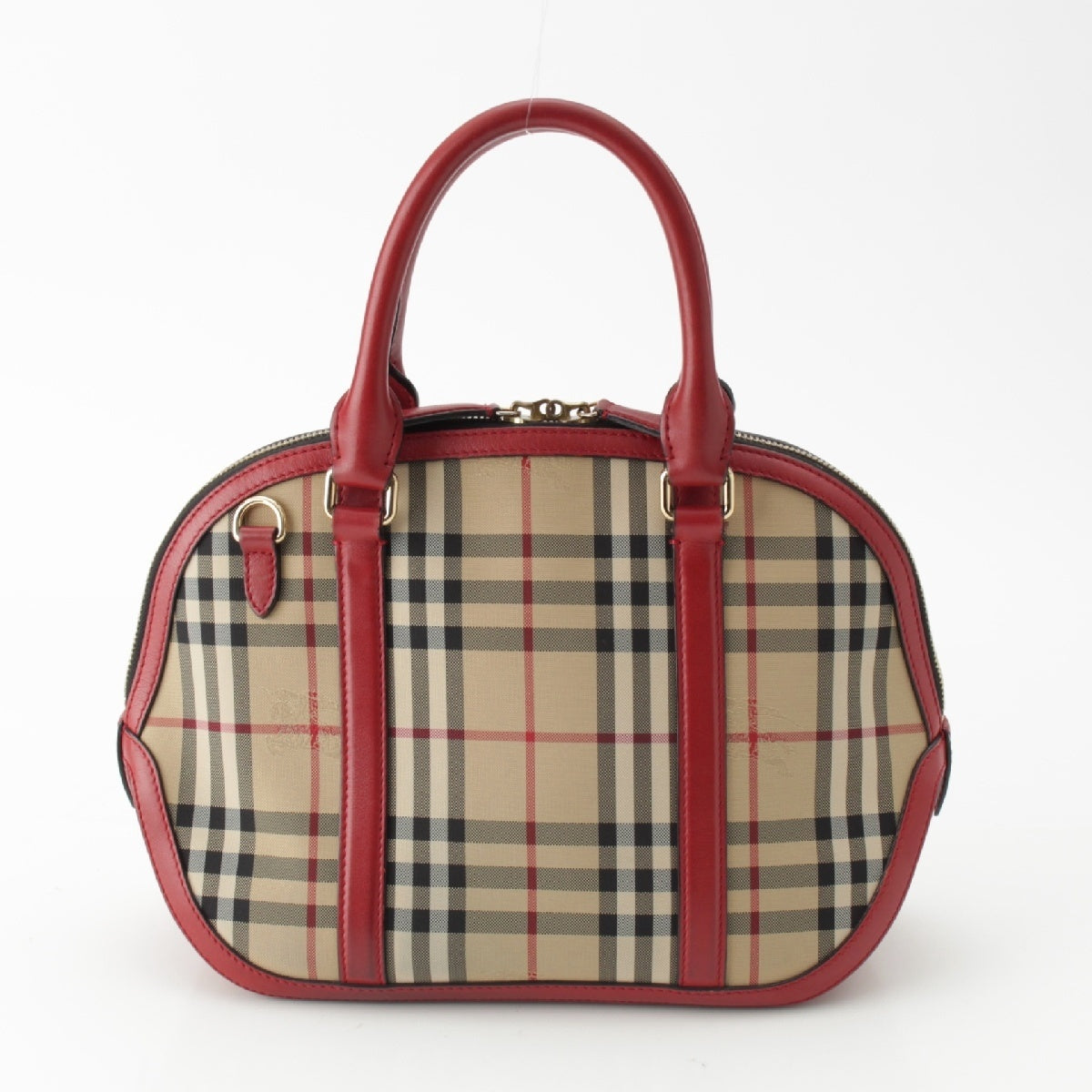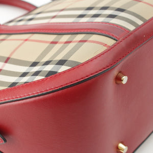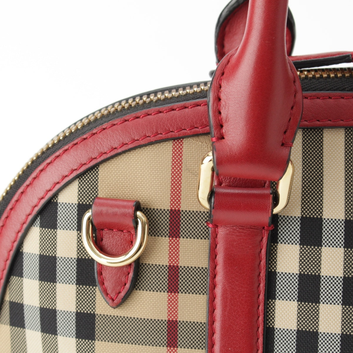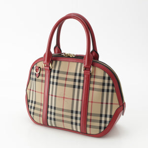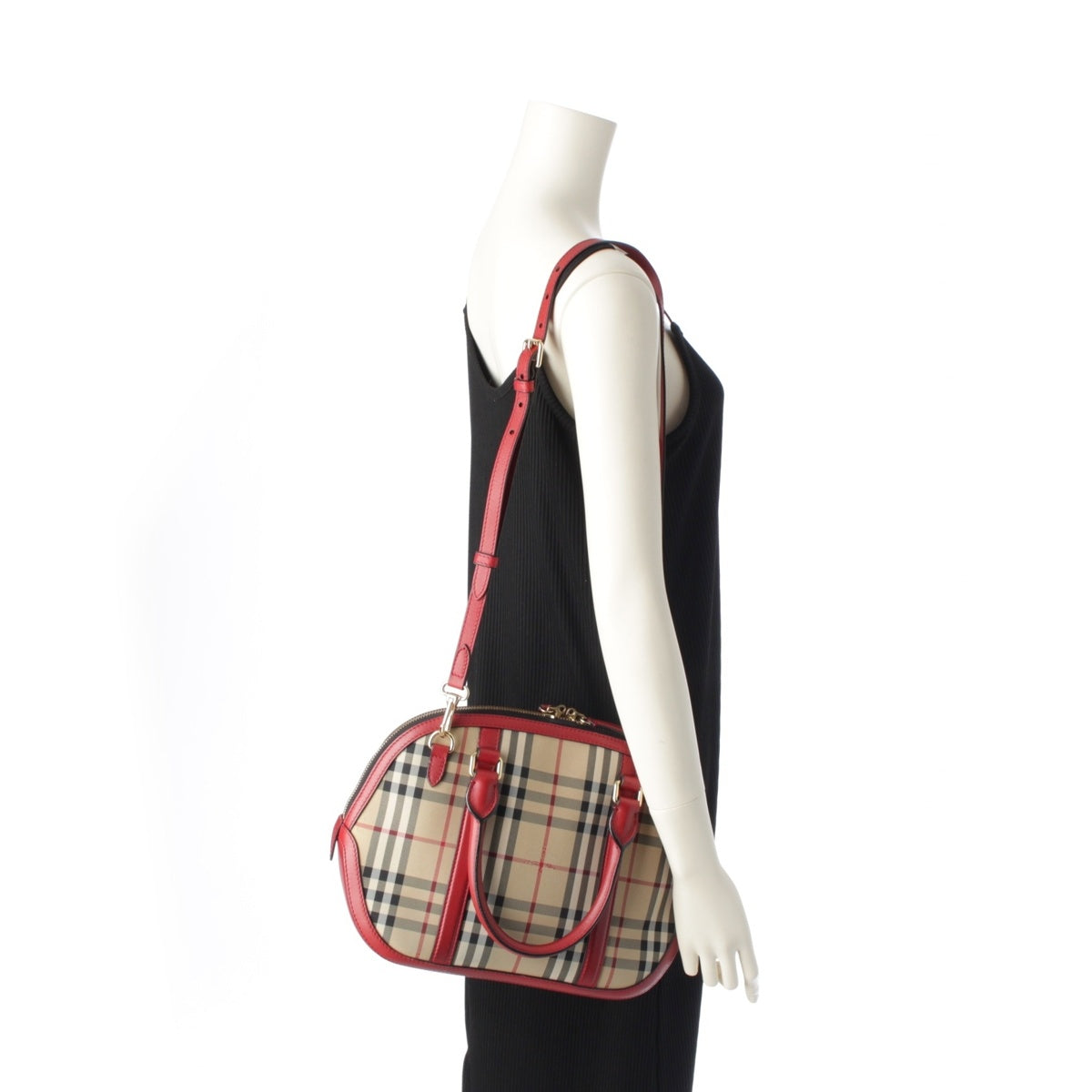 BURBERRY Orchard Horse Ferry Nova Check 2way Shoulder Handbag Cross body Beige red
