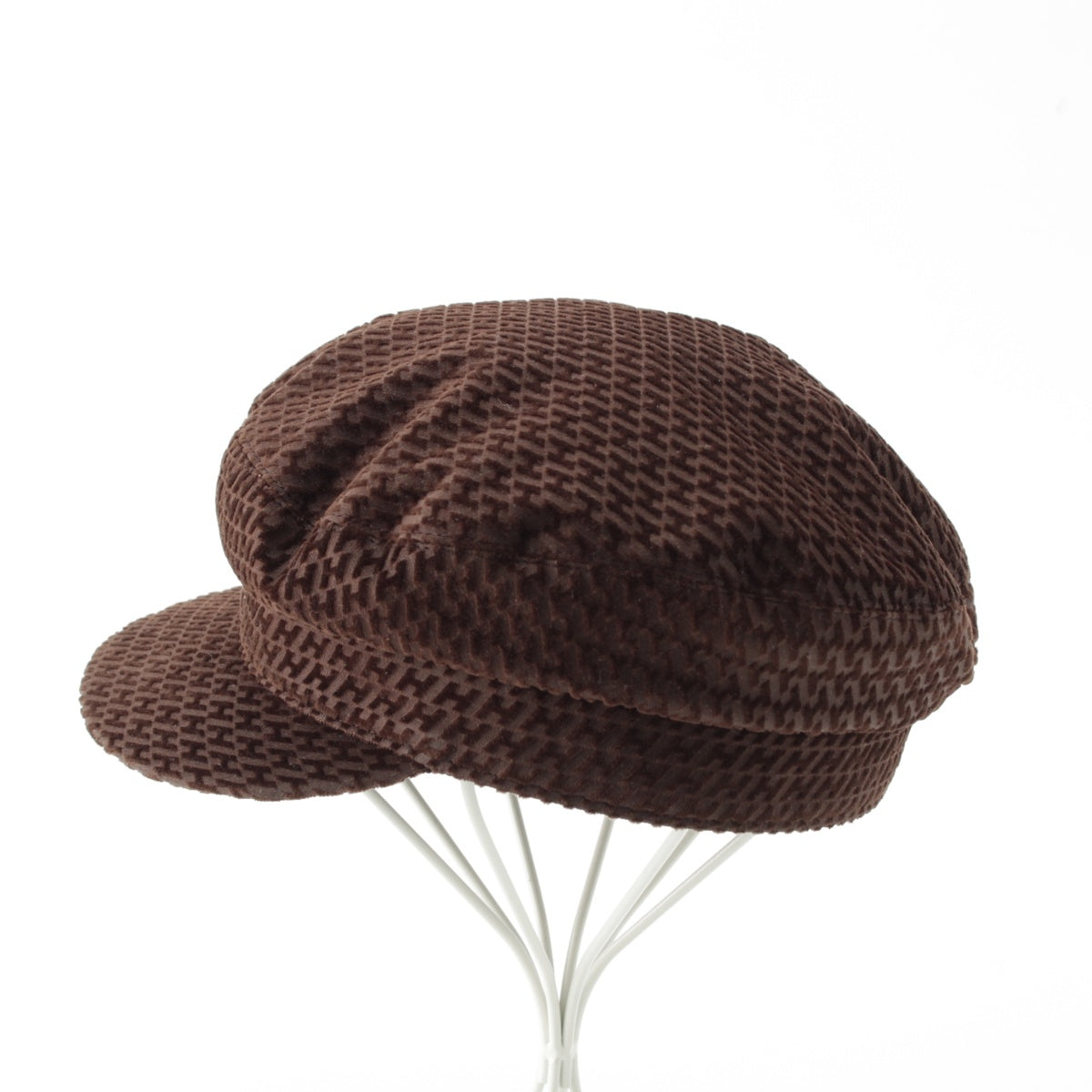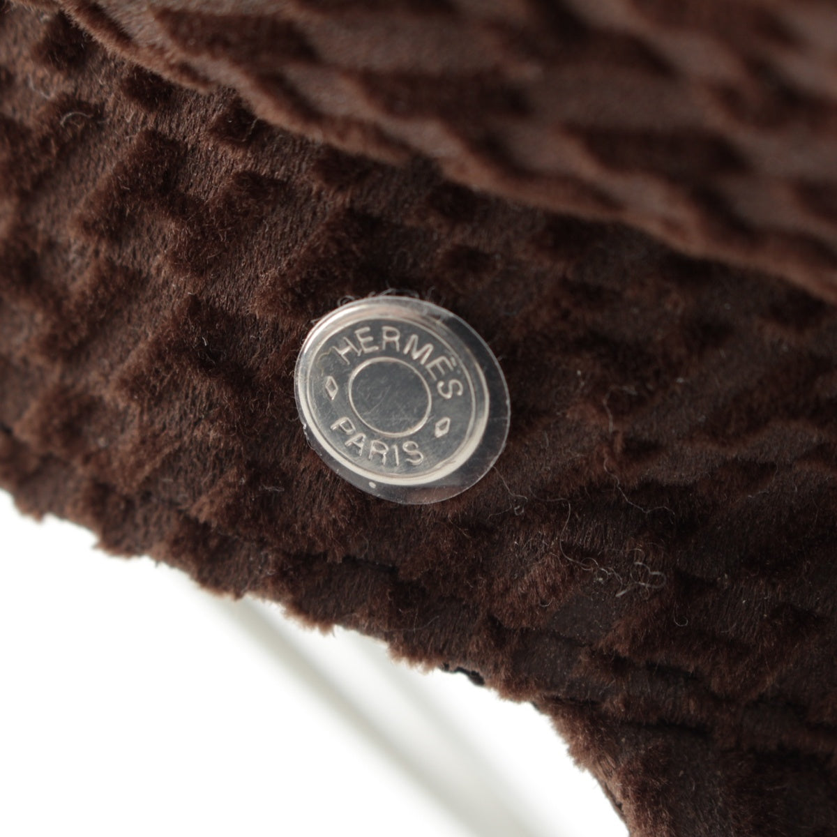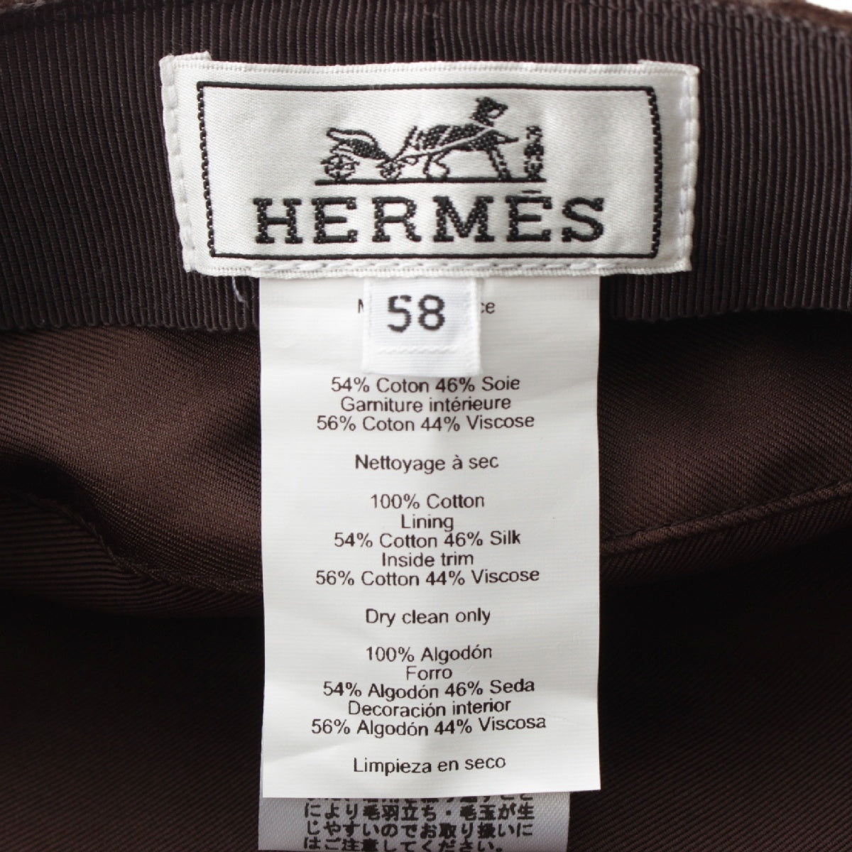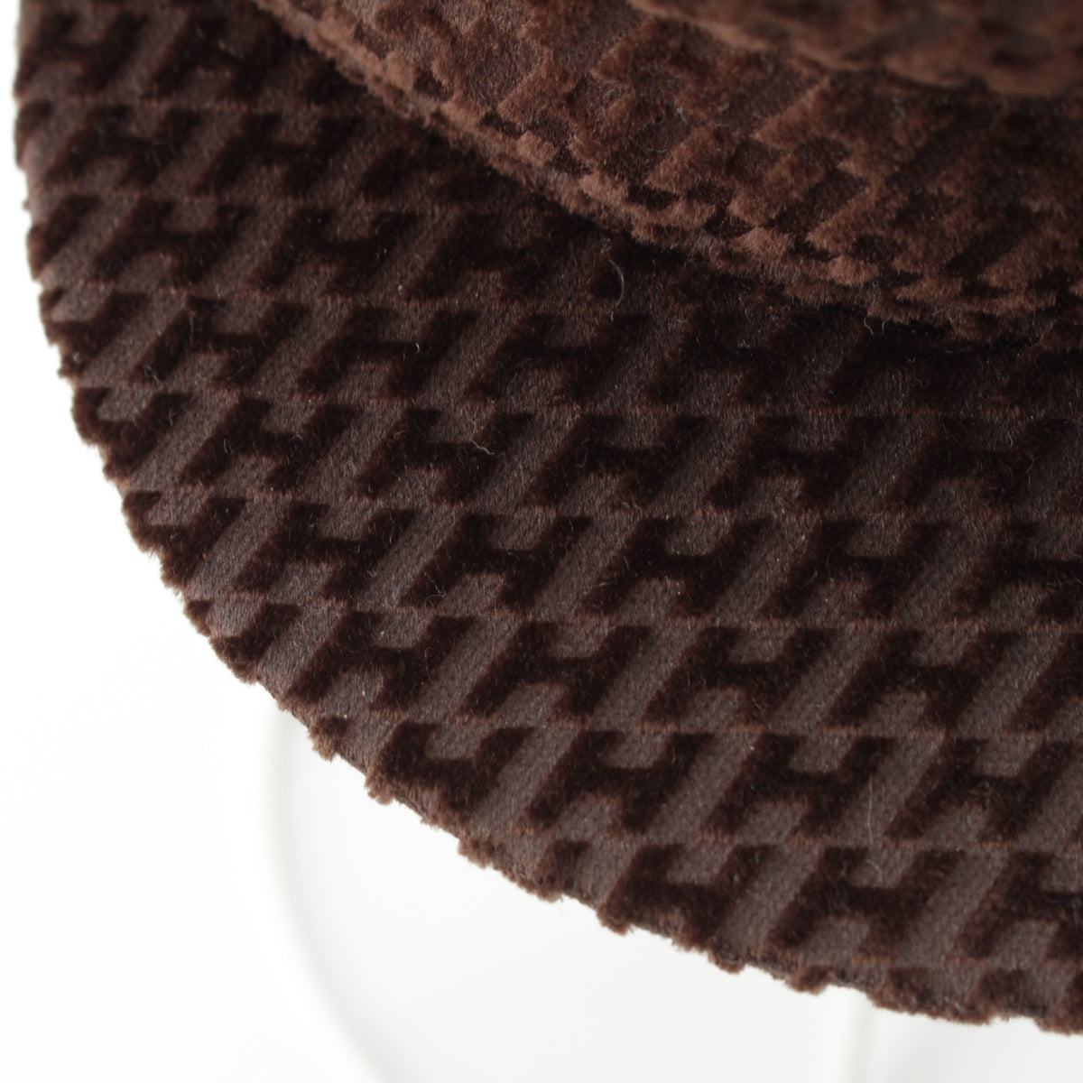 HERMES Cotton Velour H pattern Serie button Casquette Hat hat Brown 58