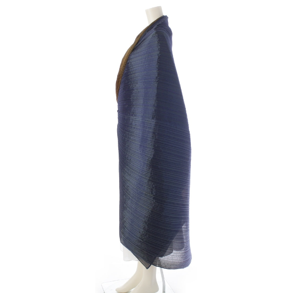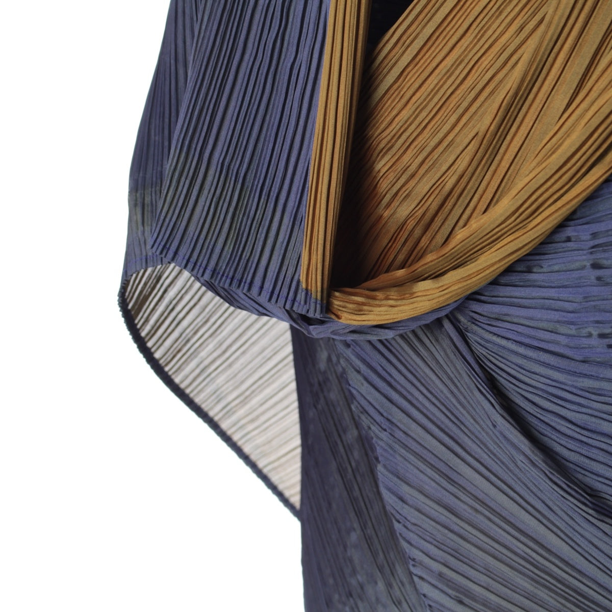 ISSEY MIYAKE polyester Deformation Stall Pleated Poncho Bicolor Navy Yellow Gradient Color
