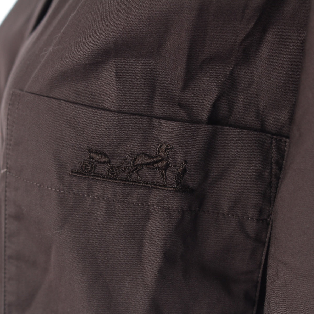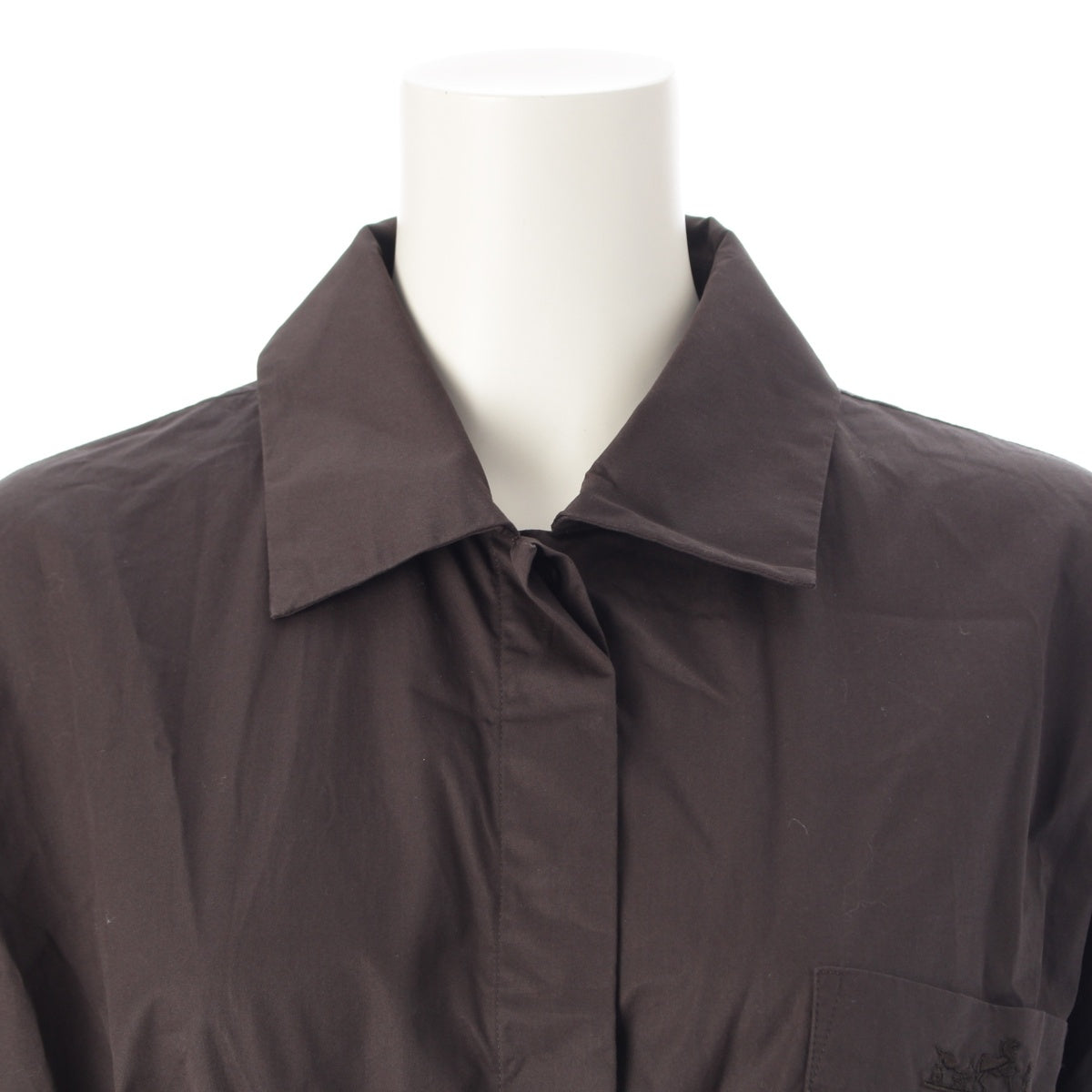 HERMES 23AW cotton Horse and carriage logo shirt one piece With belt Dark brown 40