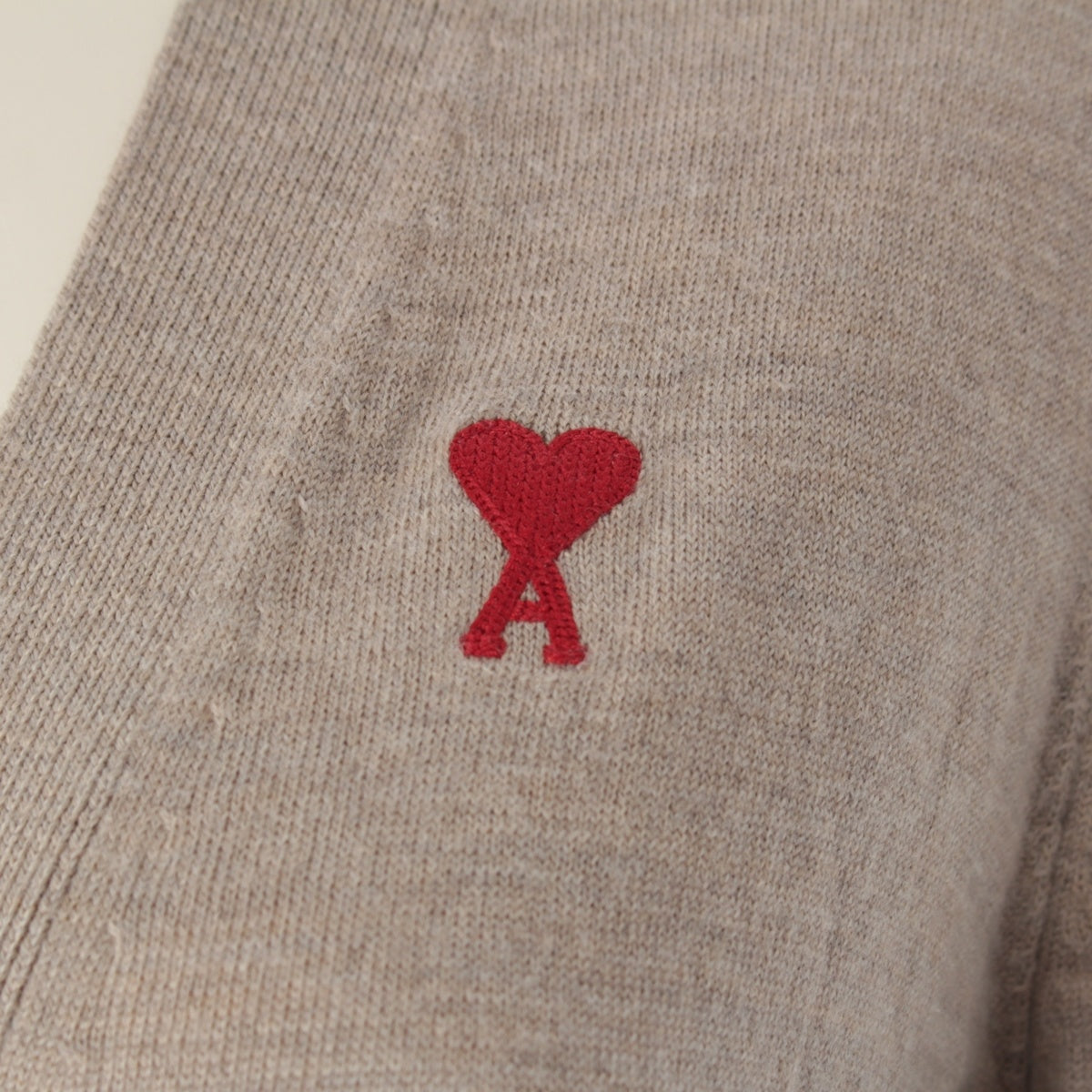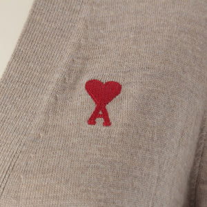 AMI PARIS wool Heart Knit cardigan tops FKC111.KN0025 beige XS