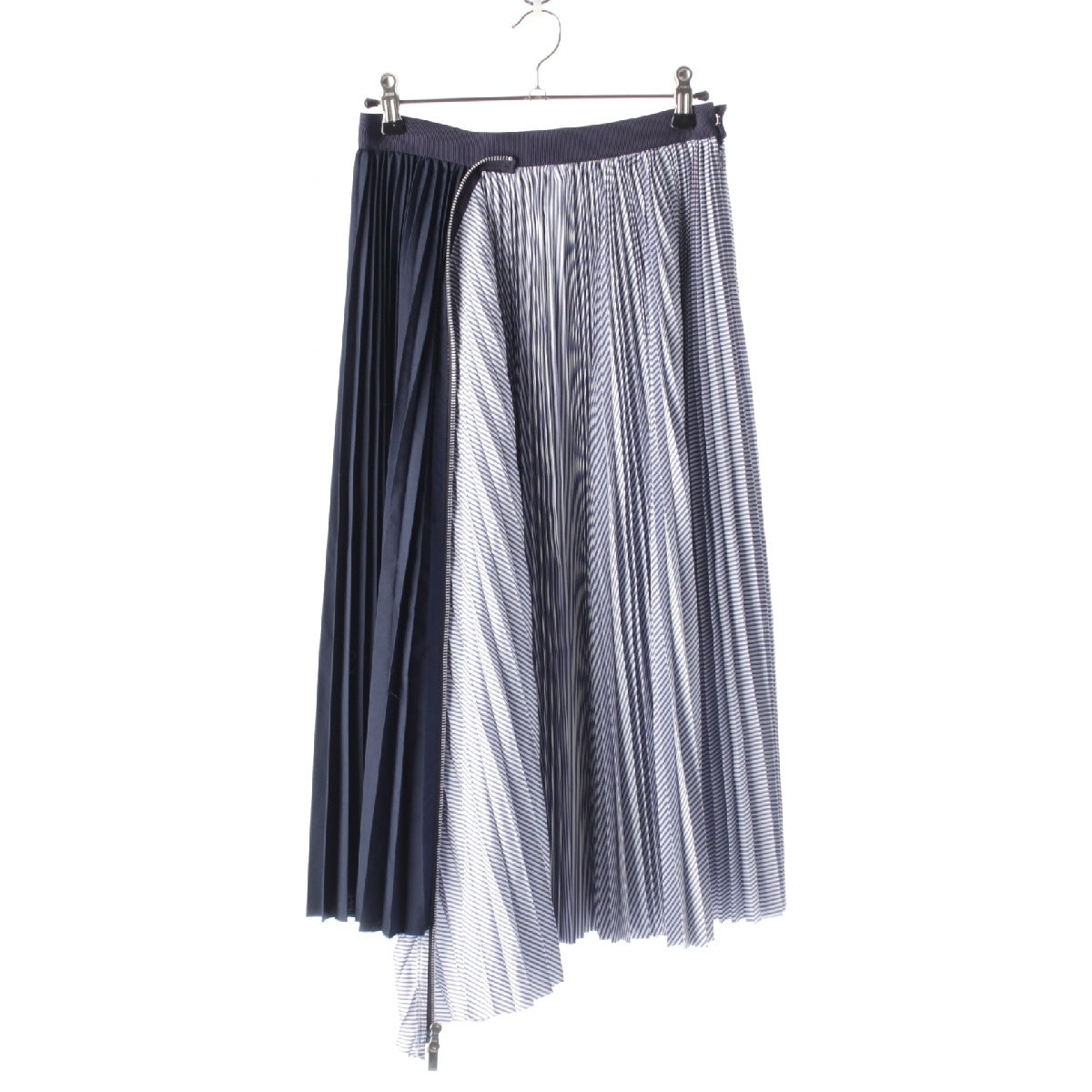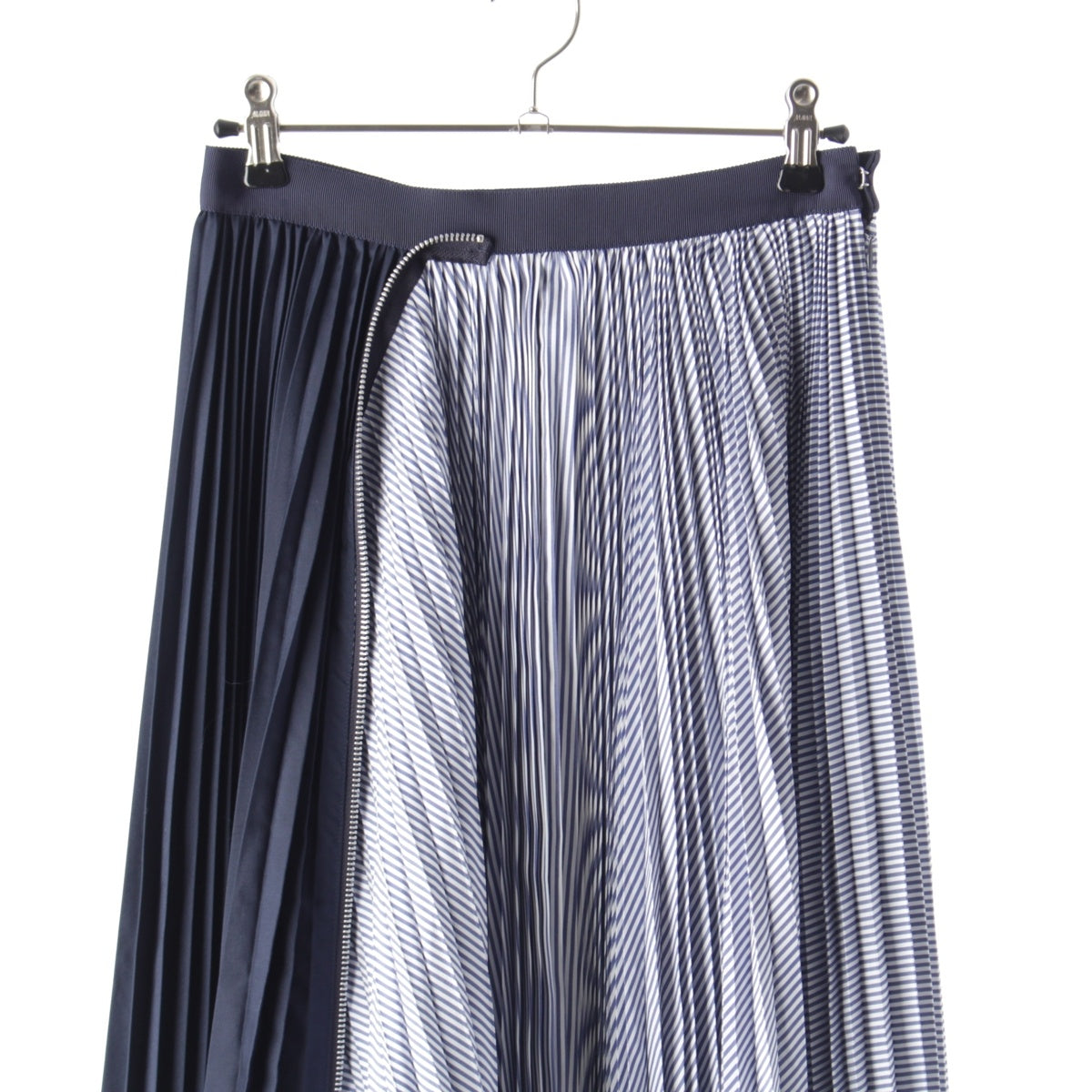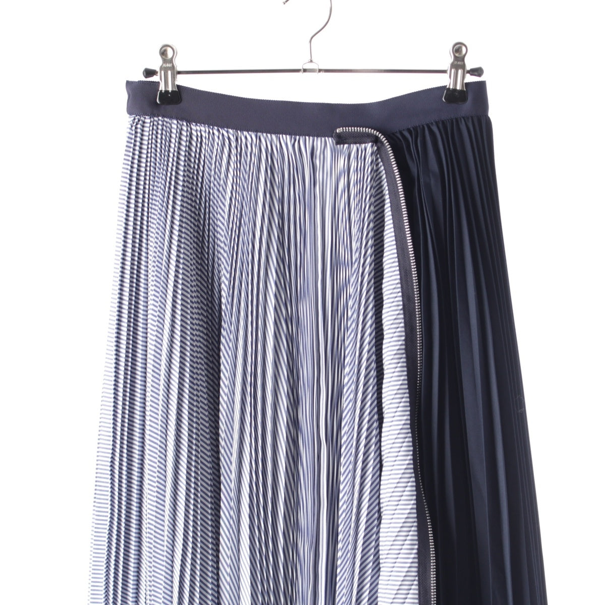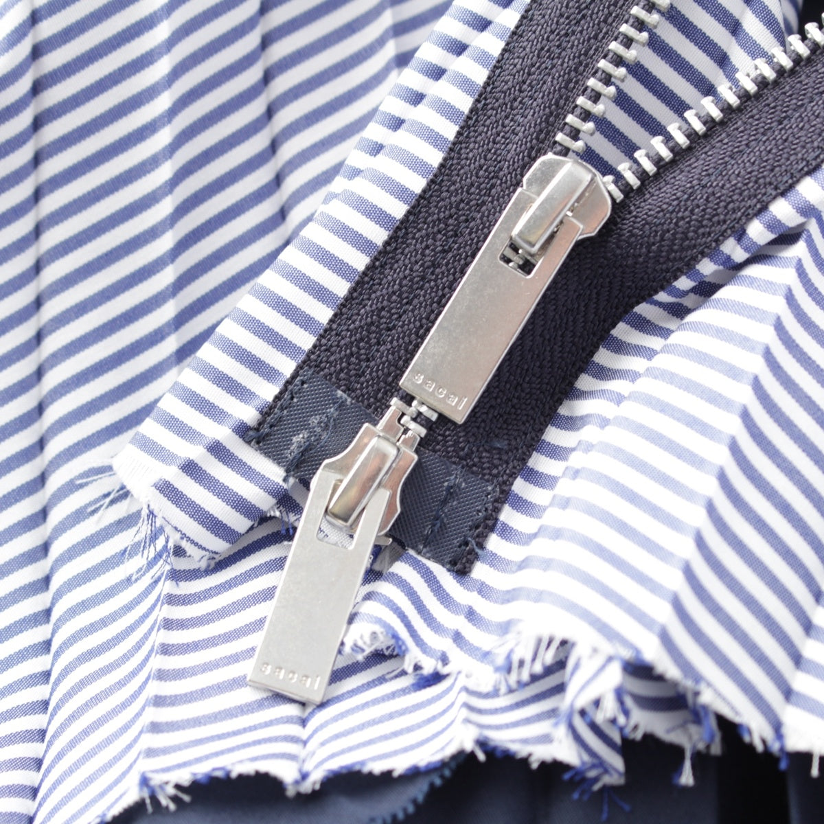 Sacai Cotton Poplin Zipper Skirt Pleated Stripe Zip Docking skirt Bottoms SCW-086 blue 0