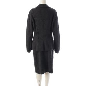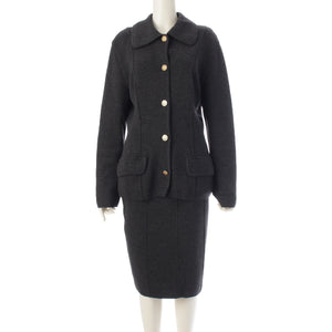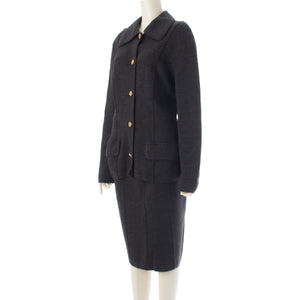 CELINE wool vintage knit 3 piece Setup Jacket Skirt Tops gray 42