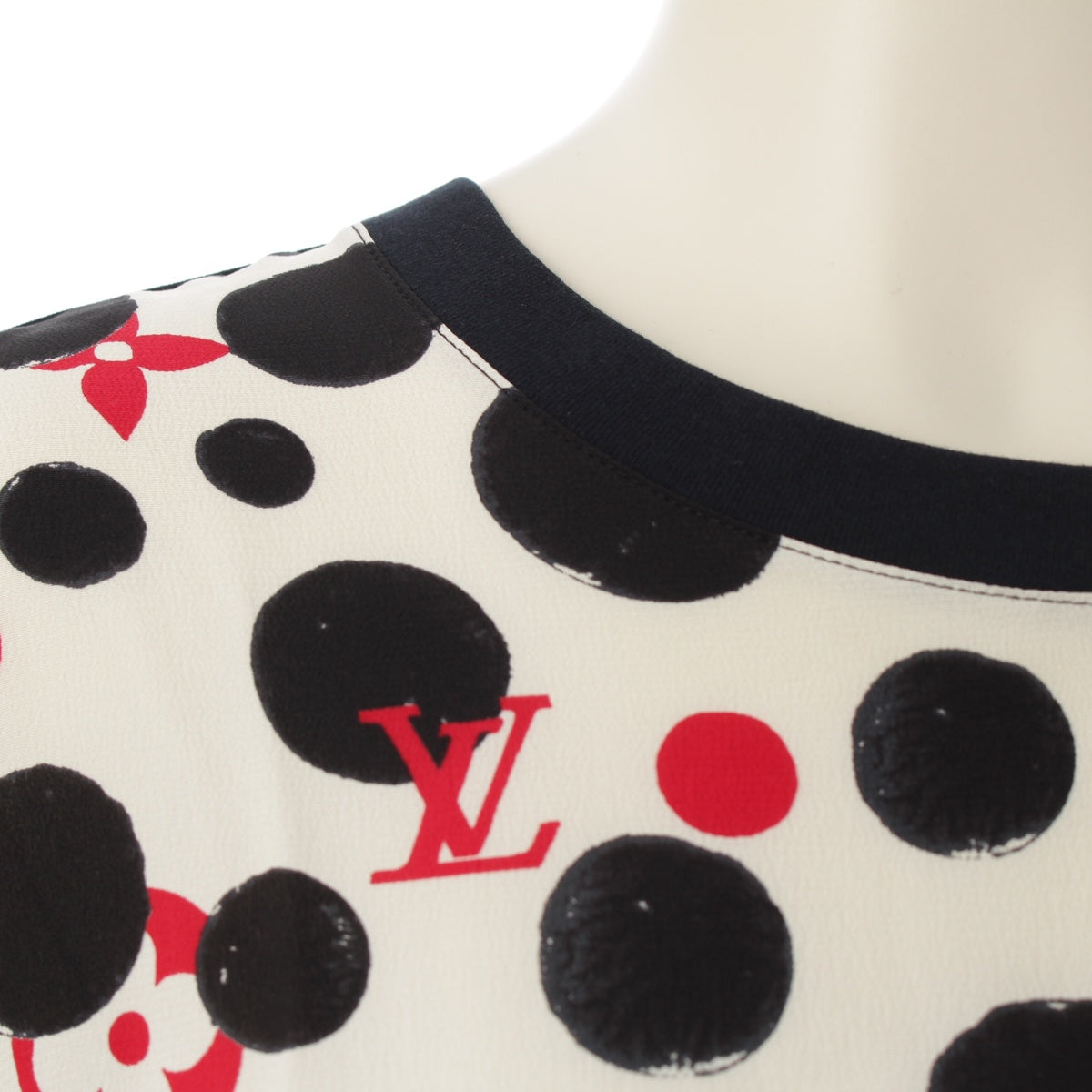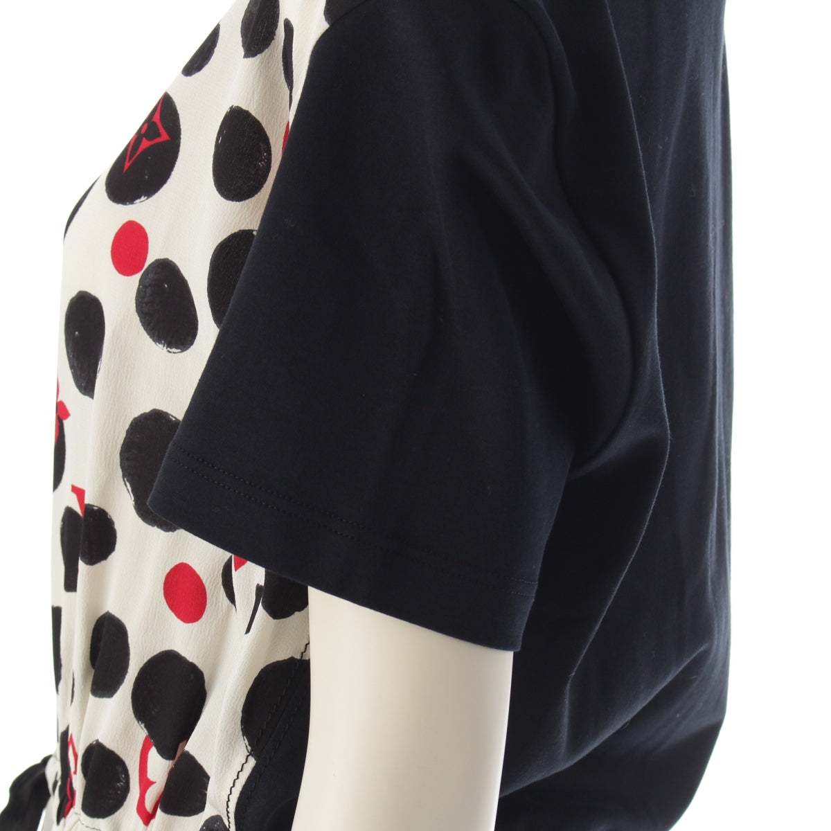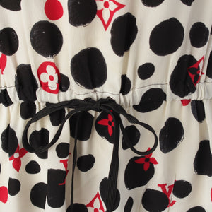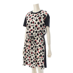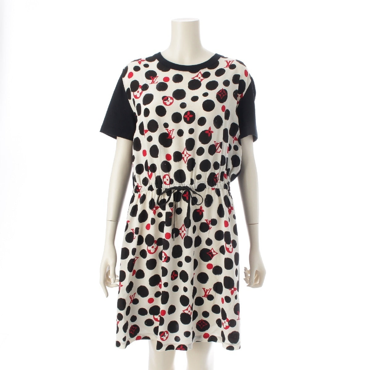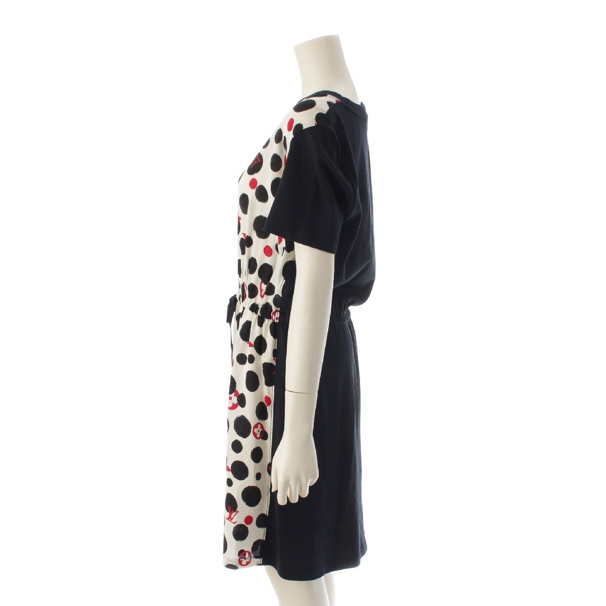 LOUIS VUITTON 17 years Cotton x silk Dot Monogram Ribbon one piece dress RW171B AQG FBDS7B Black x white L