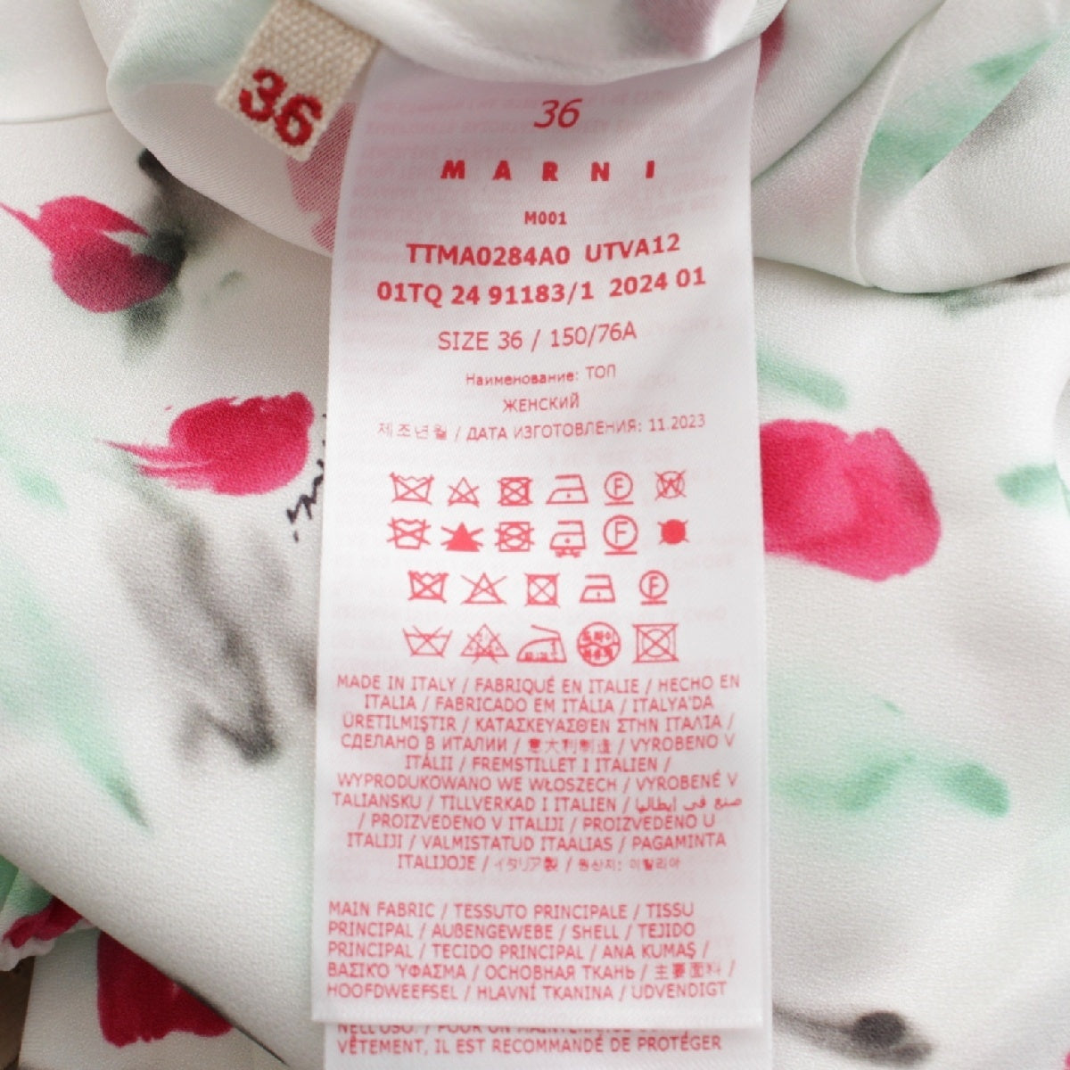 MARNI 24Stainless Steel Asymmetrical Flower Print Ribbon Cut tops TTMA0284A0 white 36