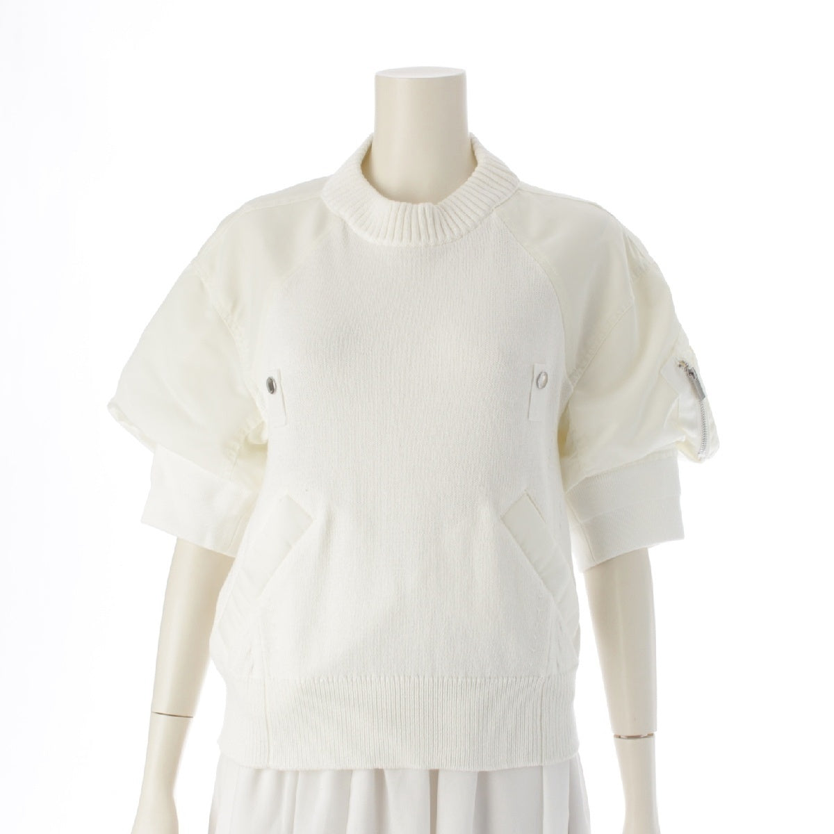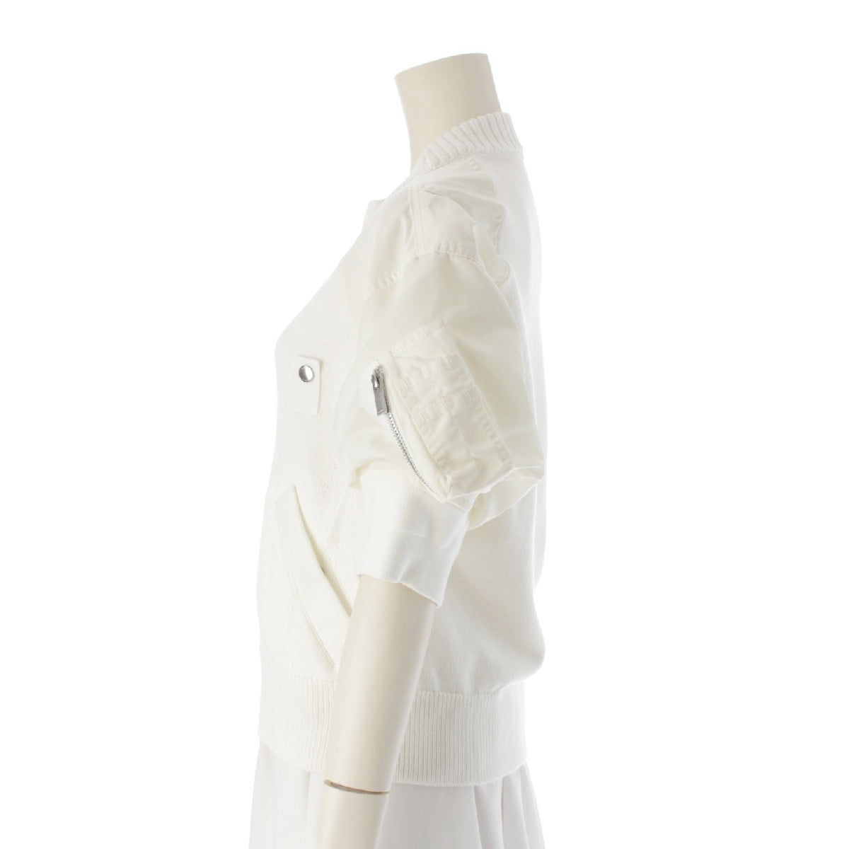 Sacai 24 years Docking Puff Sleeve Short Sleeve knit tops MA-1 24-07087 white 1