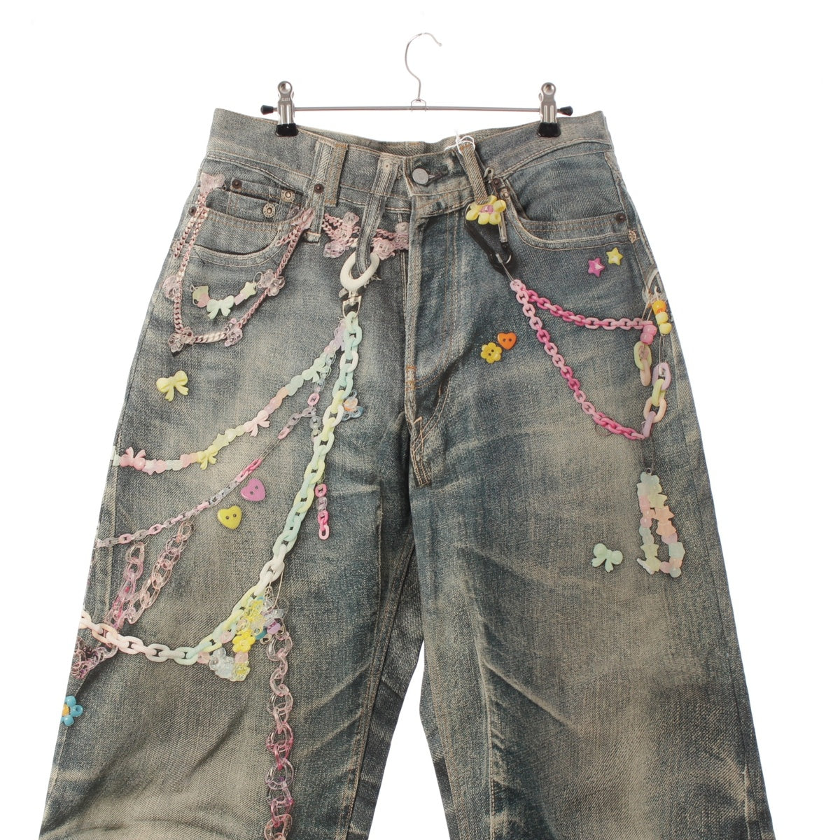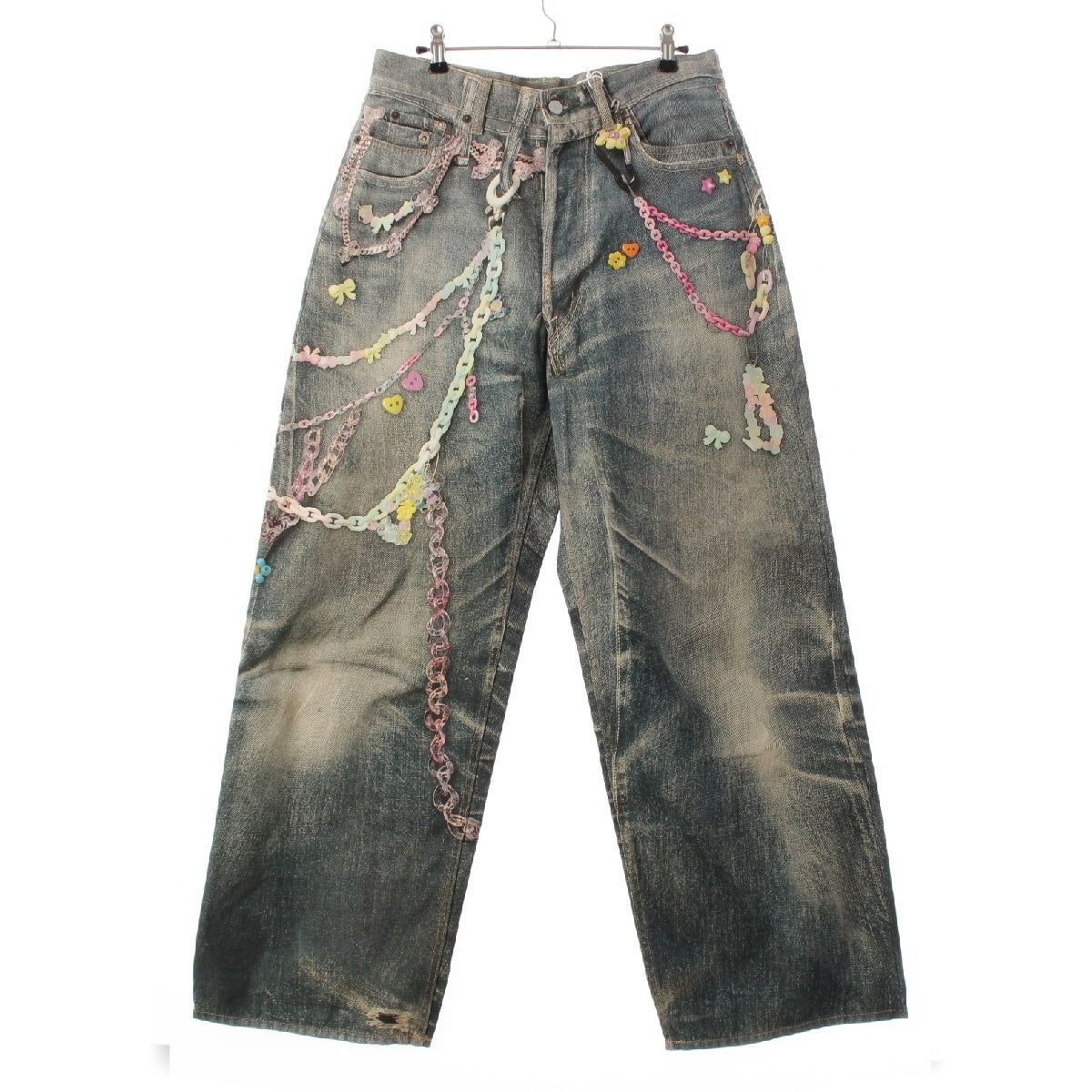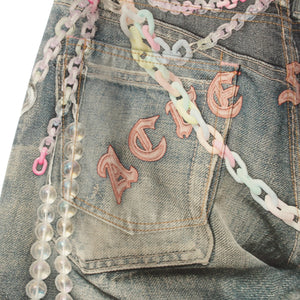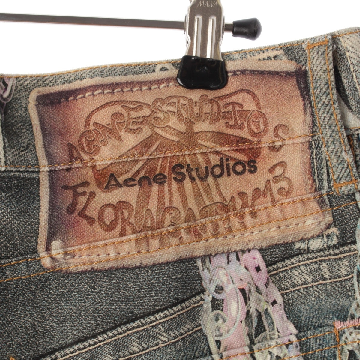 ACNE STUDIOS 25Stainless Steel 1981M Print Transfer Wide Buggy Denim pants Logo Jeans FN-MN-TROU001101 Indigo 46
