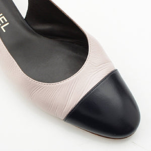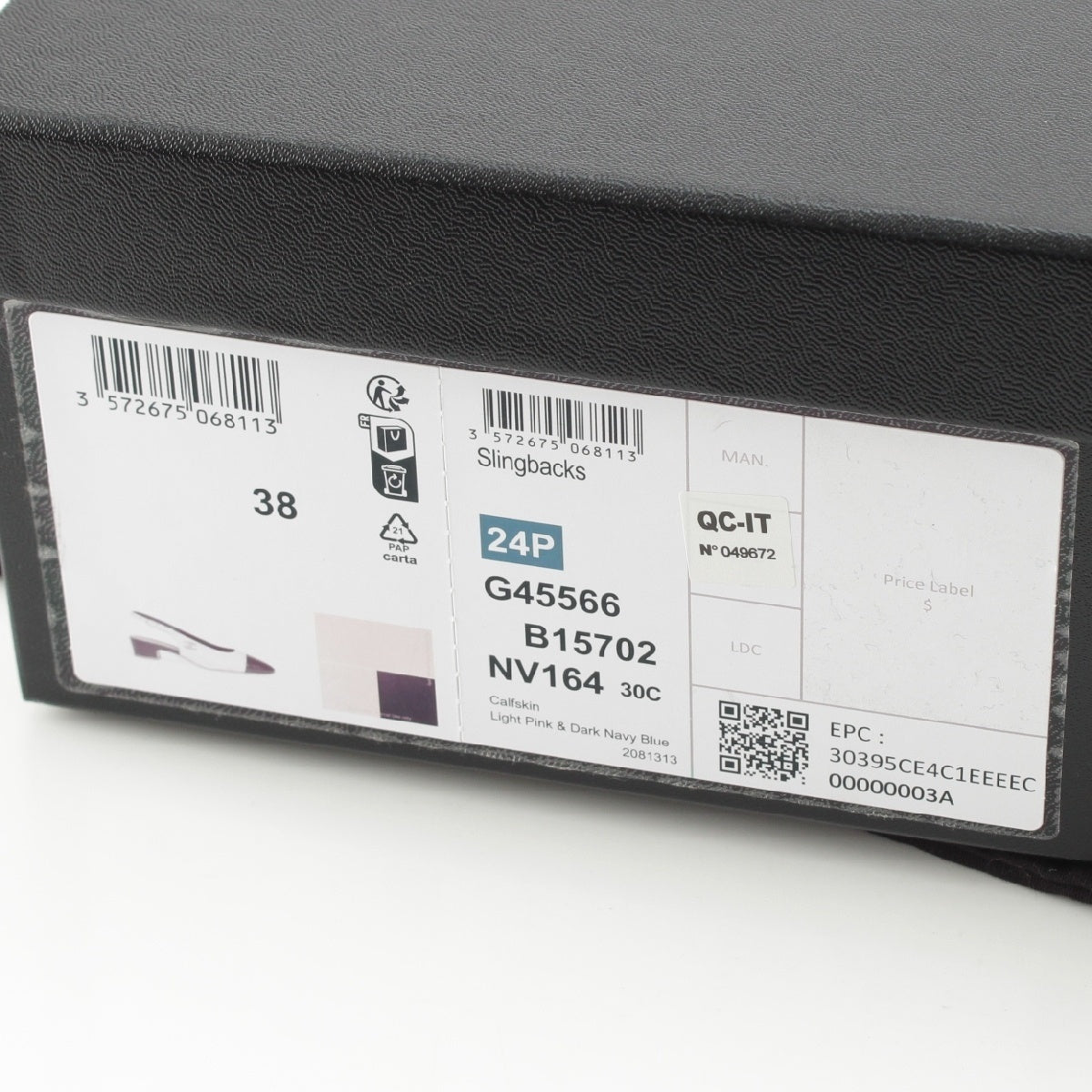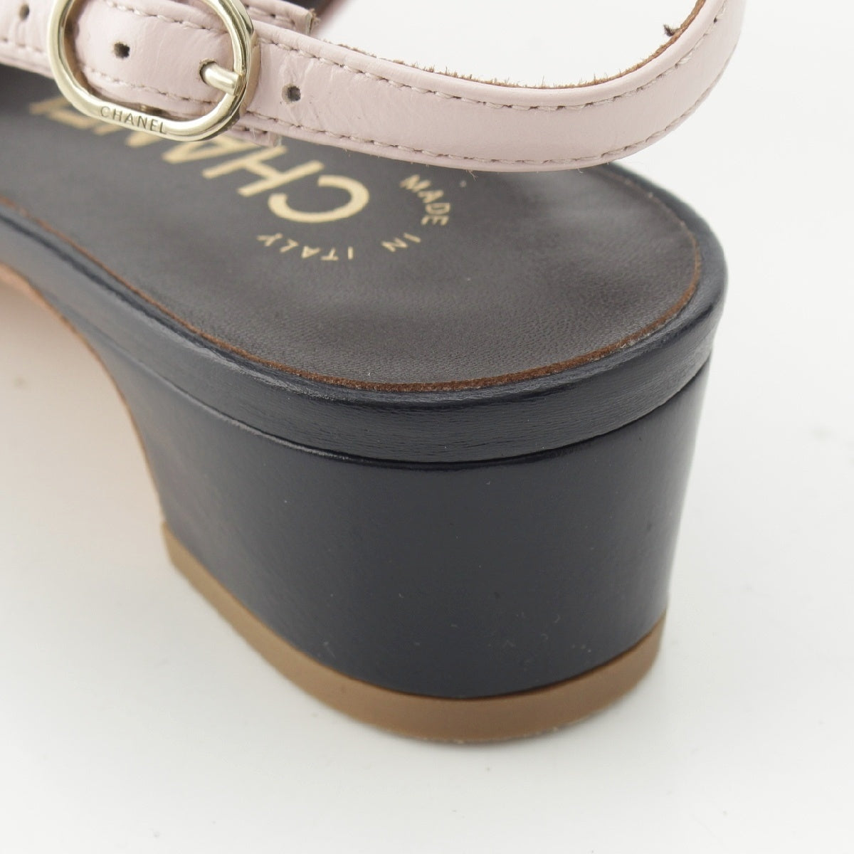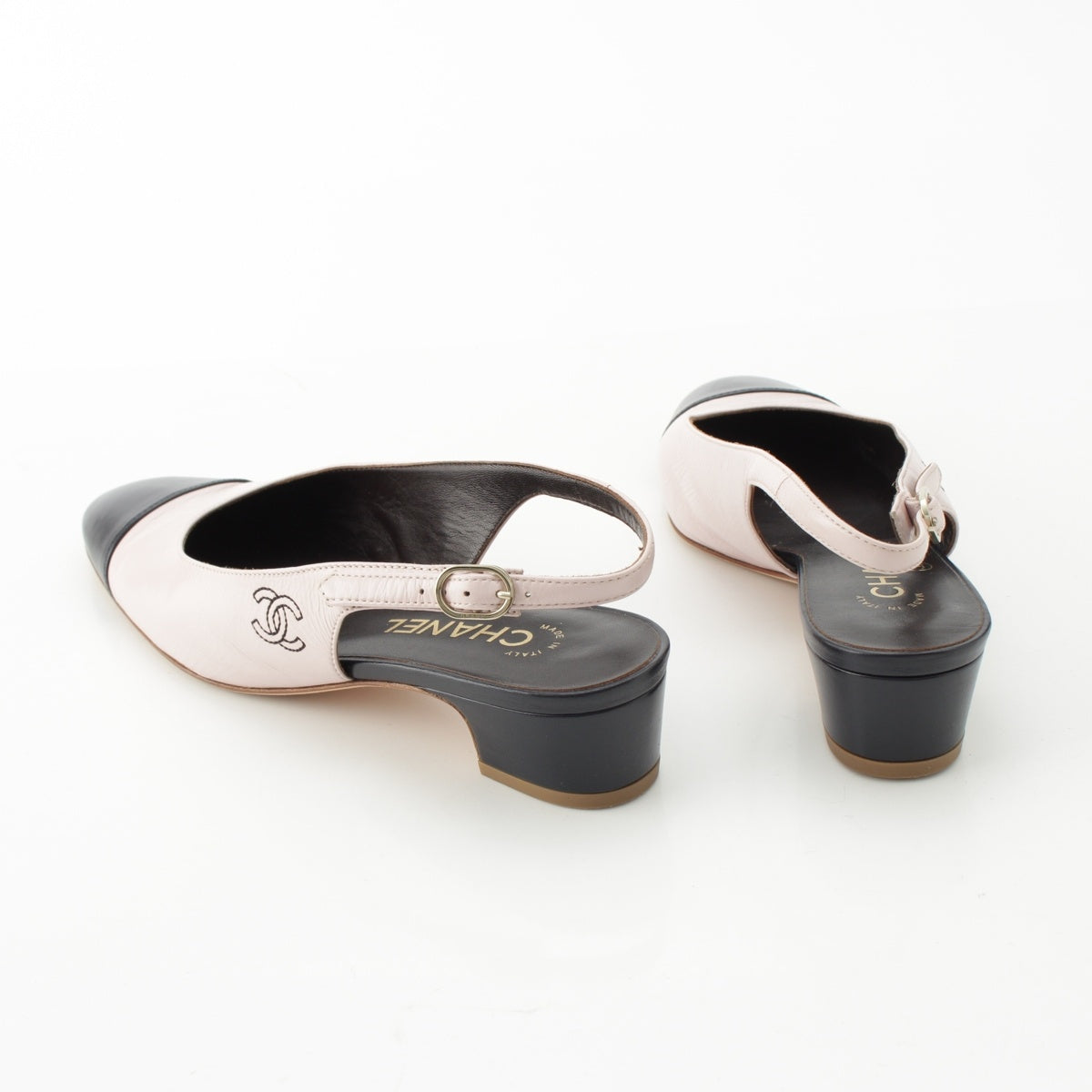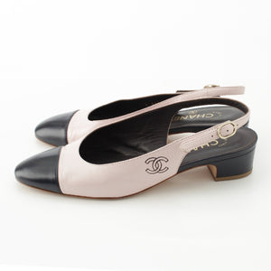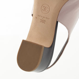 CHANEL Calfskin COCO Mark Stitch Slingback pumps Sandals shoes G45566 Bicolor Pink Dark Navy 38