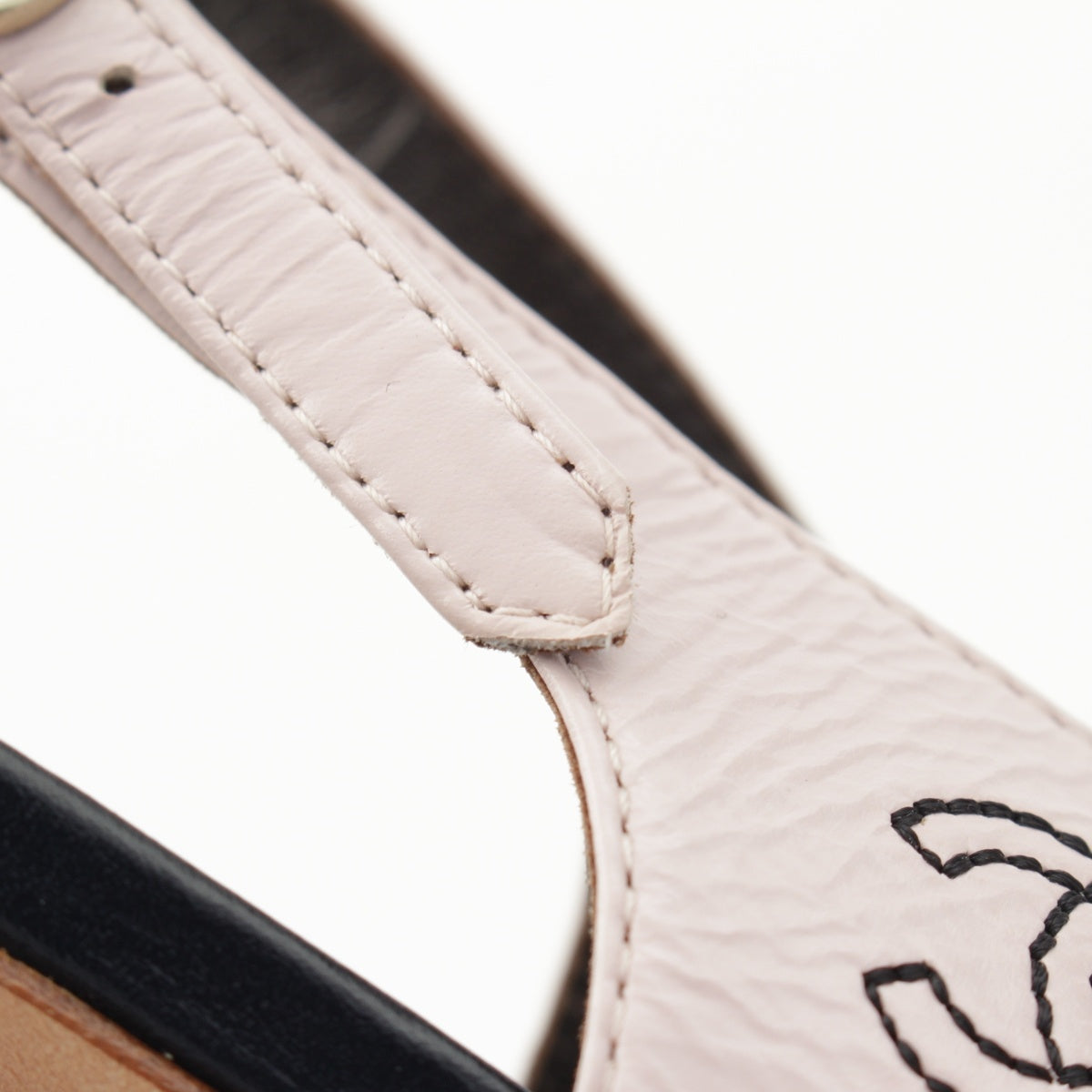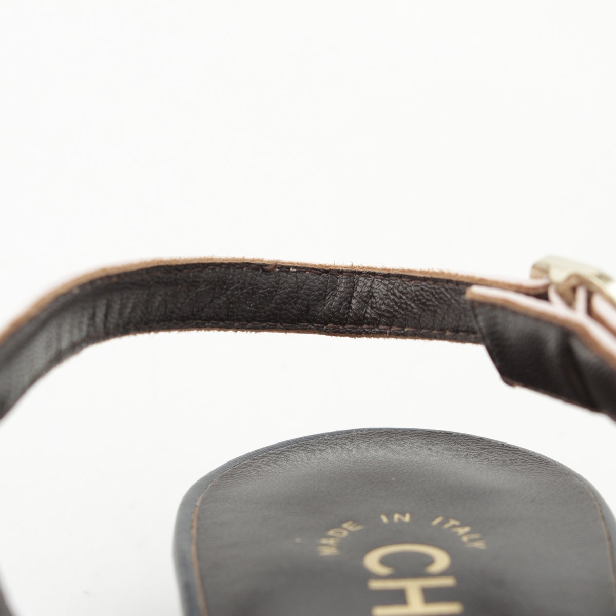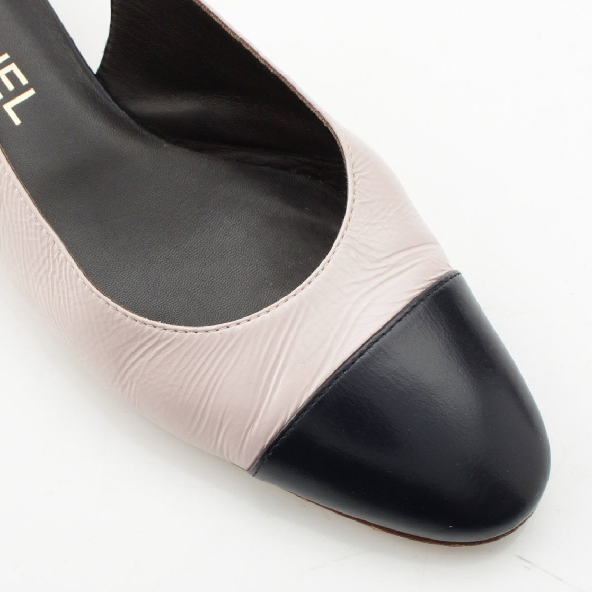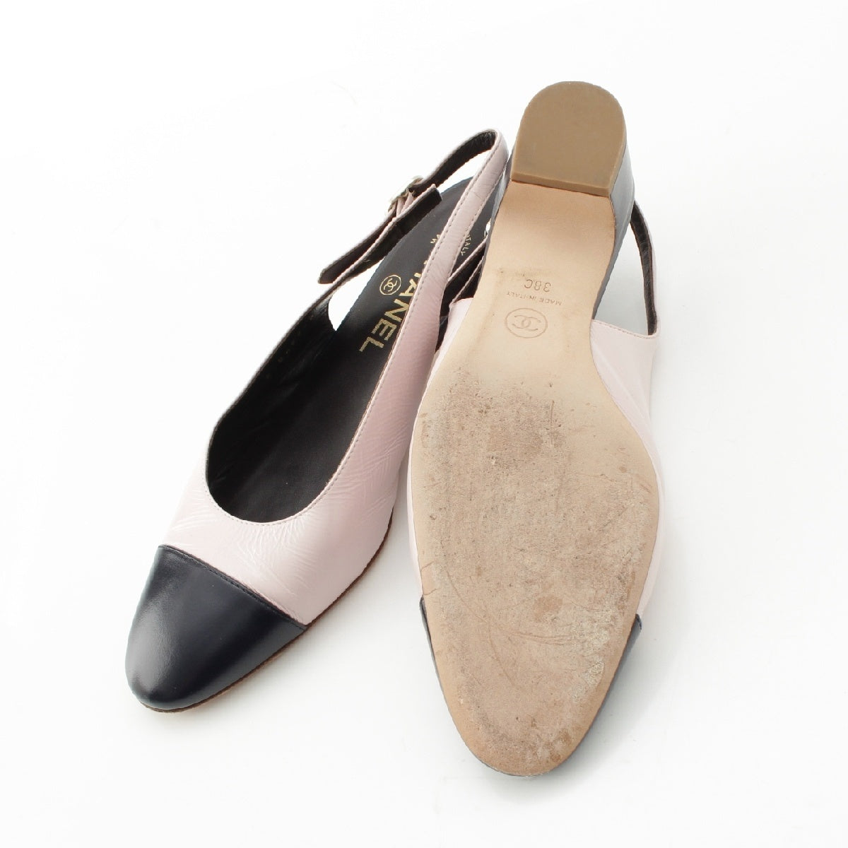 CHANEL Calfskin COCO Mark Stitch Slingback pumps Sandals shoes G45566 Bicolor Pink Dark Navy 38