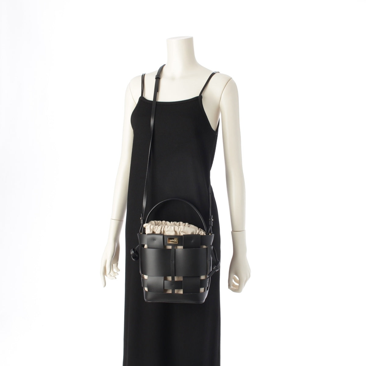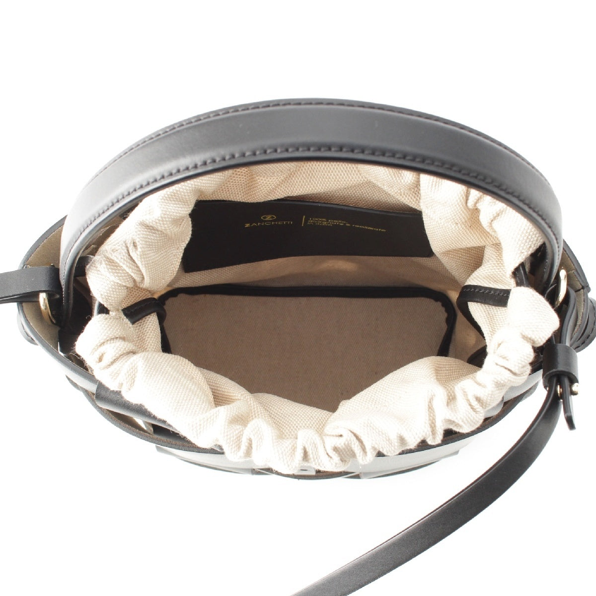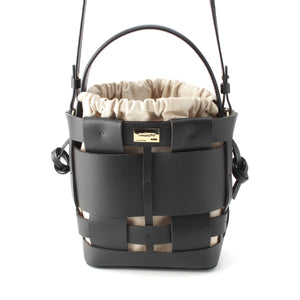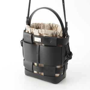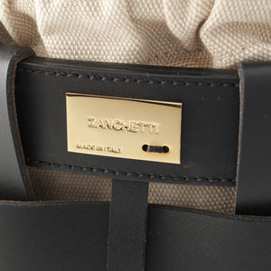 ZANCHETTI Woven basket leather 2way Shoulder Shopper Handbag black