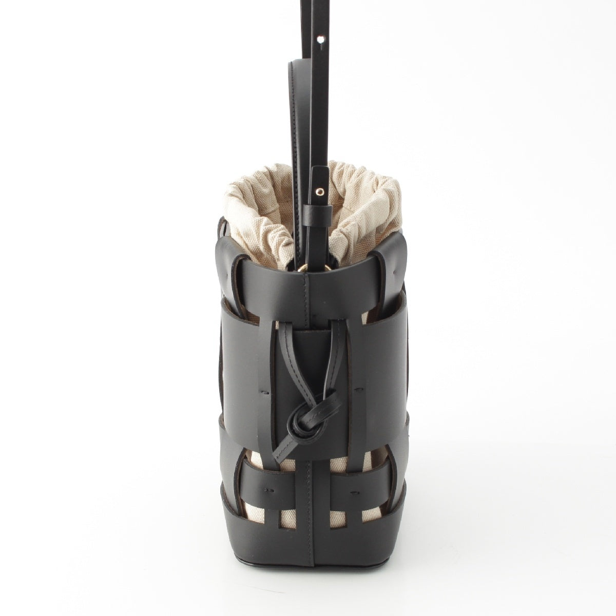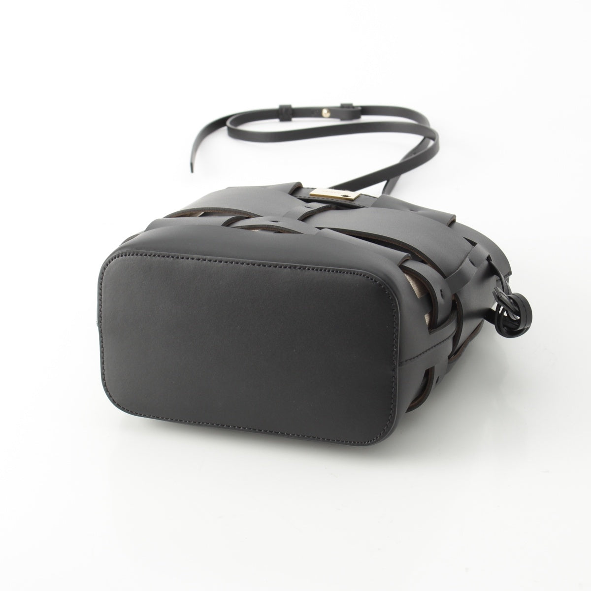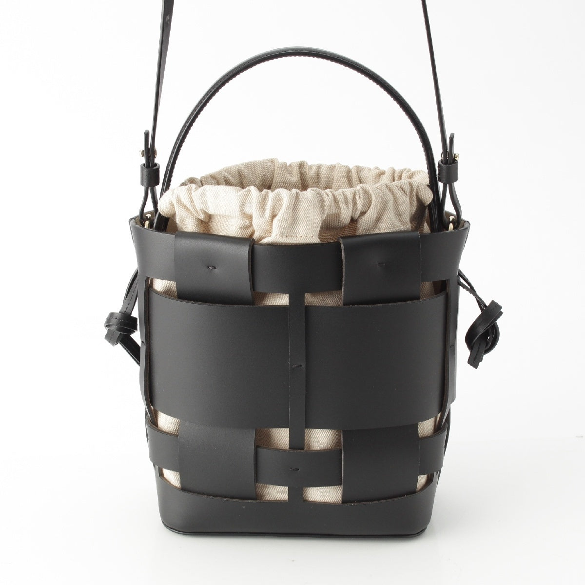 ZANCHETTI Woven basket leather 2way Shoulder Shopper Handbag black