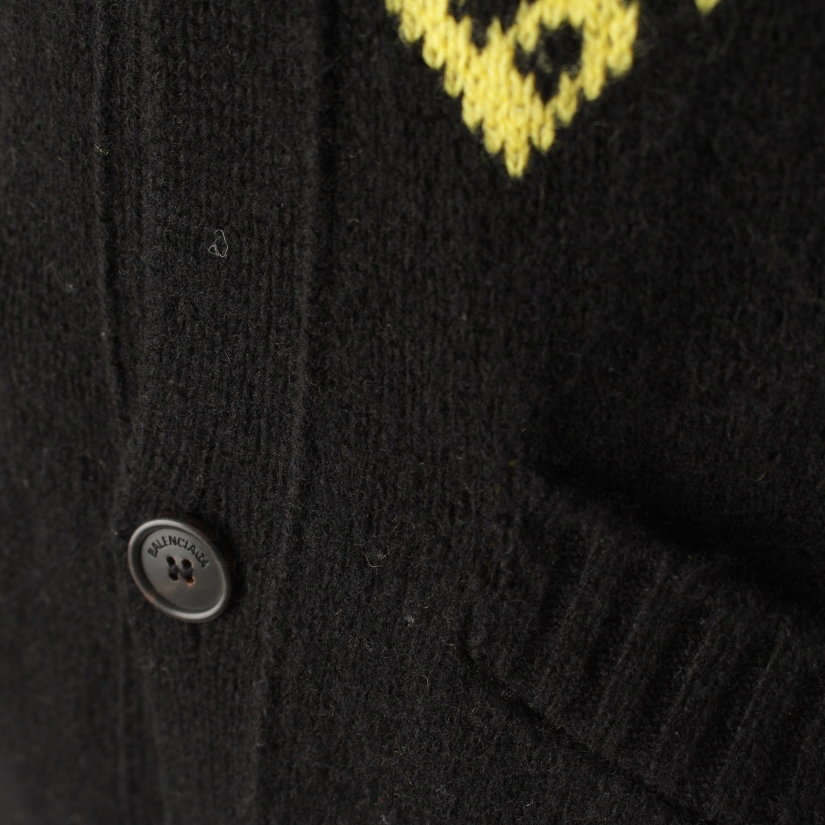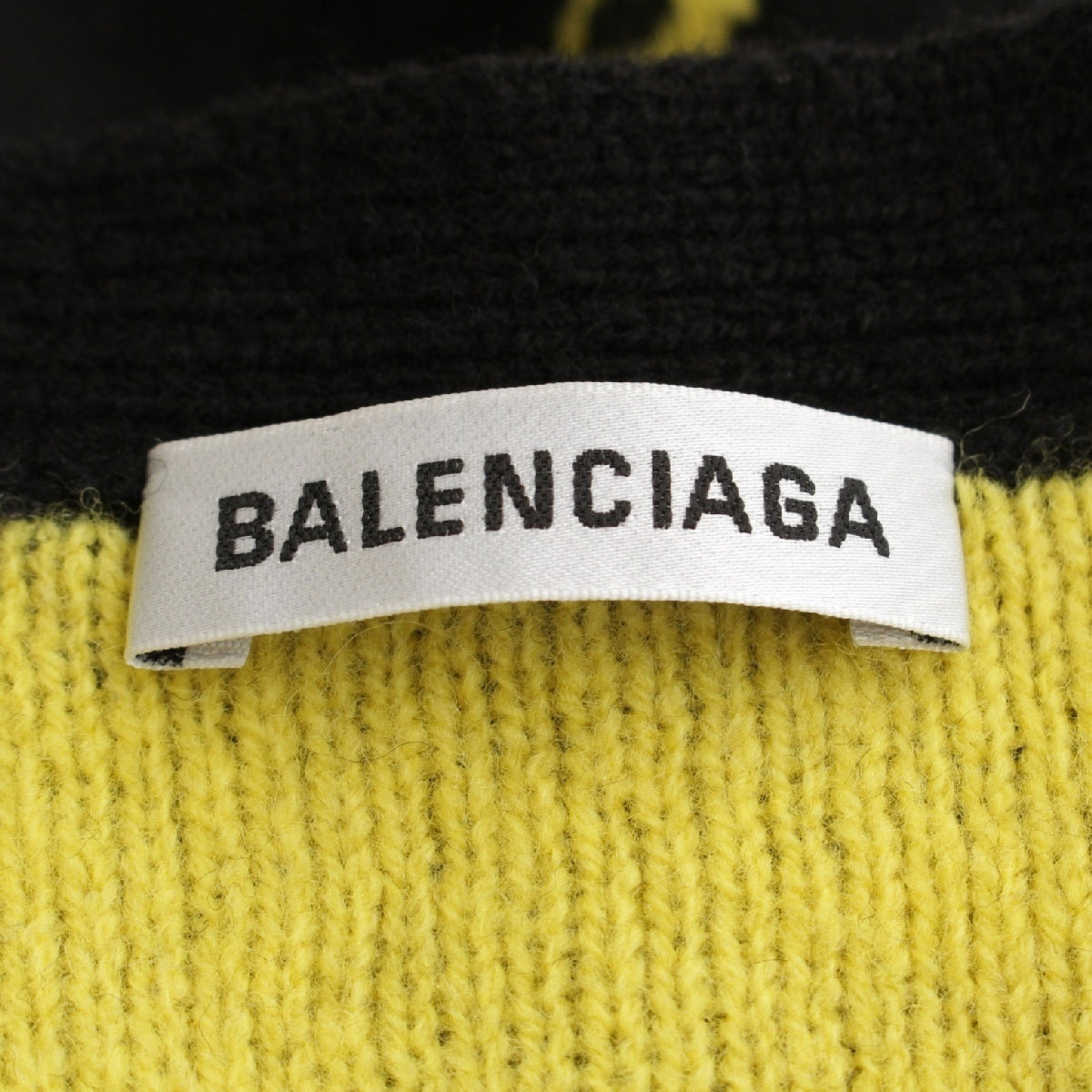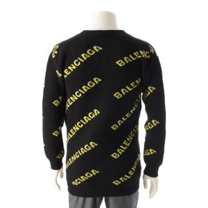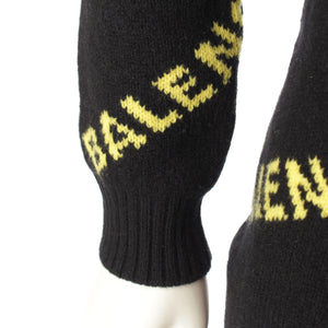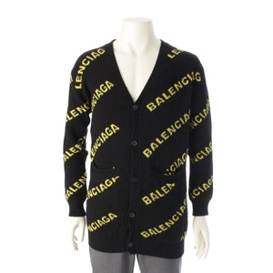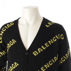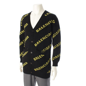 BALENCIAGA wool Logo Long Sleeve Knit cardigan Sweater tops Black yellow XS