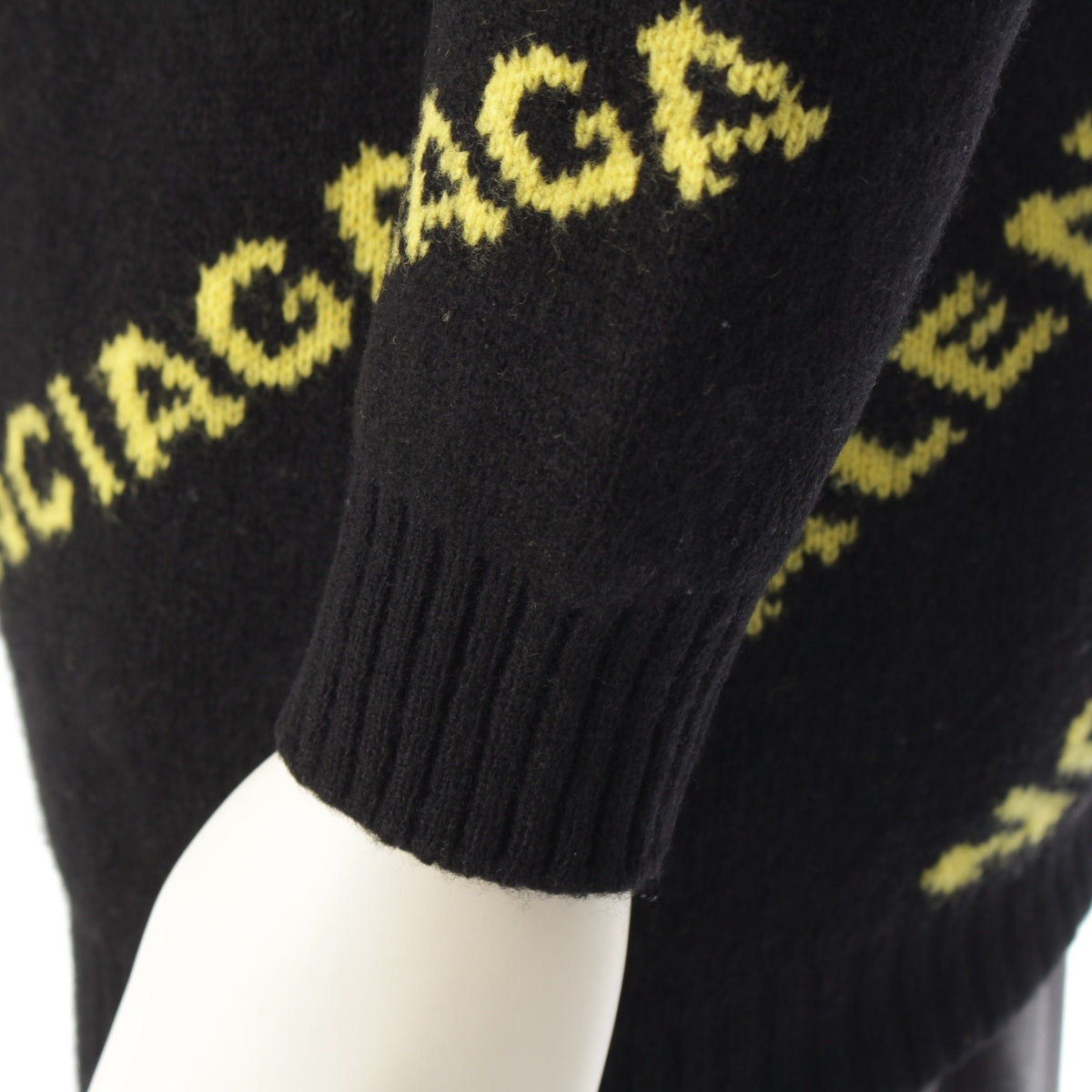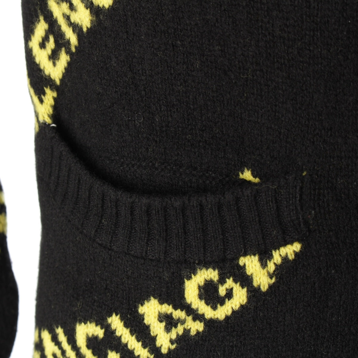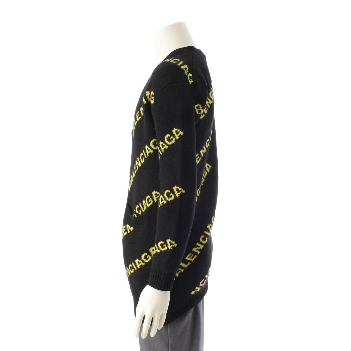 BALENCIAGA wool Logo Long Sleeve Knit cardigan Sweater tops Black yellow XS