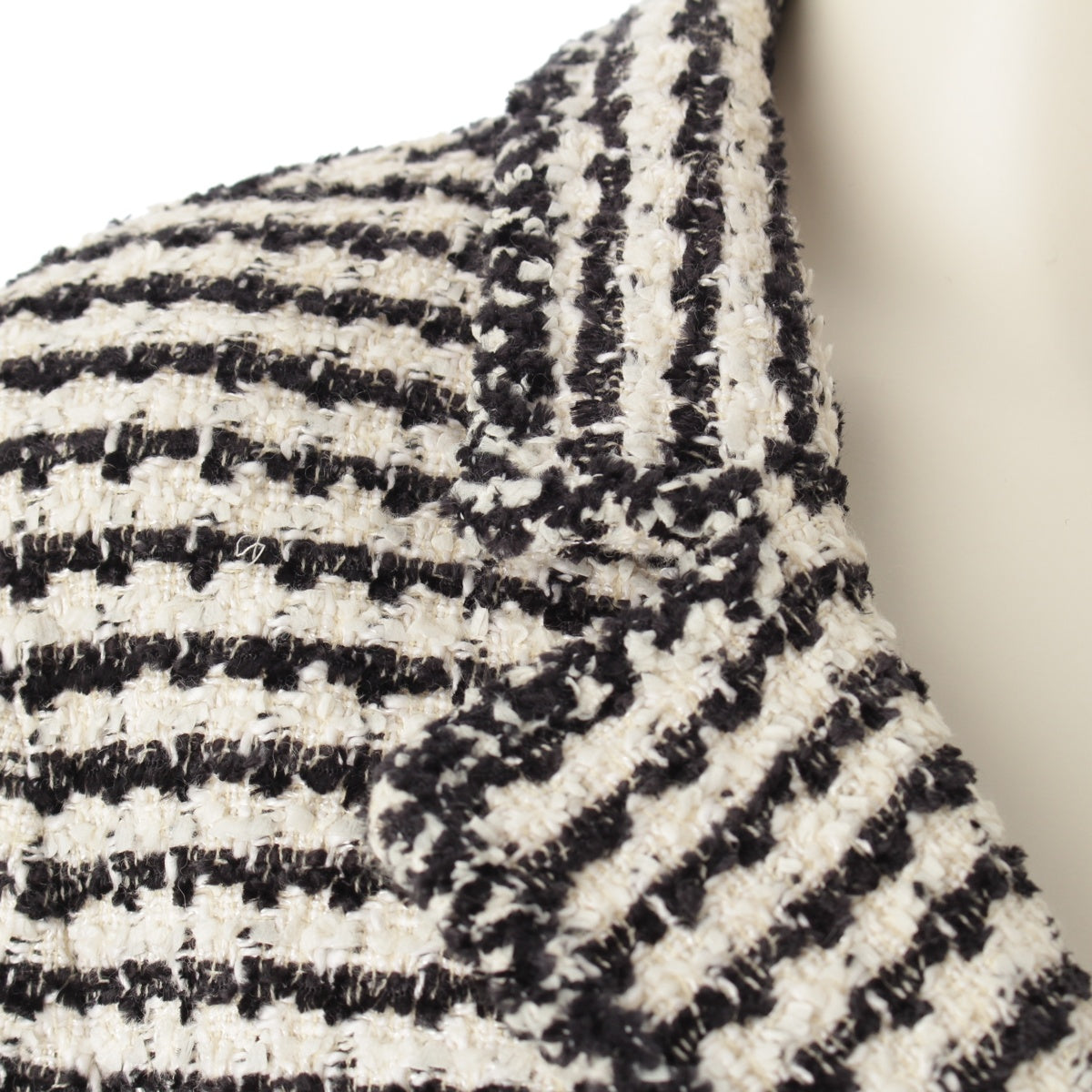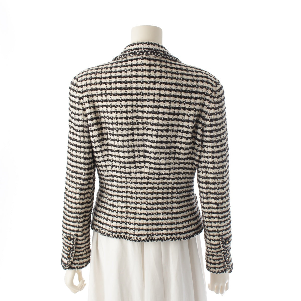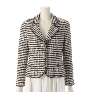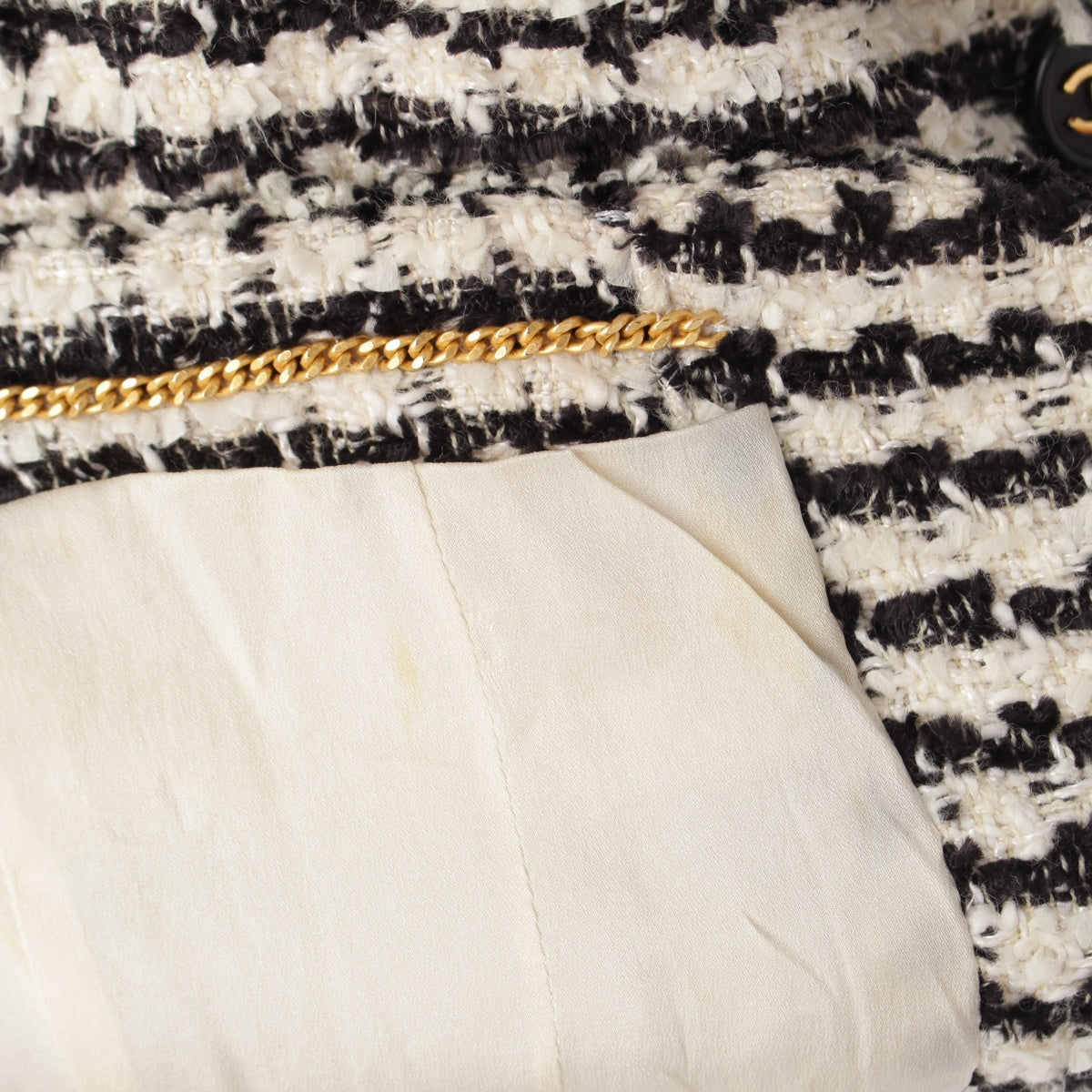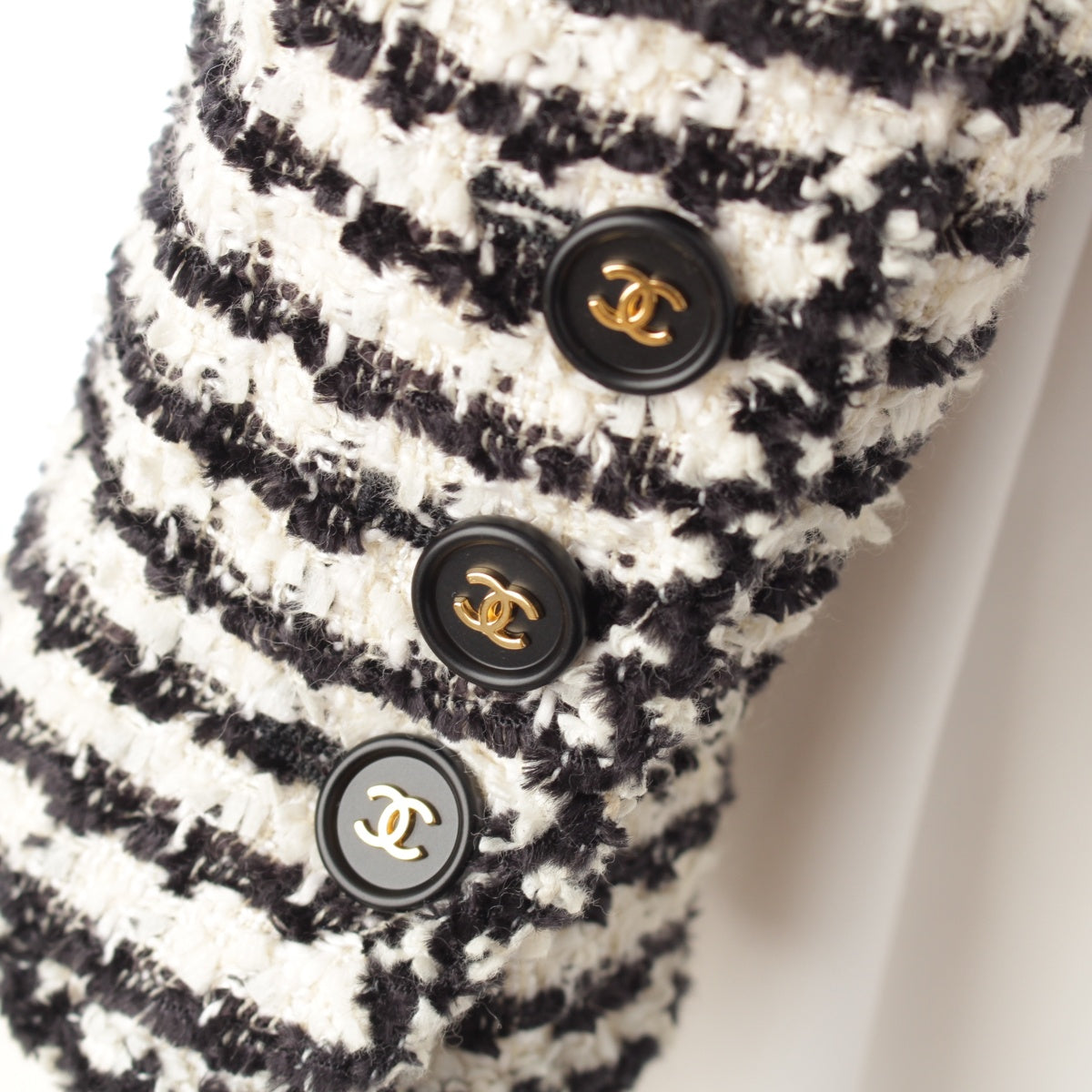 CHANEL 97P Cotton Tweed COCO Mark Button Check Short tailored jacket tops P07662 White x black 42