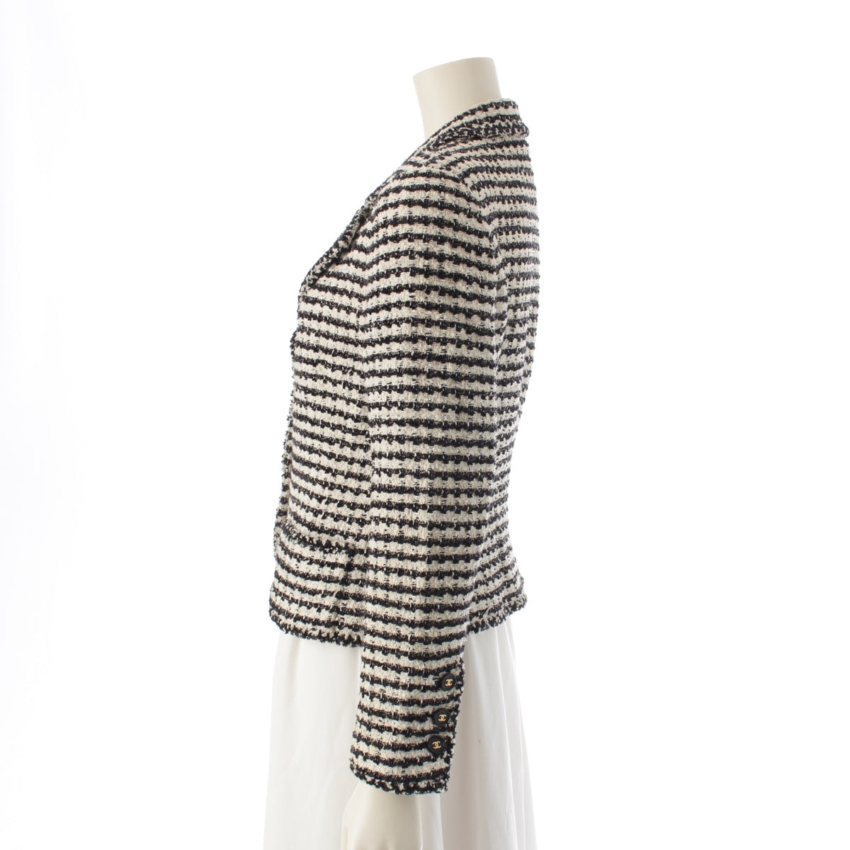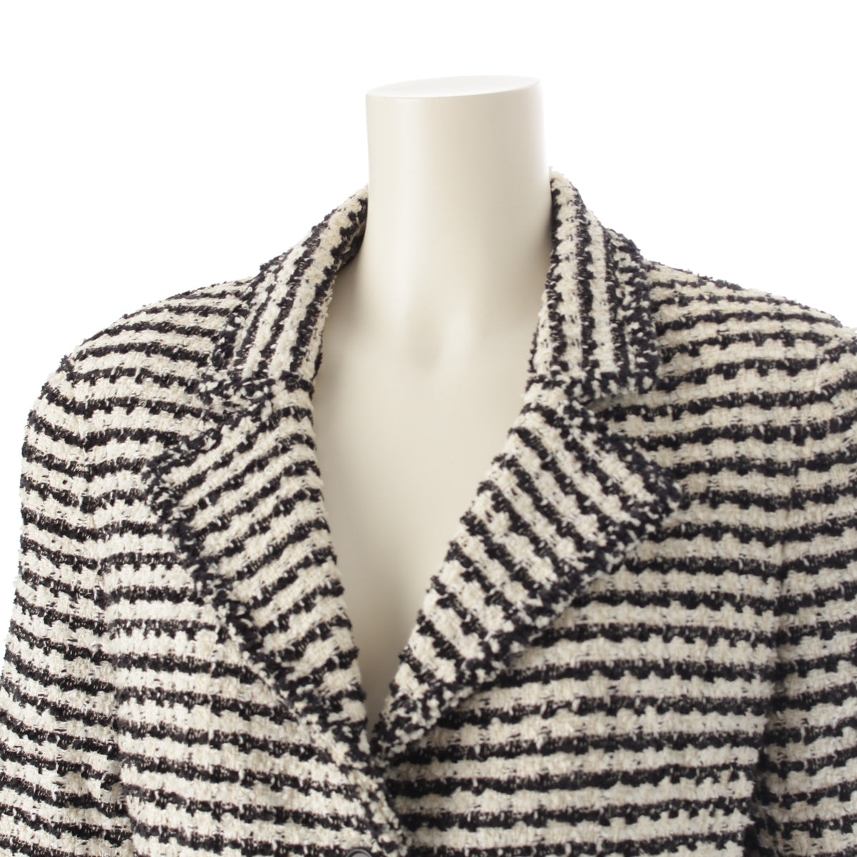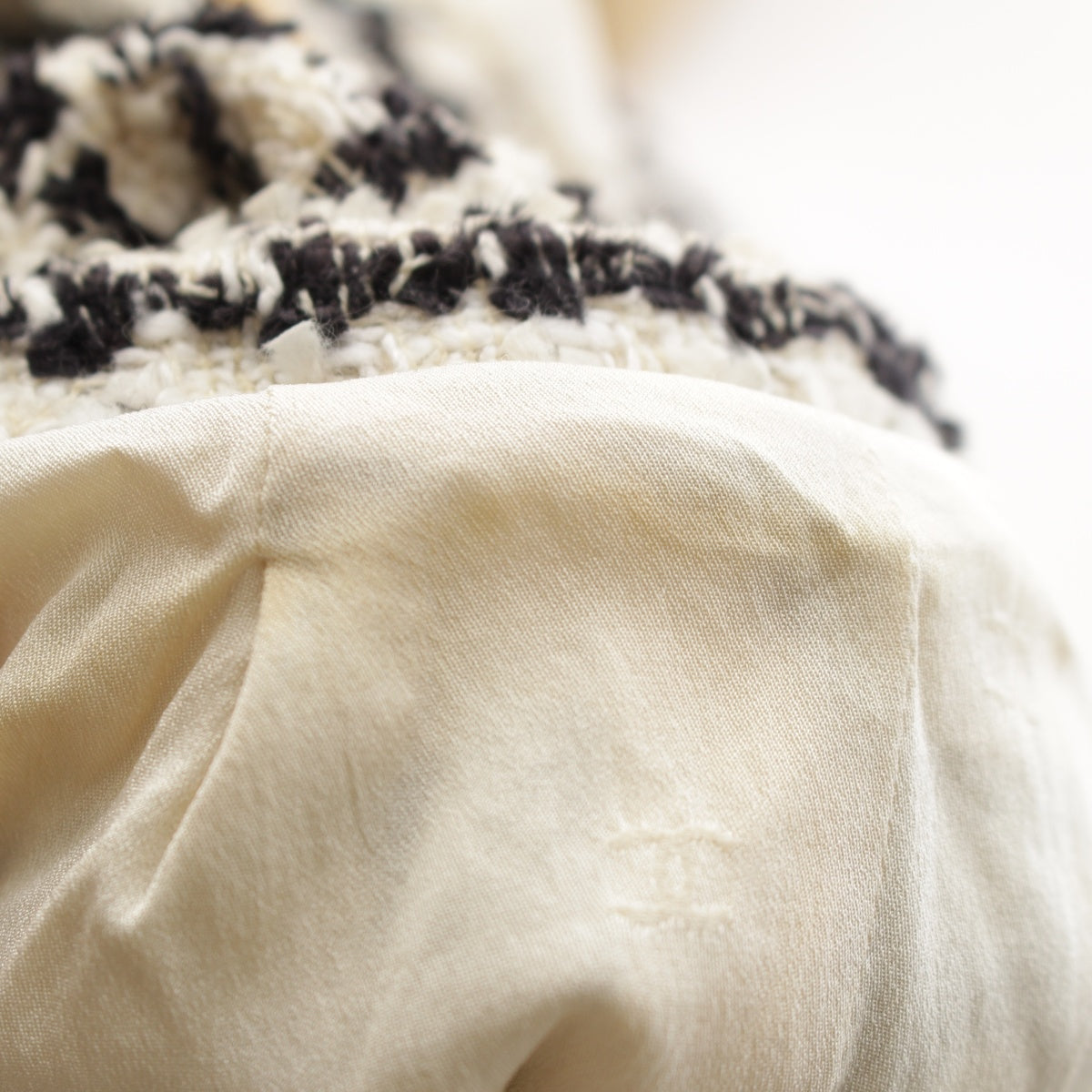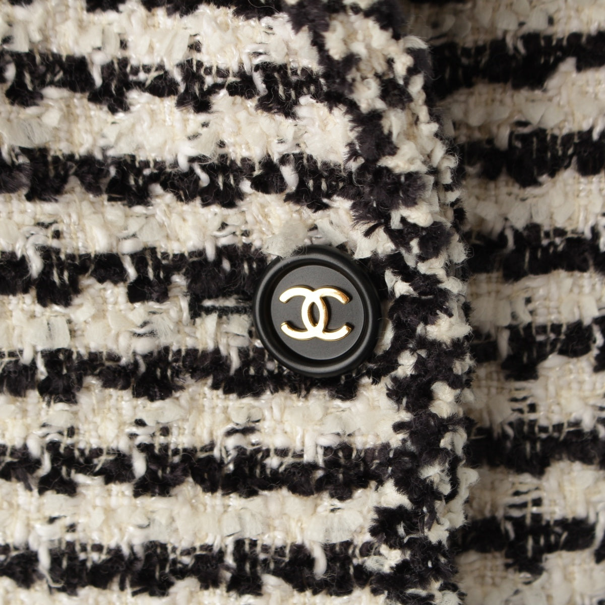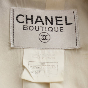 CHANEL 97P Cotton Tweed COCO Mark Button Check Short tailored jacket tops P07662 White x black 42