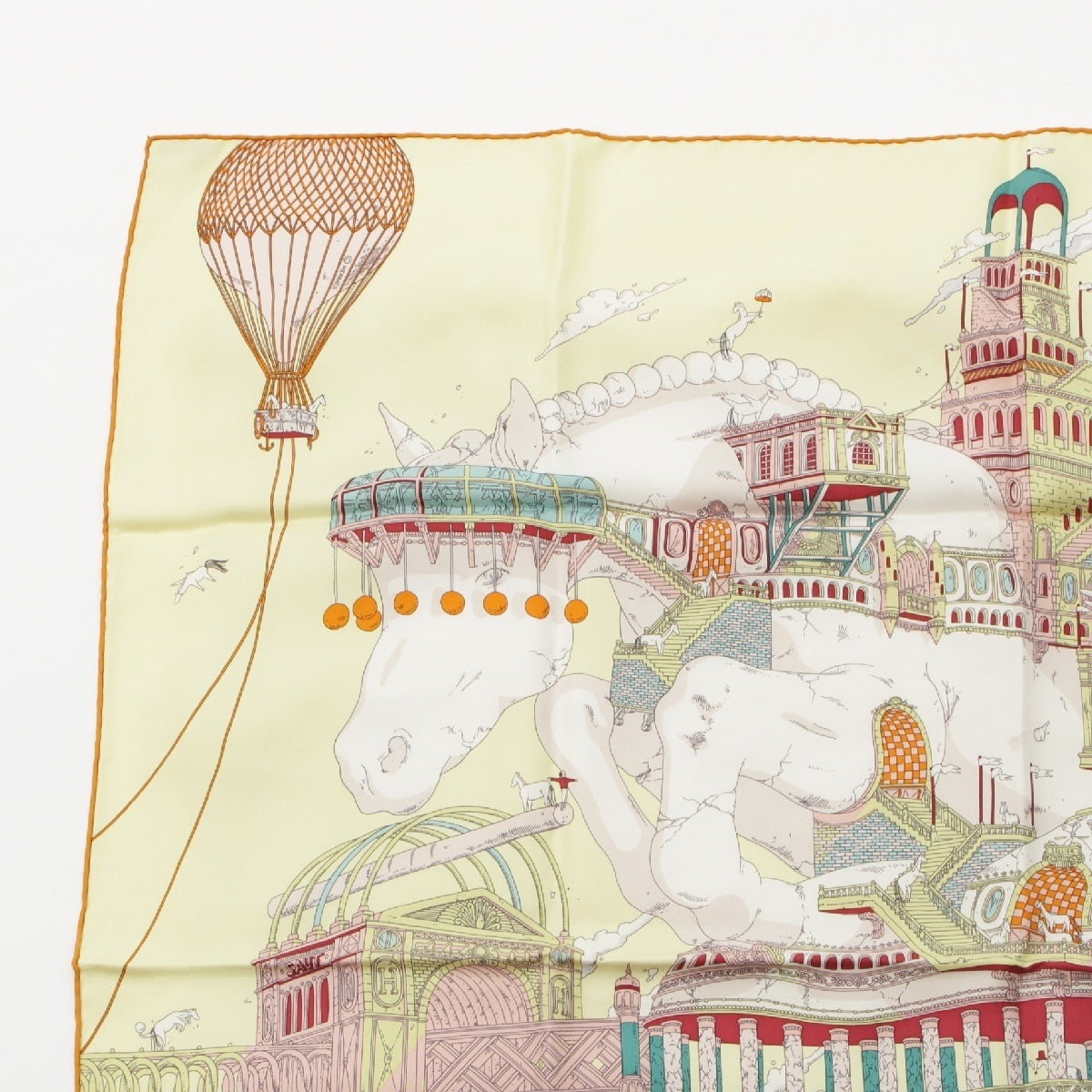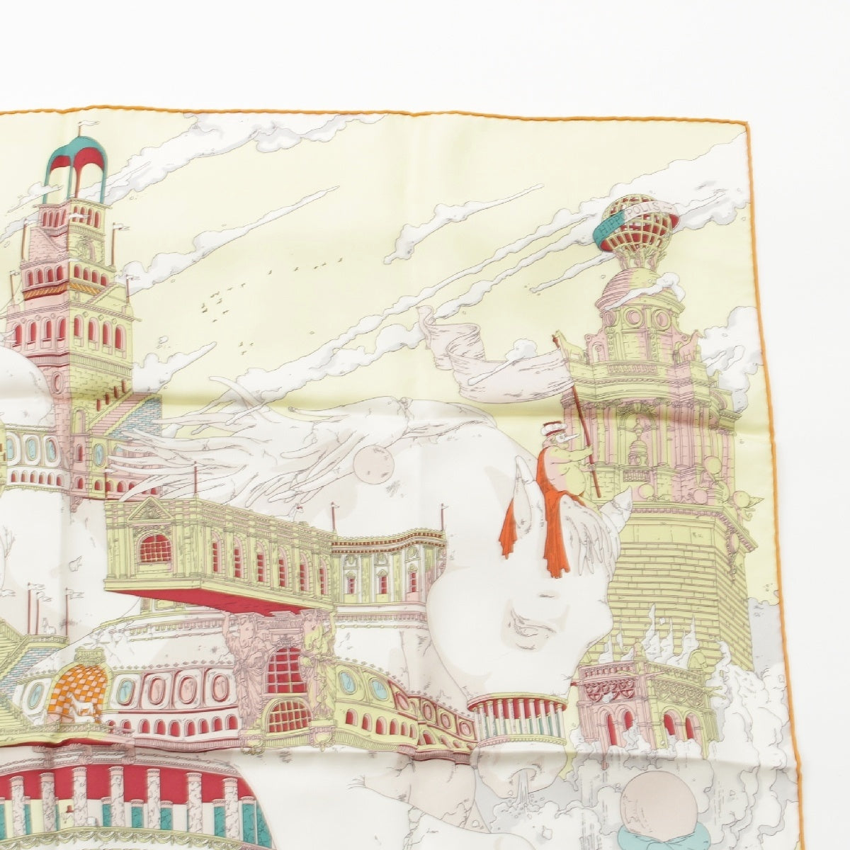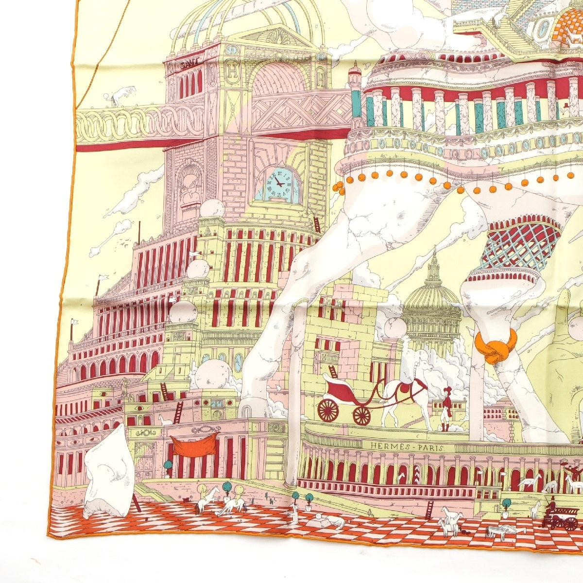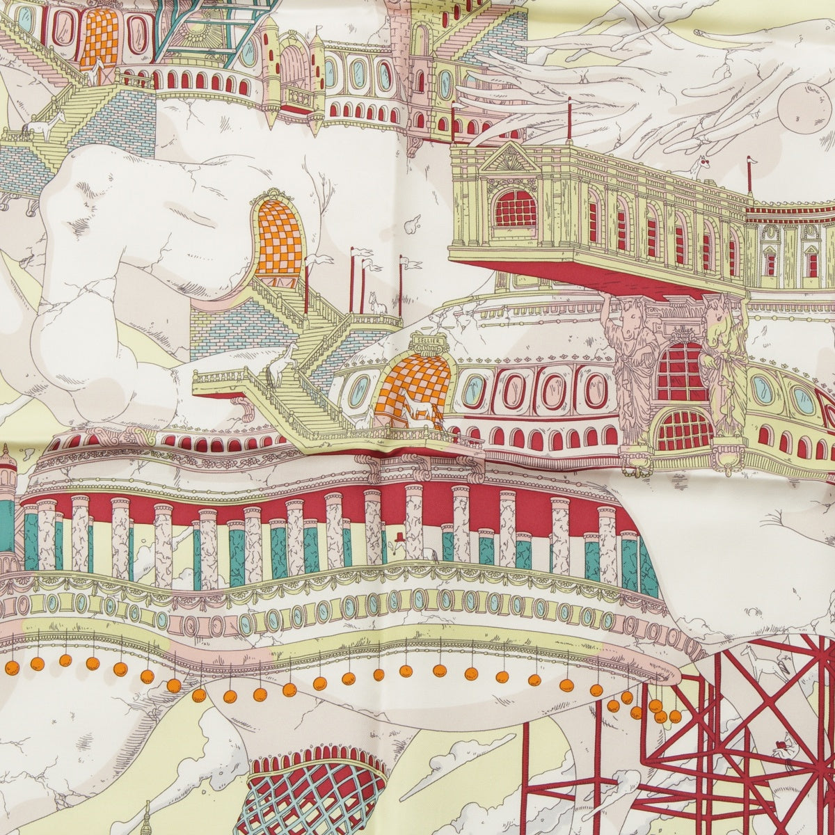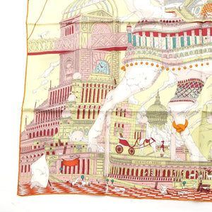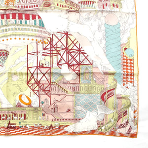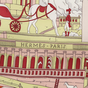 HERMES Calle 90 silk HIPPOPOLIS Ugo Gattuni Horse Building scarf Multicolor Pink Yellow