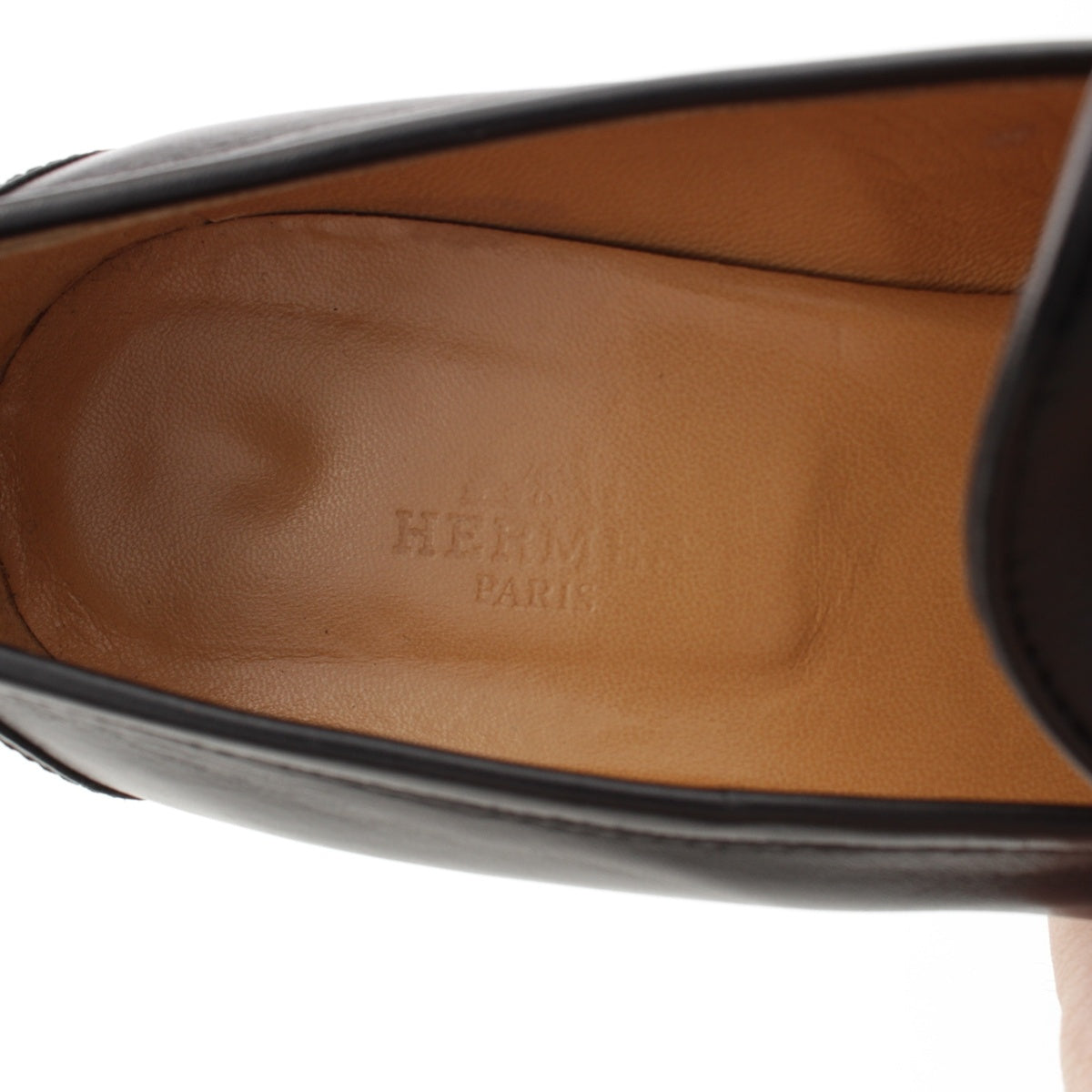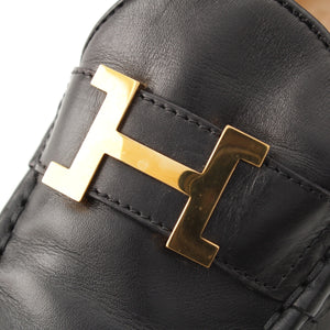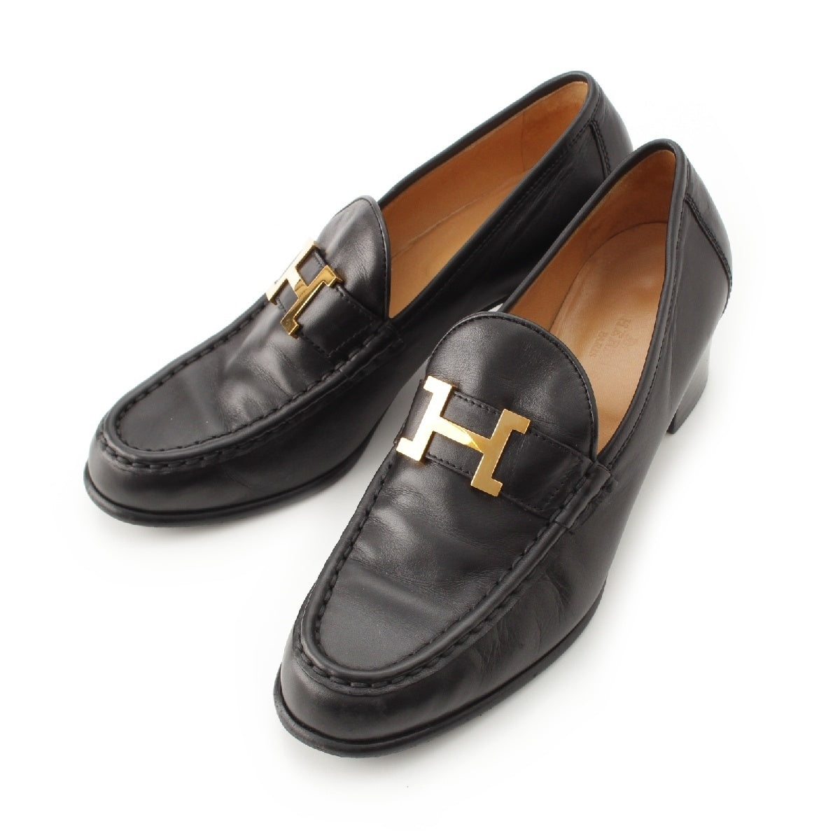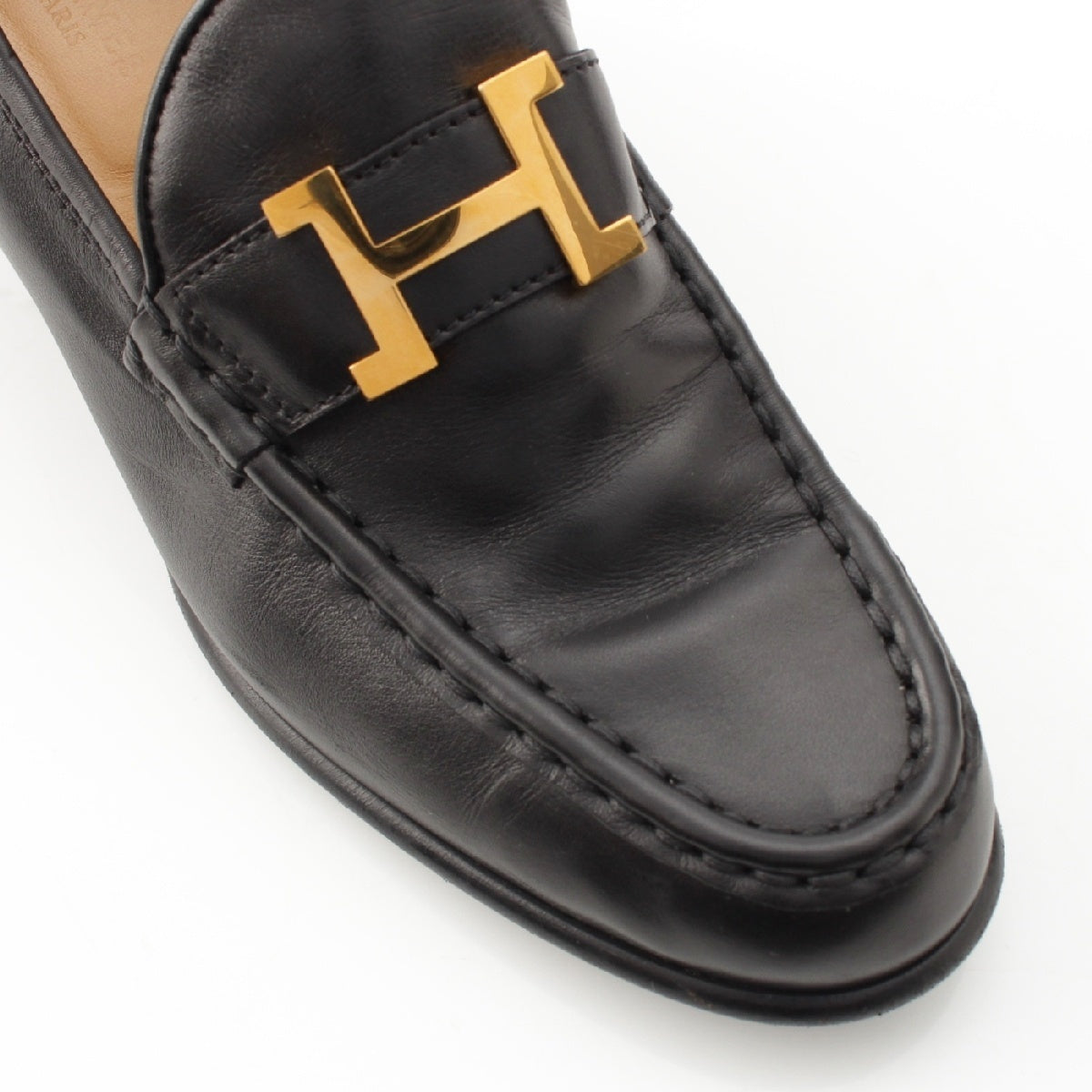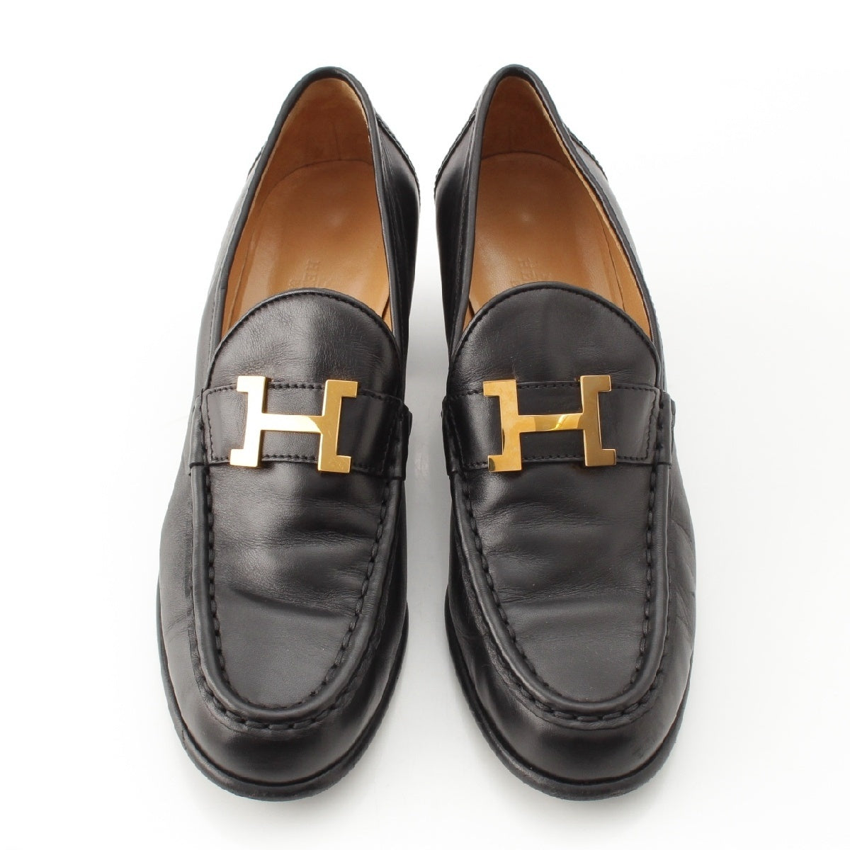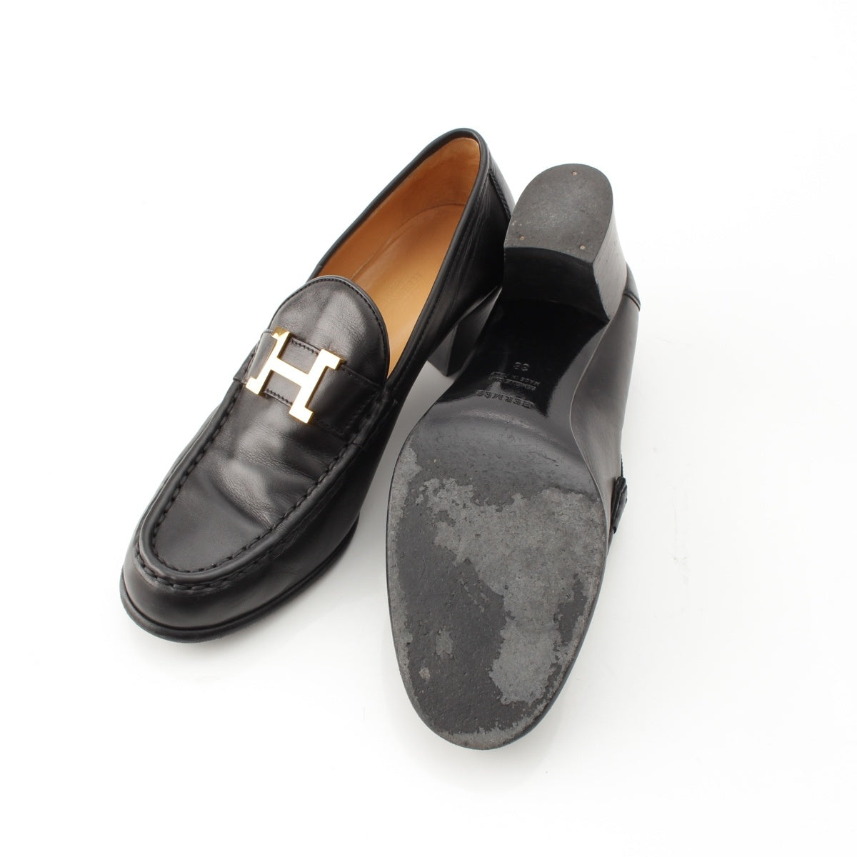 HERMES Constance leather loafers H motif heels leather shoes pumps black 38