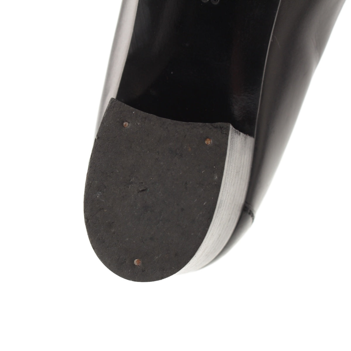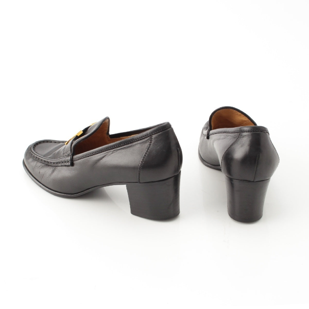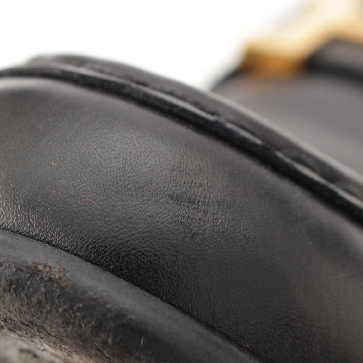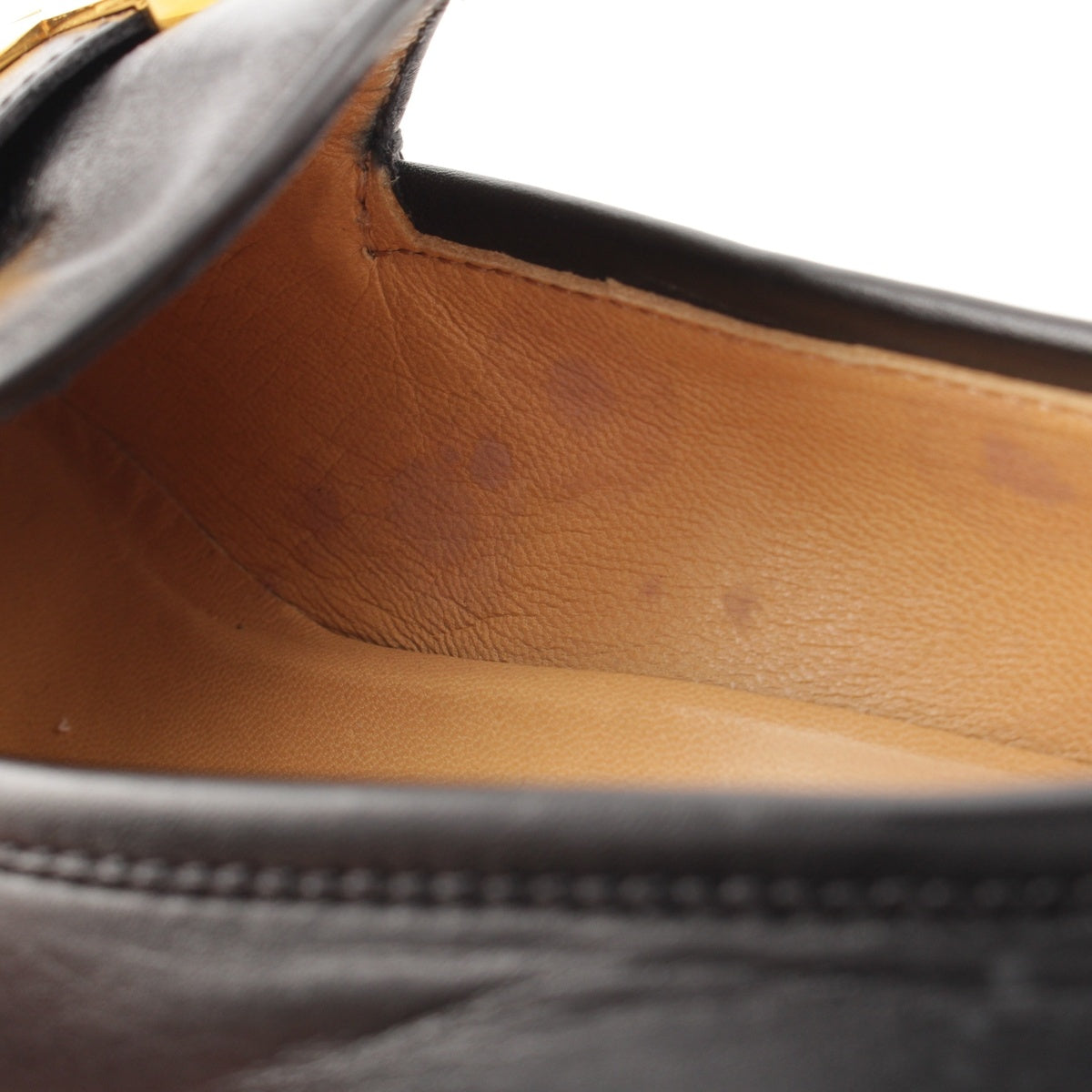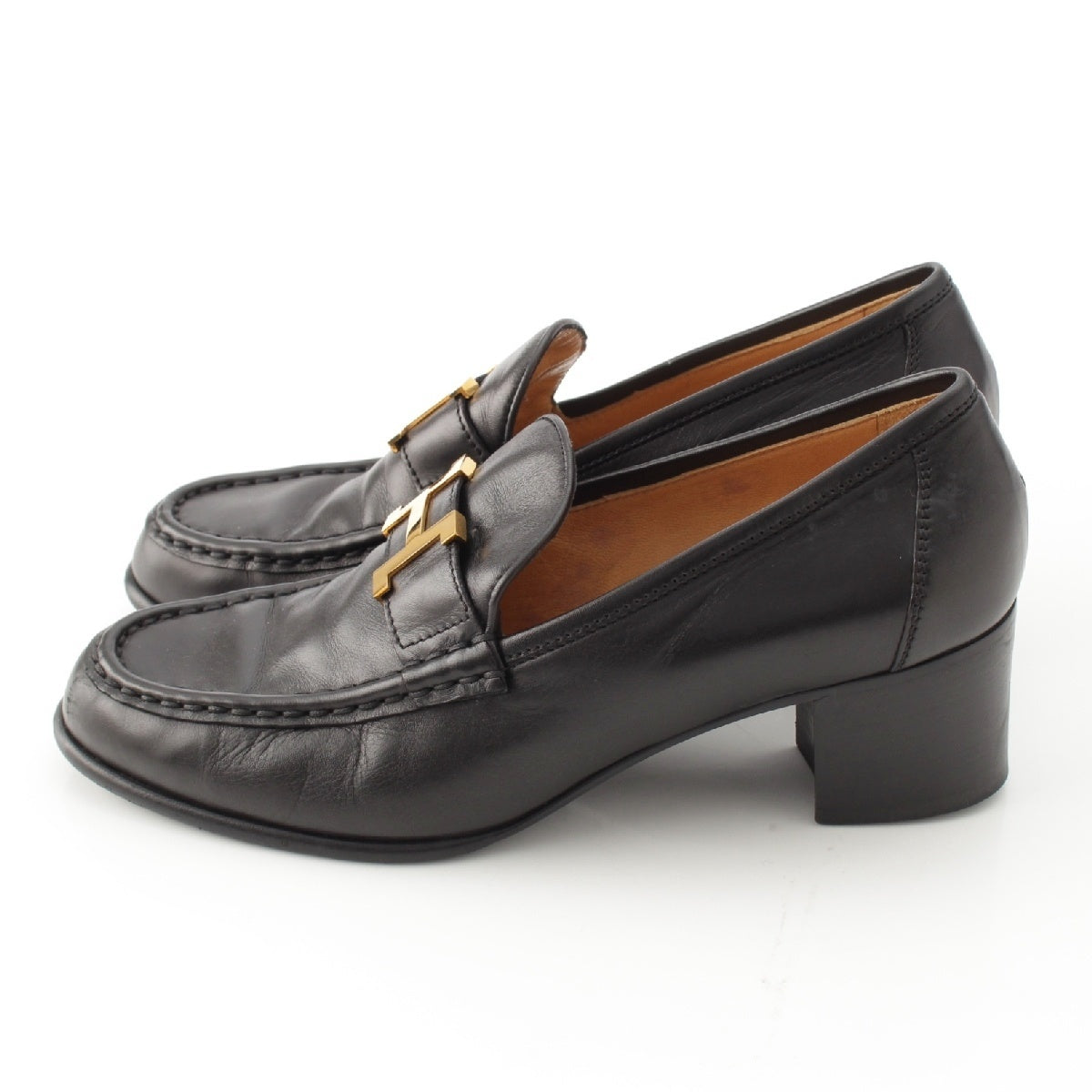 HERMES Constance leather loafers H motif heels leather shoes pumps black 38