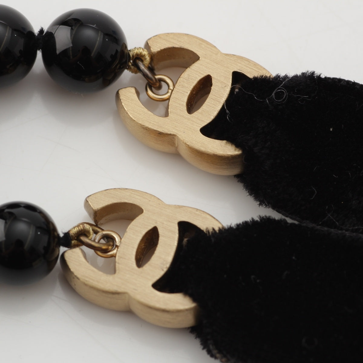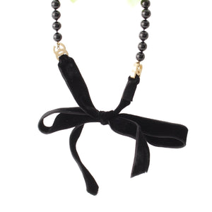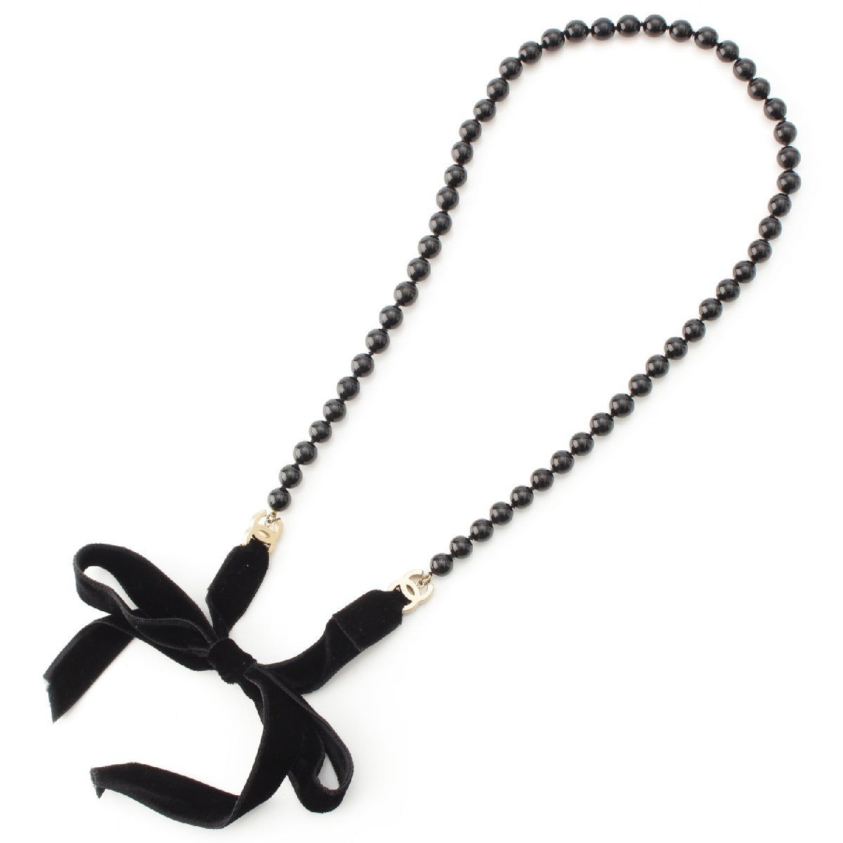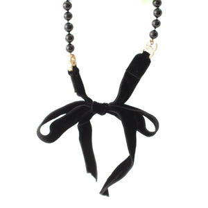 CHANEL Velor Ribbon Black Stone Necklace COCO Mark accessories 03P black