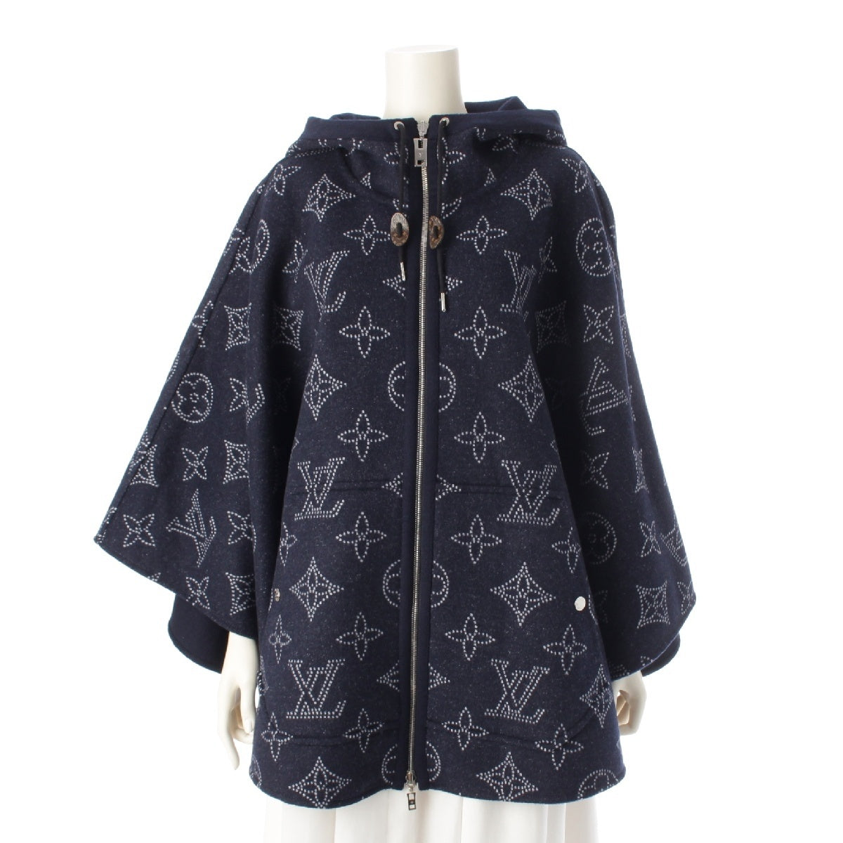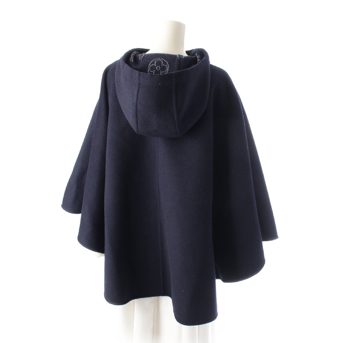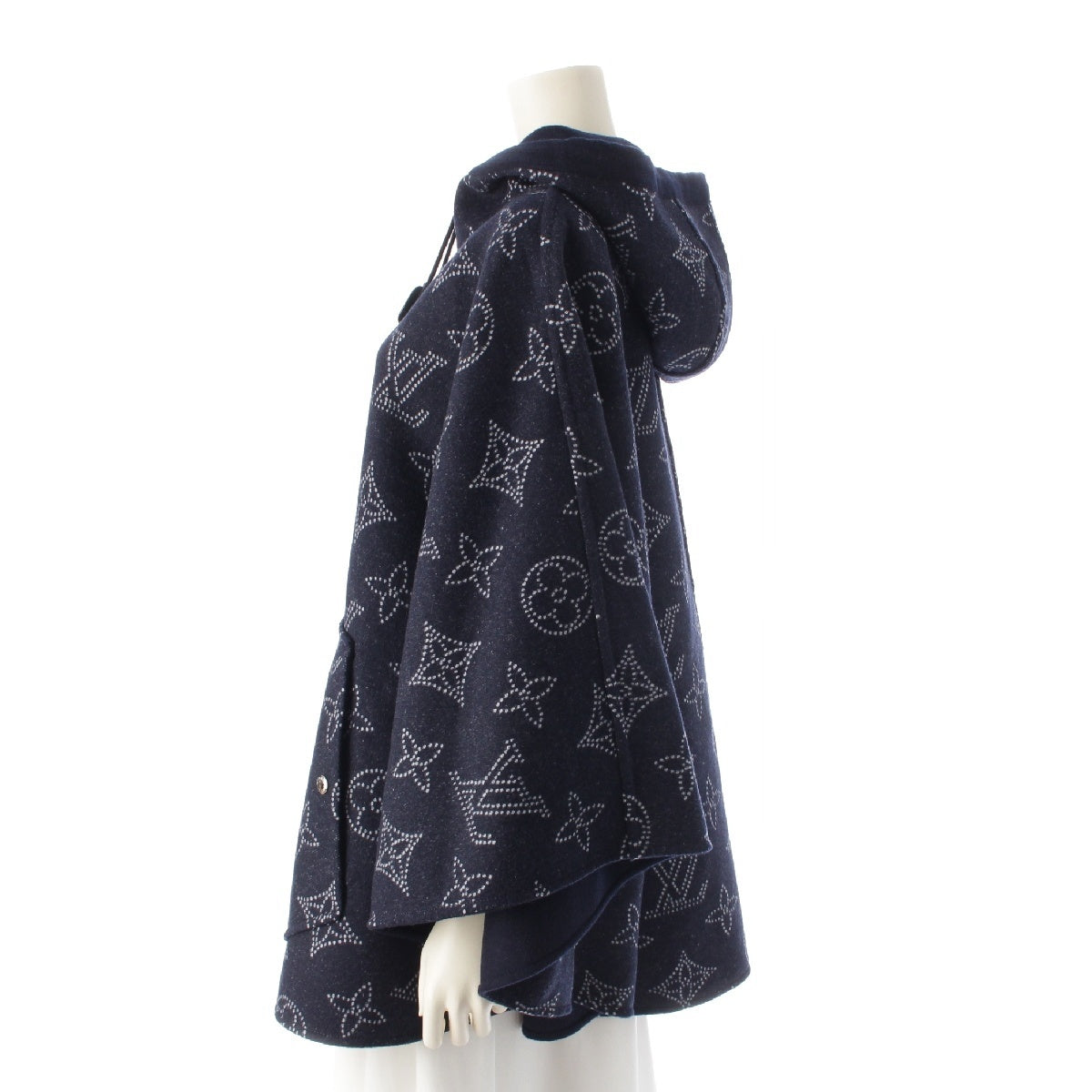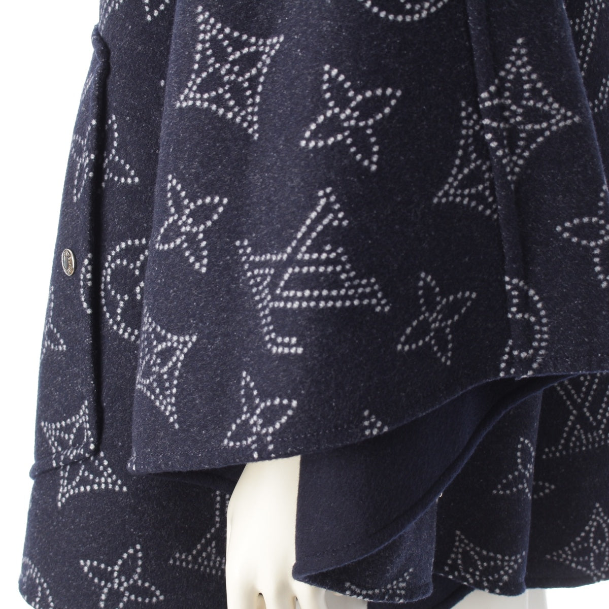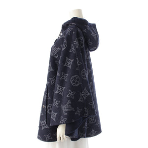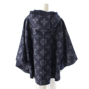 LOUIS VUITTON 22Stainless Steel Mahina wool Monogrammed reversible hooded poncho Cape Coat Jacket Outerwear FMC018 Navy TU