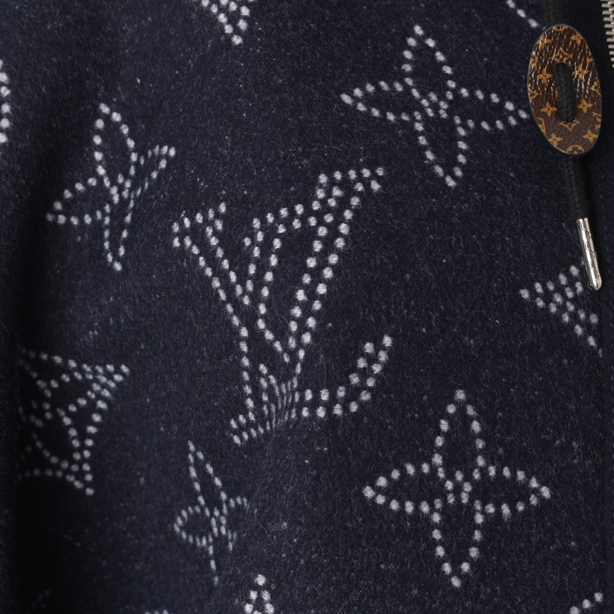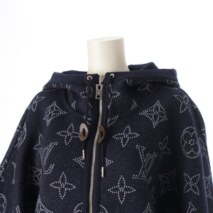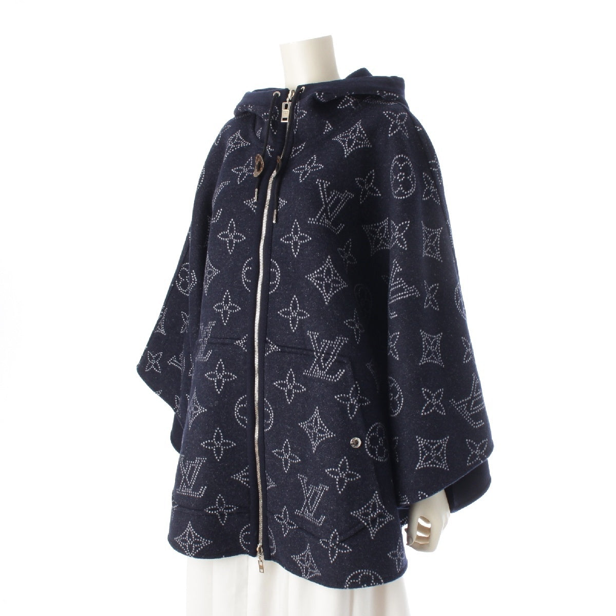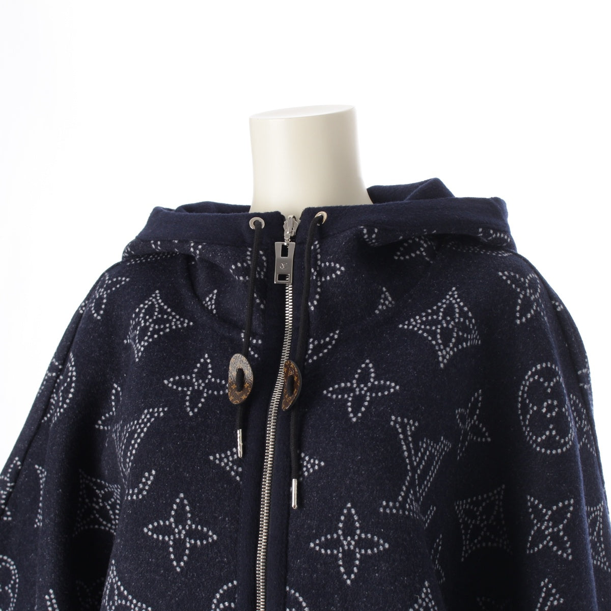 LOUIS VUITTON 22Stainless Steel Mahina wool Monogrammed reversible hooded poncho Cape Coat Jacket Outerwear FMC018 Navy TU