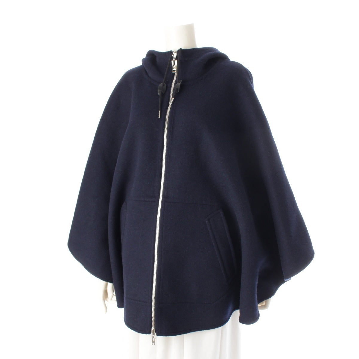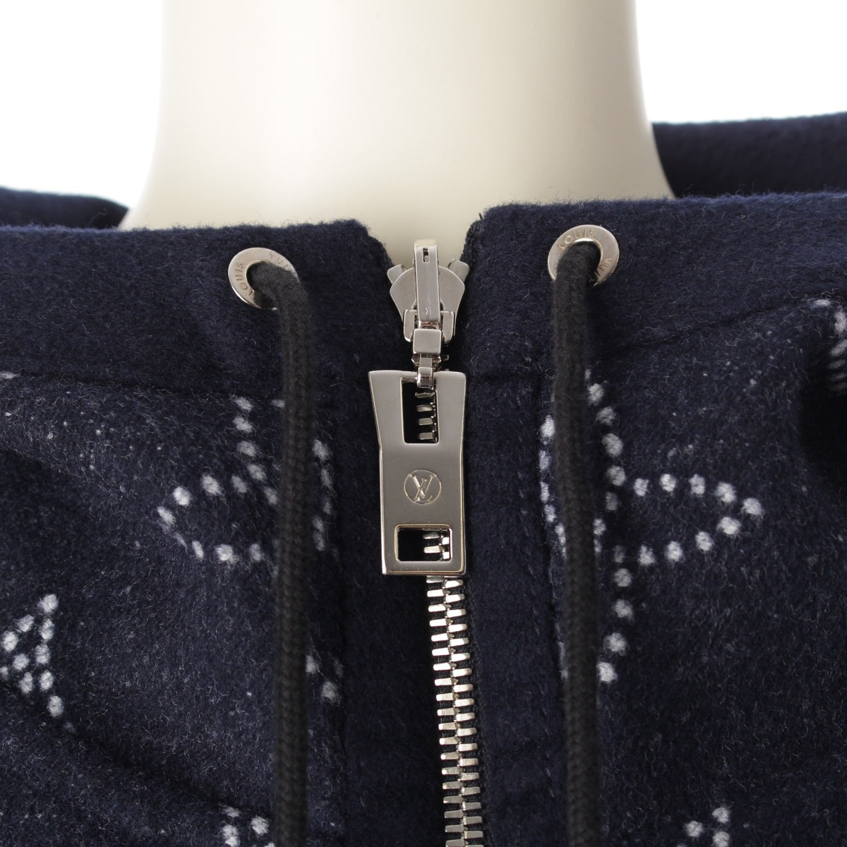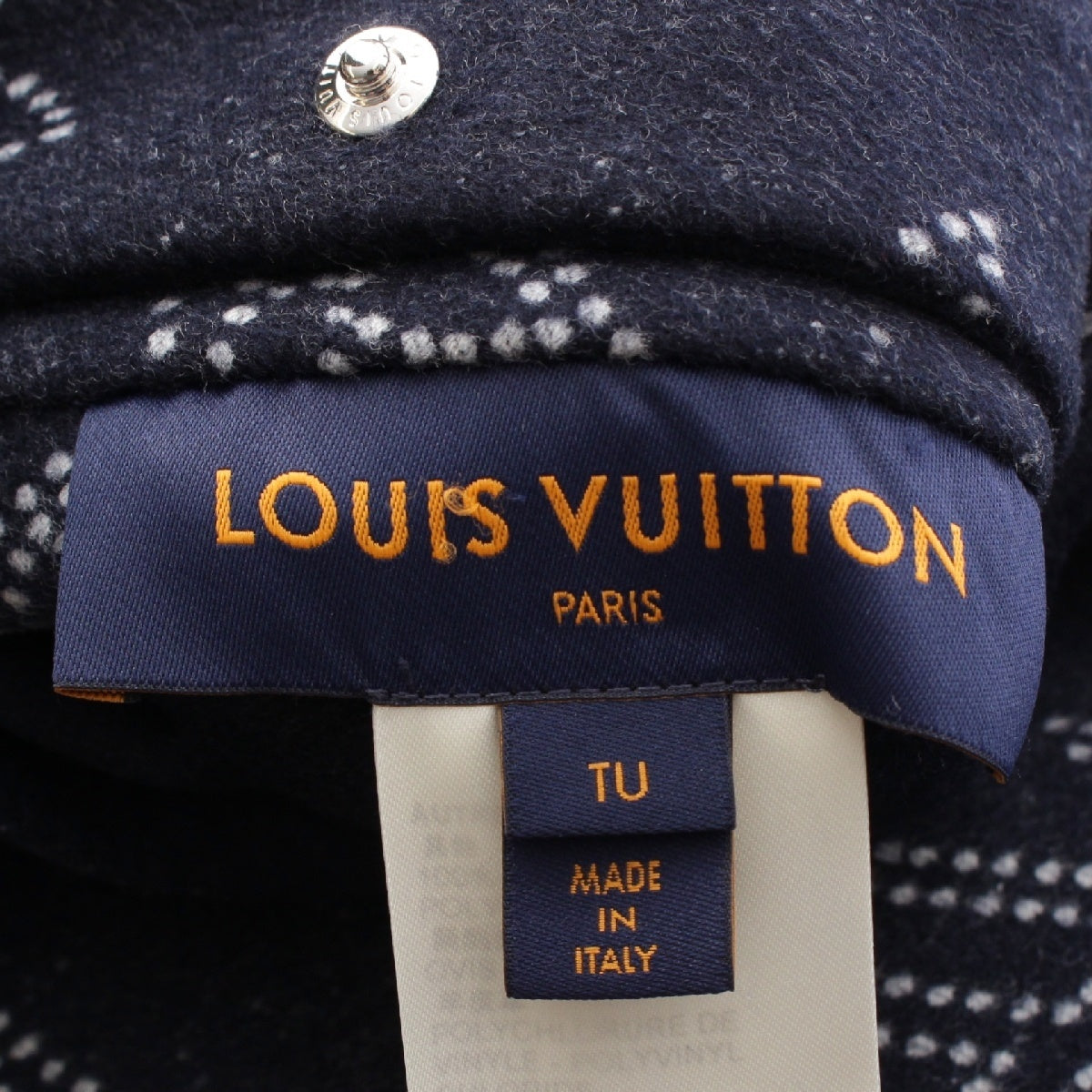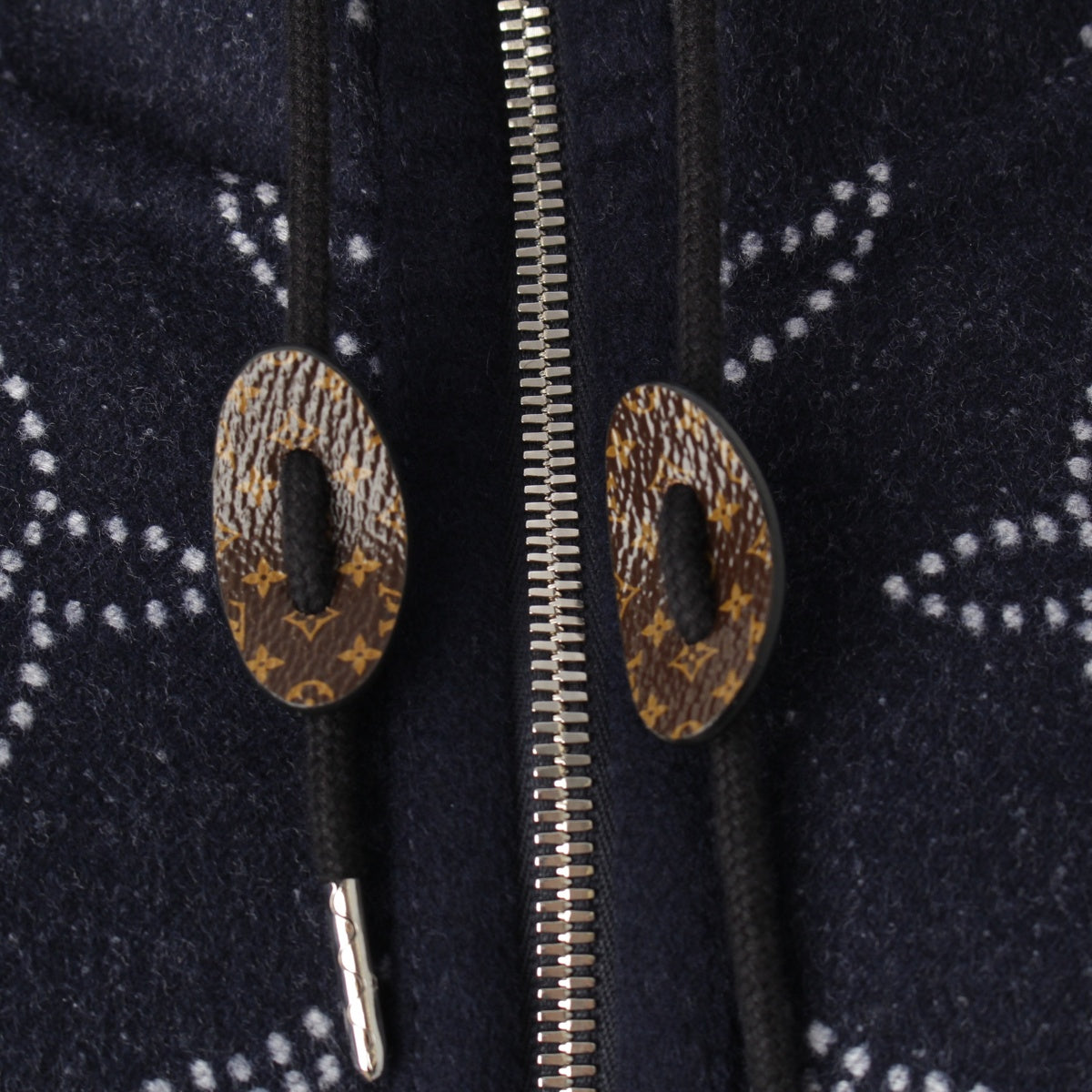 LOUIS VUITTON 22Stainless Steel Mahina wool Monogrammed reversible hooded poncho Cape Coat Jacket Outerwear FMC018 Navy TU