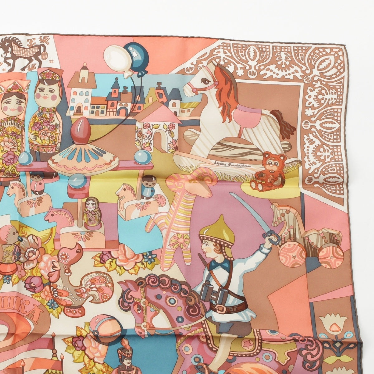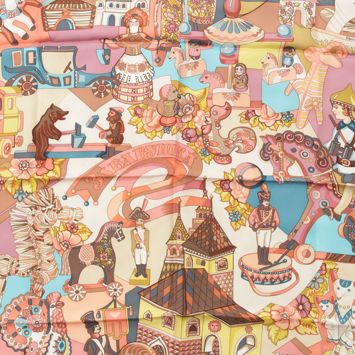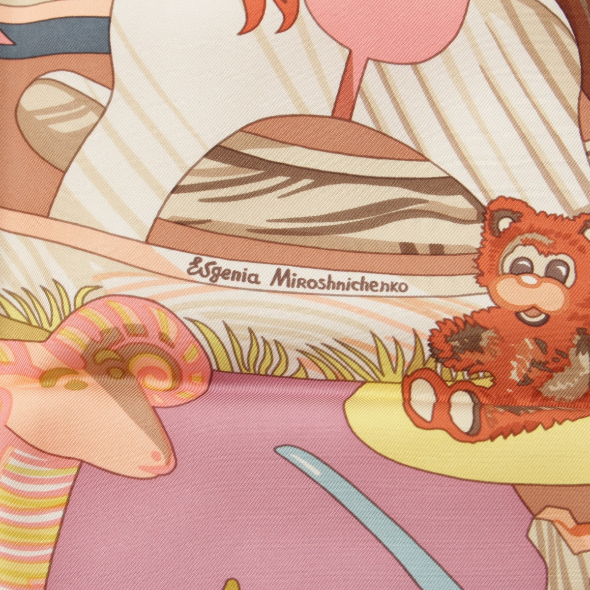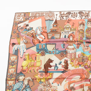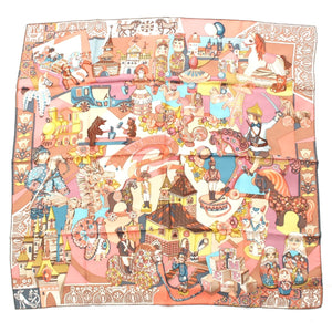 HERMES silk Karre 90 ZABAVUSHKA Russian Doll scarf Pink multicolor