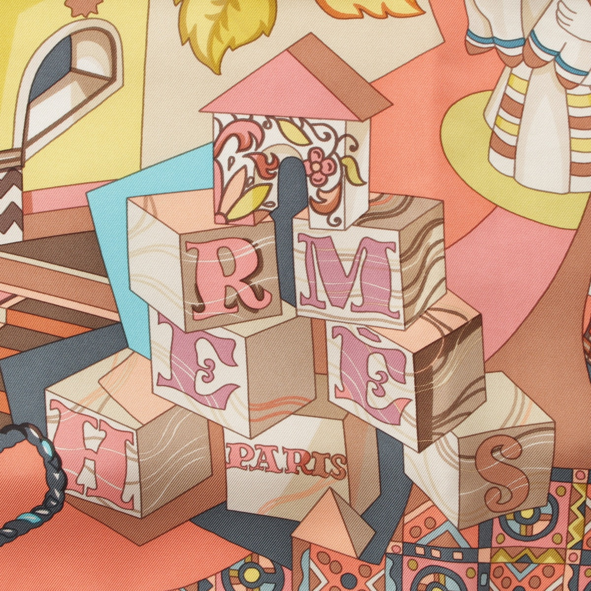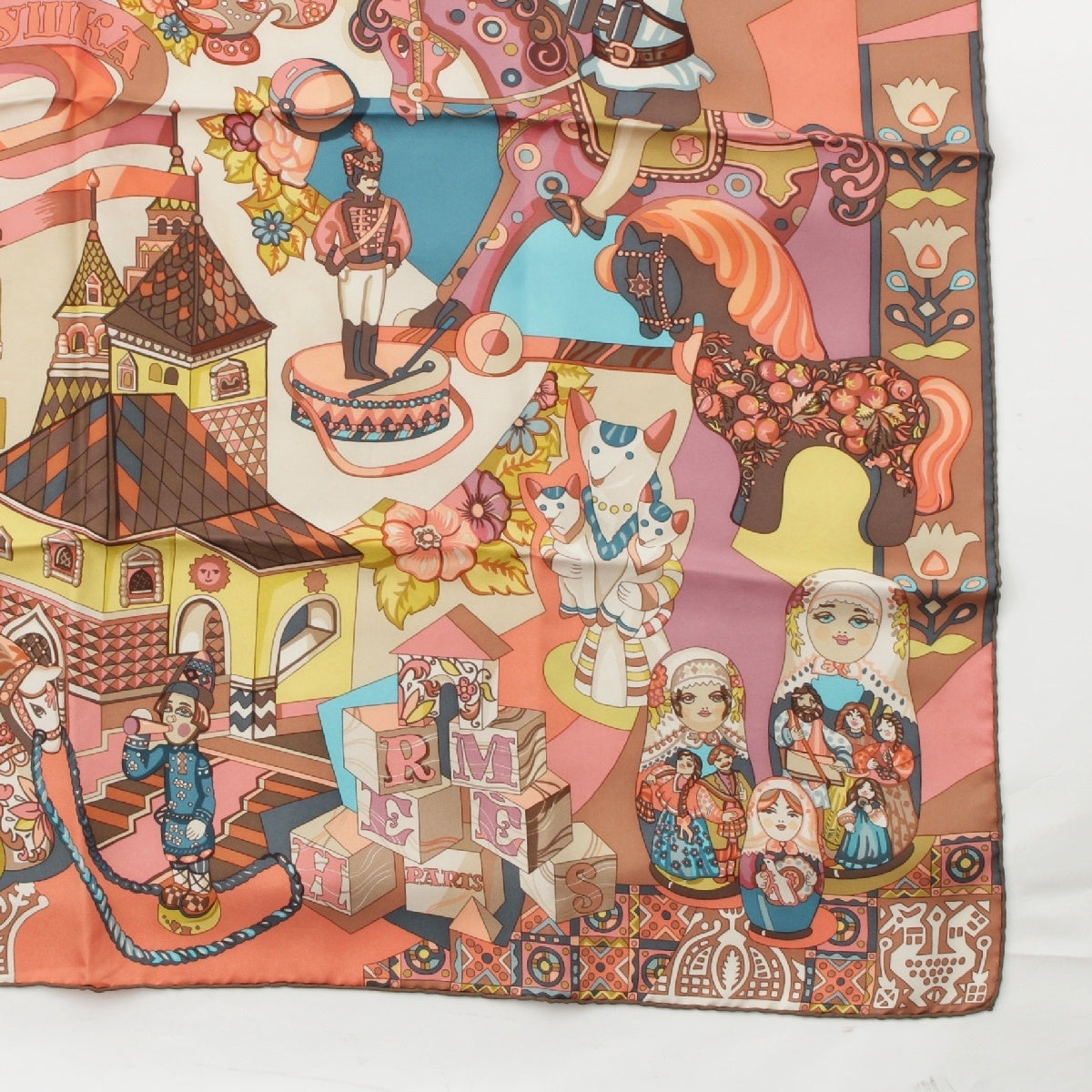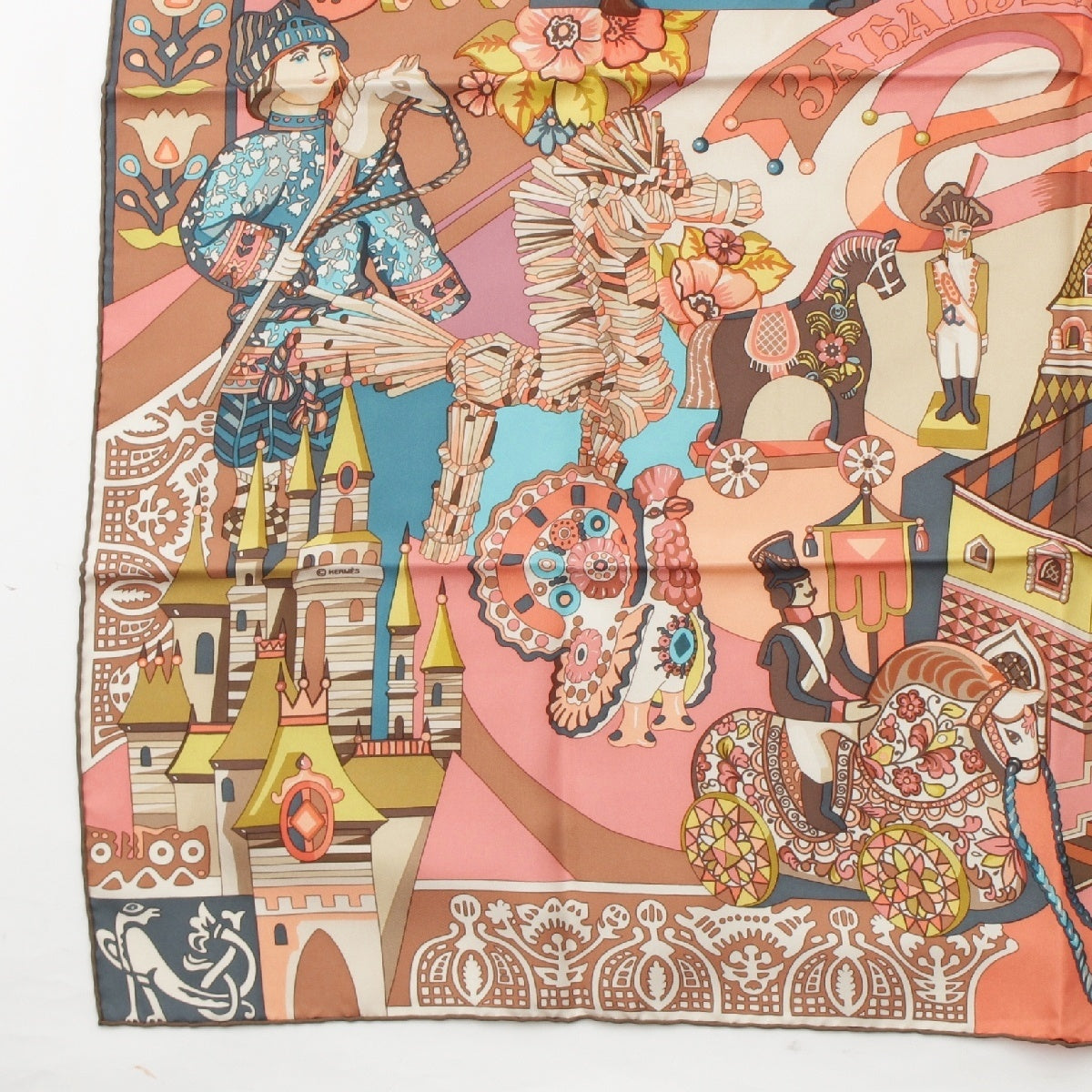 HERMES silk Karre 90 ZABAVUSHKA Russian Doll scarf Pink multicolor