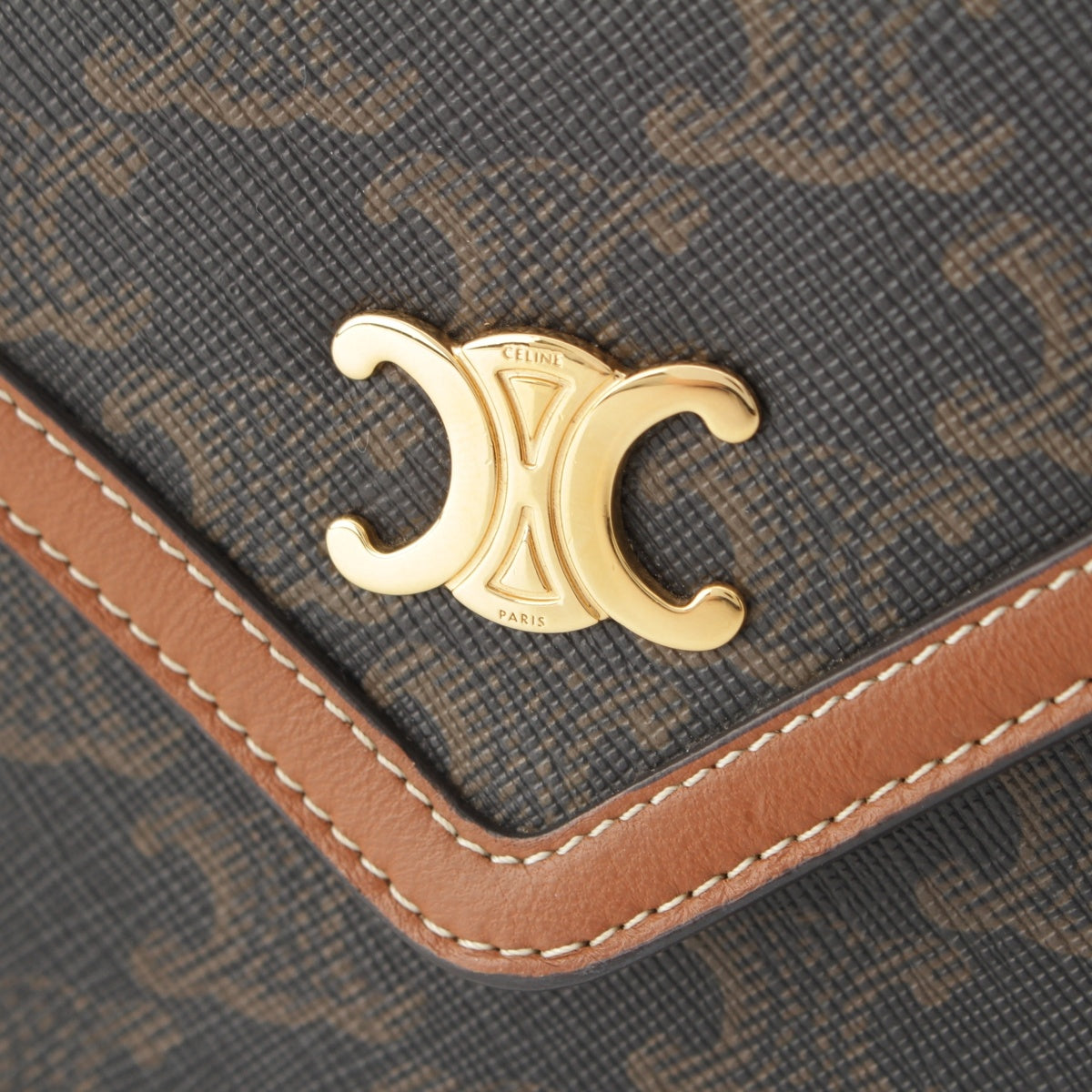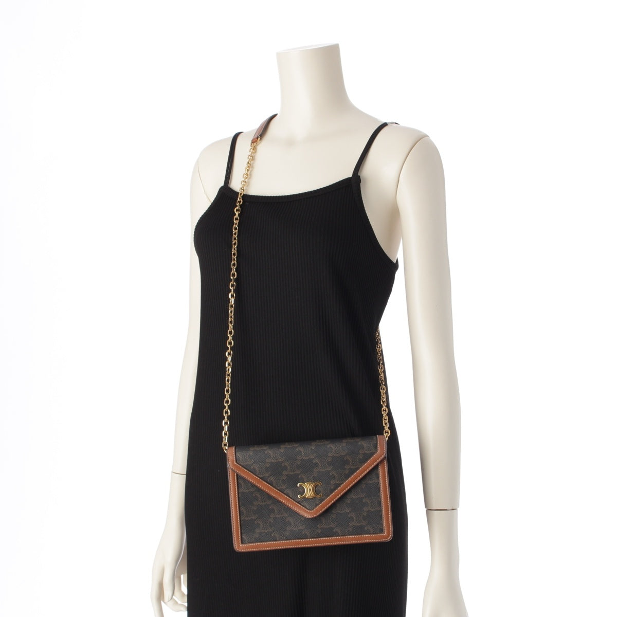 CELINE Triomphe canvas flap chain wallet Shoulder Bag 10I822DS9.04LU Brown